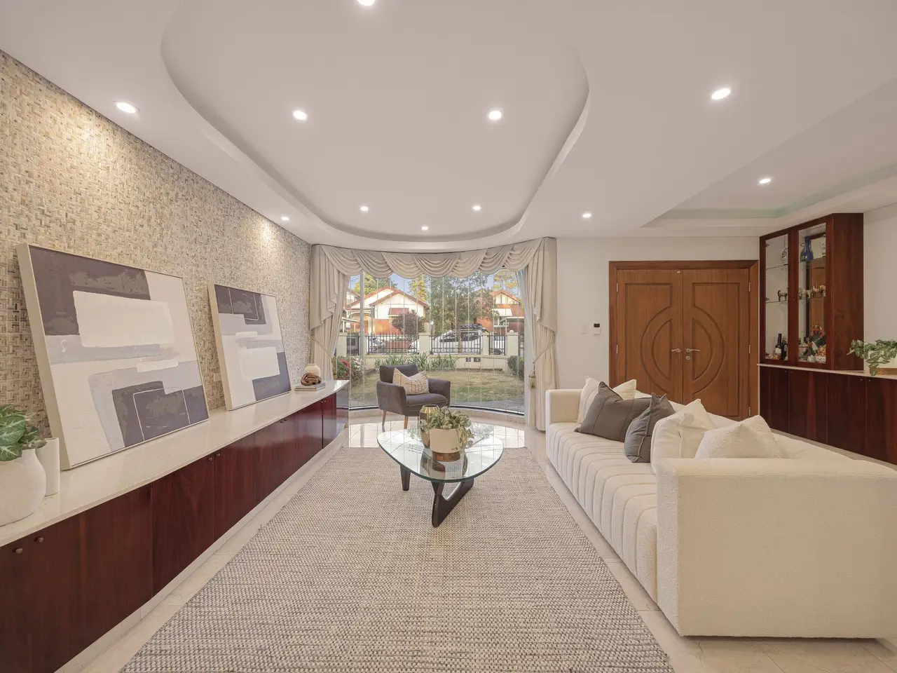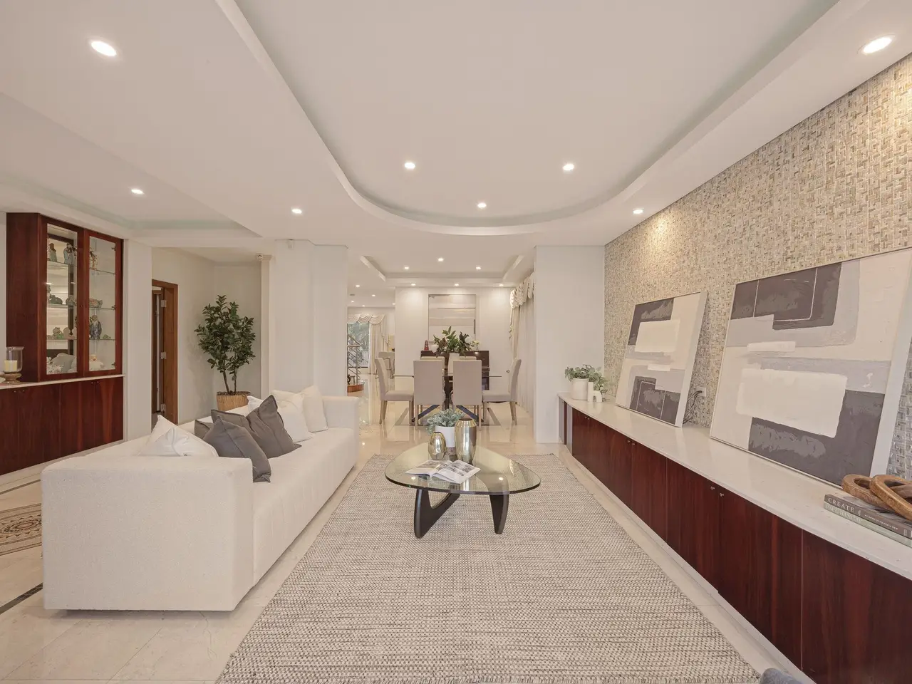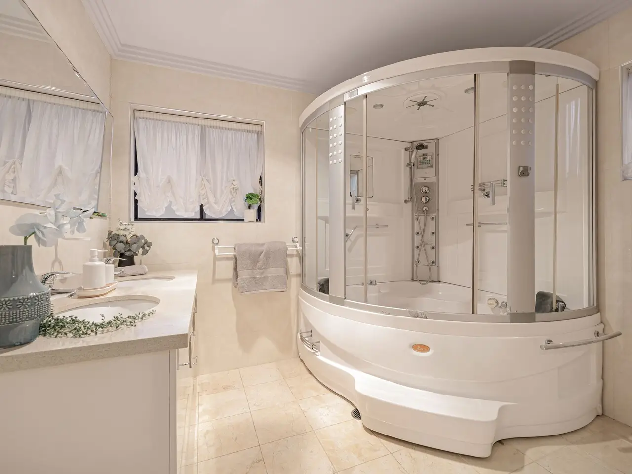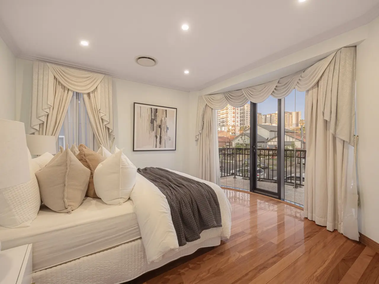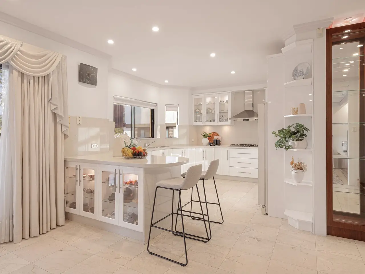 Set on one of Burwood's most prestigious streets, this full brick residence combines grand proportions with contemporary refinement to create a family home of high calibre. Walls of glass capture streams of natural light, while detailed ceilings and polished timber floors add timeless elegance. Designed with functionality and comfort in mind, its multiple living zones, outdoor entertaining spaces and five-bedroom layout cater to large/growing families. Framed by manicured gardens and backing directly onto Sanders Reserve, the home ensures both lifestyle and convenience just 800m from Burwood Station. - Expansive living/dining area seamlessly integrates with an entertainers' terrace - Sun-drenched child-friendly yard offers a relaxed setting of privacy and greenery - Modern family kitchen with steel gas appliances, sleek cabinetry, in-built storage - Five bedrooms, three feature balconies, master retreat with walk-in and ensuite - Bathroom with floor-to-ceiling tiles, a double basin, spa bath and body shower jets - Additional lounge and office space provide flexibility for working/a recreation room - Ducted air-conditioning, downlights, polished timber floorboards and solar panels - Interiors reveal detailed ceilings and walls of glass, balancing style and elegance - Single lock-up garage with internal access plus driveway parking, internal laundry - Exceptional address, walk to Burwood Station, Plaza, parklands and elite schools