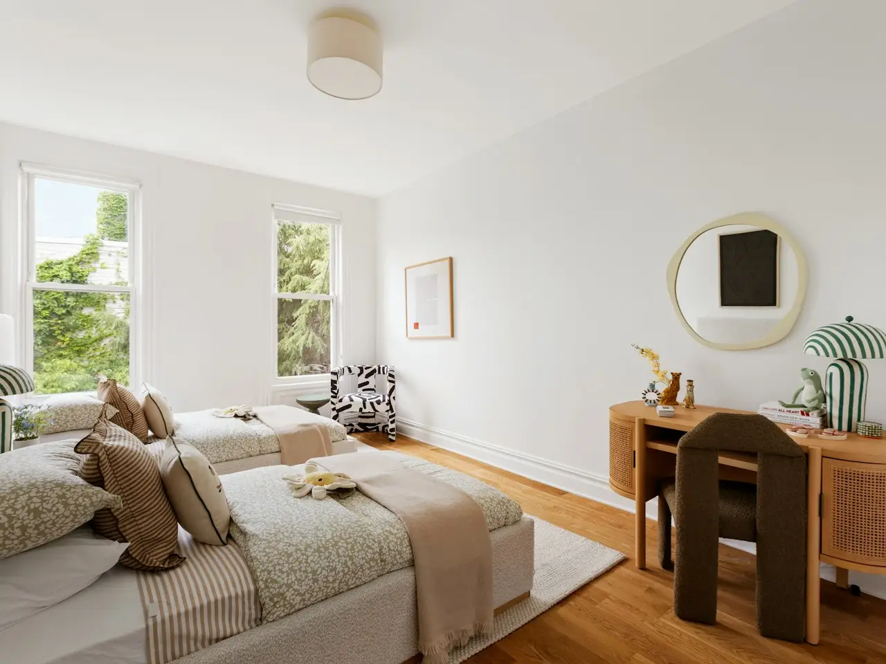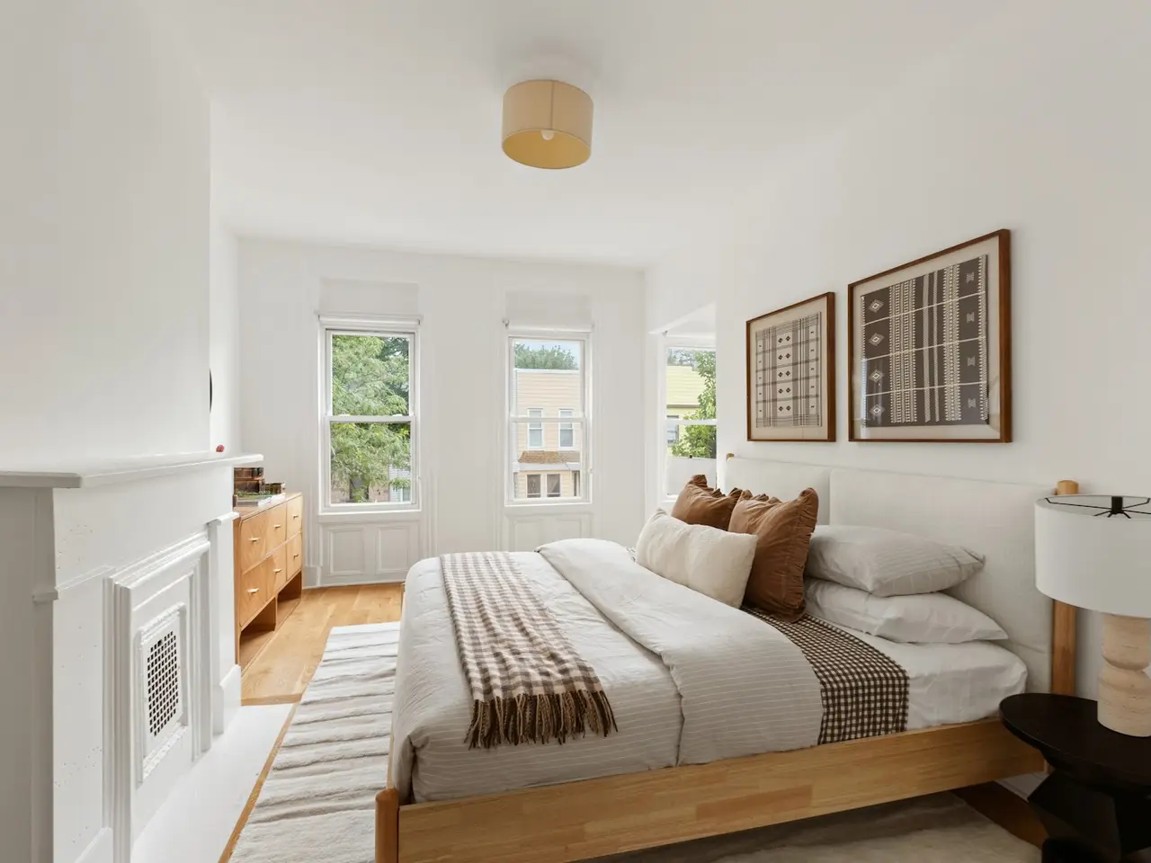 This beautifully restored Bushwick townhouse blends timeless character with contemporary upgrades, offering a rare opportunity to own a spacious, move-in-ready home with the potential for seven bedrooms, multiple en-suites, a stunning private backyard, and your own private rooftop oasis-just moments from key transportation, restaurants, and nightlife. The parlor level welcomes you with soaring ceilings, elegant original details, and an open-concept layout that connects the living, dining, and kitchen spaces. The chef's kitchen is thoughtfully designed with sleek black cabinetry, Caesarstone quartz countertops, a statement tile backsplash, and a full suite of premium appliances-including a Bertazzoni gas range and hood, Jenn-Air dishwasher, Fisher & Paykel refrigerator, wine cooler, and in-unit washer/dryer. Direct access to the fully renovated backyard makes entertaining a breeze. Just off the dining area sits a private bedroom featuring double closets, a decorative fireplace mantel, and oversized windows that flood the space with natural light-ideal for a guest suite or home office. Upstairs, preserved black stair railings guide you to two full levels of well-proportioned bedrooms. On the second floor, you'll find two sun-filled bedrooms and an additional third bedroom or home office, each with ample closet space and white oak flooring, along with two thoughtfully renovated en-suite baths. The third floor mirrors this layout, with three additional bedrooms or two and a home office / nursery, two more en-suites, and a spacious primary suite boasting a wall of windows and a generous walk-in closet. Perfectly situated with easy access to the J, Z, and L lines via multiple nearby subway stops and nearby Bushwick retail hotspots with easy walking access to Bed Stuy, this home offers the space, flexibility, and quality finishes rarely found in one property.