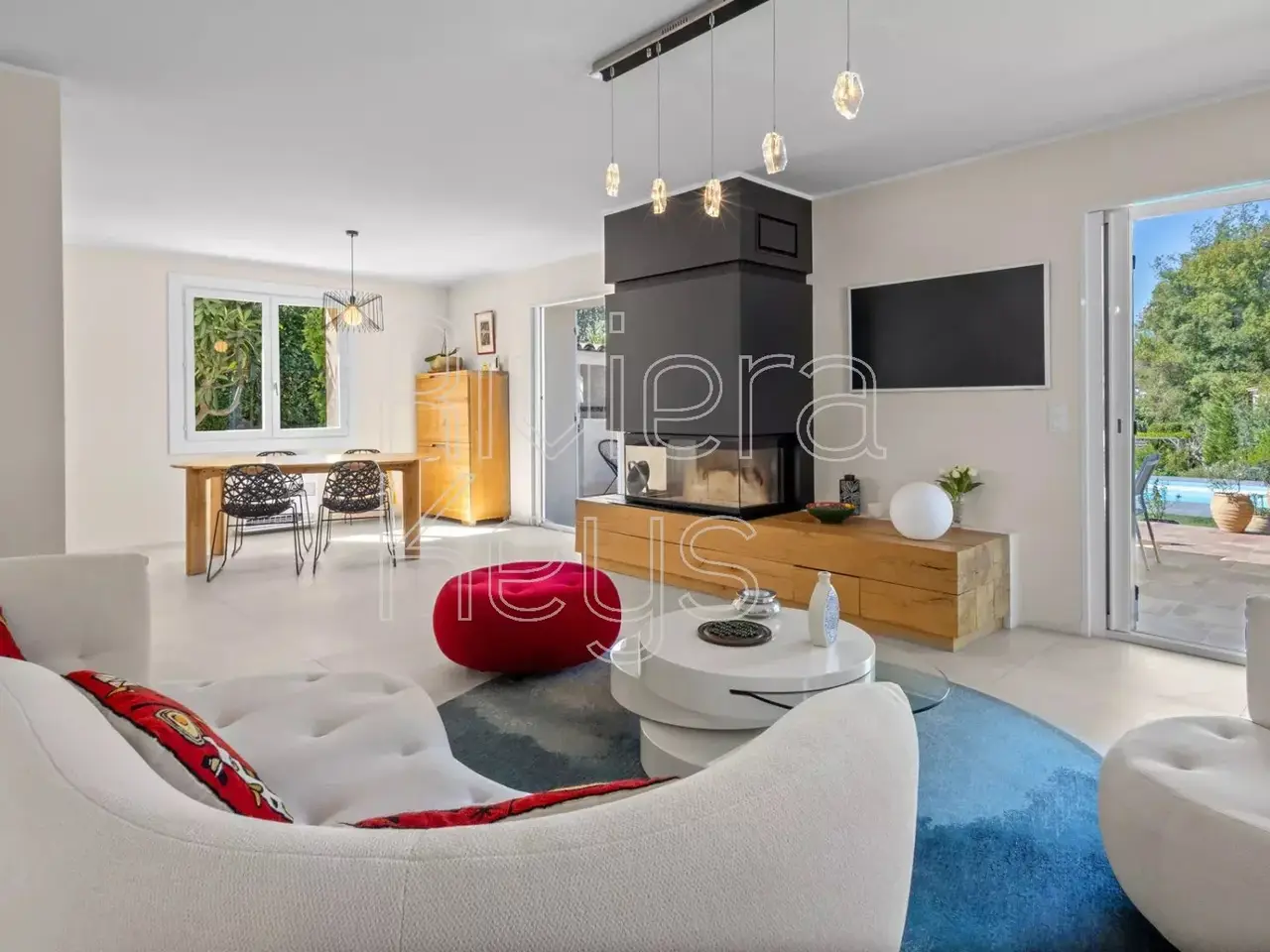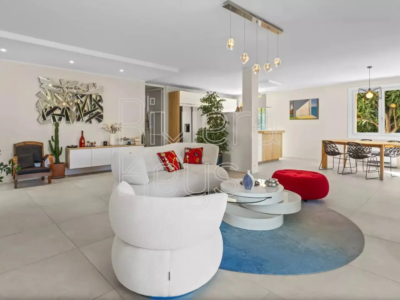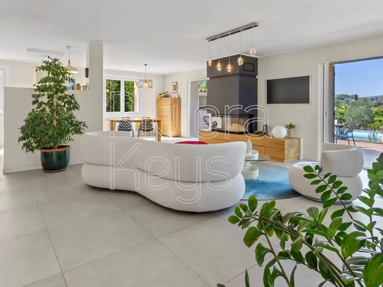 In a sought-after residential area, only 10 minutes from the Mediterranean, this 229 m² villa gracefully combines Provençal charm with contemporary features. Fully renovated with refined taste and high-end finishes, it impresses with its generous spaces and seamless flow between indoors and outdoors, enhanced by large bay windows opening onto a vast terrace. Its beautifully landscaped 2,000 m² garden, fully enclosed, peaceful, and completely private, offers an idyllic setting. A saltwater swimming pool (12 x 5 m) with shower and facilities, a summer kitchen, and a pétanque court invite both relaxation and conviviality. The ground floor features a spacious living room with insert fireplace and an elegant open-plan kitchen with central island. The night area offers 5 bedrooms, including two master suites on the ground floor, as well as three large bedrooms upstairs, accompanied by a bathroom with shower and toilet. An independent two-room apartment with terrace completes the property—ideal for hosting guests, extended family, or generating rental income. A double garage and ample outdoor parking spaces add further convenience to this exceptional villa.