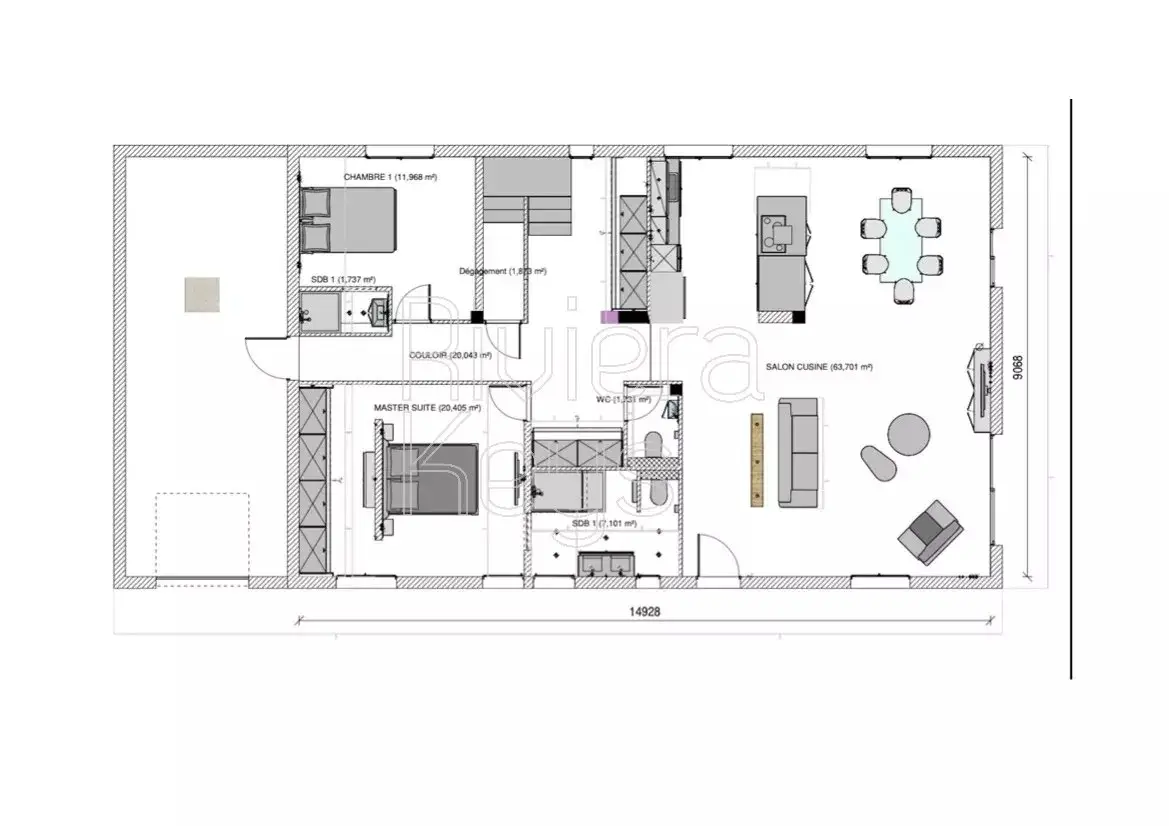 Open-plan kitchen with central island