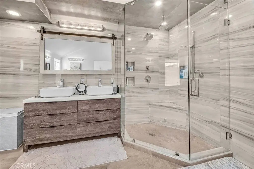 Welcome to this extraordinary lakefront estate tucked away on a quiet cul-de-sac in the coveted Calabasas Lake community. Fully reimagined and thoughtfully curated, this modern residence combines architectural sophistication with natural beauty, offering sweeping views of the lake and adjacent park as the perfect backdrop. Designed for refined living and entertaining, the home features an open floor plan ideal for hosting gatherings, enhanced by premium upgrades including new electrical and plumbing systems, Control4 smart home technology, and an elevator serving all three levels. The Bauformat German gourmet kitchen impresses with a porcelain-topped island, custom European cabinetry, two Miele dishwashers, dual Wolf ovens with induction range, microwave, warming drawer, and full-size Sub-Zero refrigerator and freezer. An elegant dining area with wet bar and dual wine refrigerators flows into the living and family rooms, where modern fireplaces, custom cabinetry, and expansive glass doors frame breathtaking views. The primary suite offers vaulted ceilings, skylights, a spa bath with steam shower, whirlpool tub, dual vanities, walk-in closet, and a terrace overlooking the lake and park. The lower level includes a media room, two bedrooms, full bath, laundry, and elevator access. A detached ADU with bedroom, bath, and separate entrance is perfect for guests, office, or live-in staff. Outdoors, a private walled yard surrounds the heated pool with waterfall, firepit lounge, and full kitchen with sink, warming oven, and refrigerator. Premium upgrades include a paid solar system, Lutron lighting with alarm integration, keyless entry, advanced camera security, modern glass staircases, wide illuminated steps, new wood flooring, Venetian plaster powder room, custom Stereo cabinetry, three-zone HVAC, black glass garage doors, and pivot entry. Multiple balconies and terraces embrace the lakefront lifestyle. Rarely does a home of this caliber, combining modern design, prime location, and flawless execution, come to market. This residence is more than a home, it is a private retreat offering elegance, innovation, and serene luxury in the heart of Calabasas.