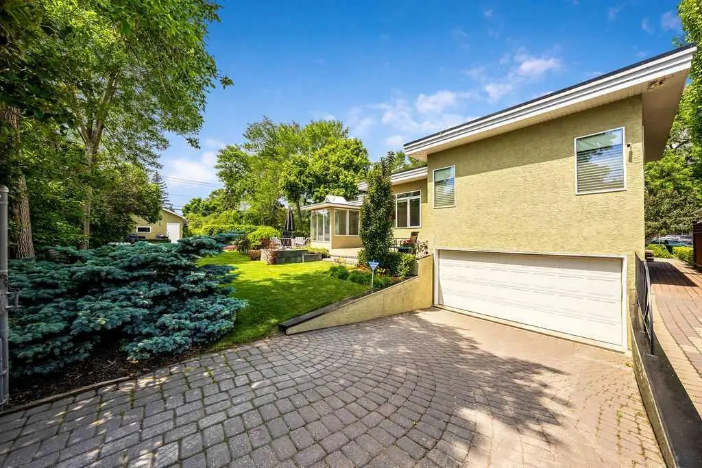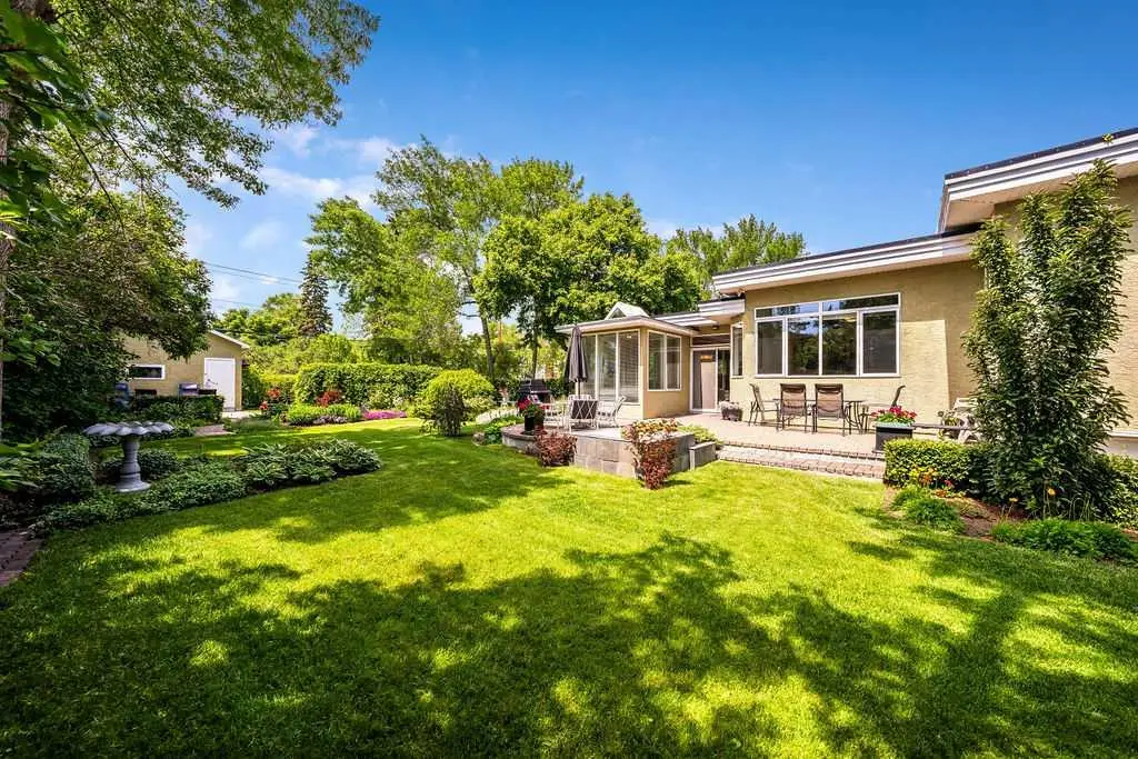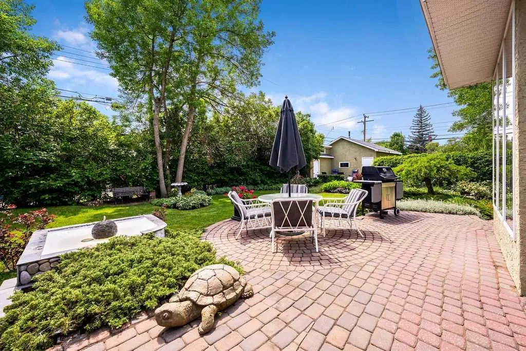 Welcome to a rare and exciting opportunity in the heart of Renfrew, one of Calgary's most sought-after inner-city communities. Situated on an expansive 11,151 square foot lot (.26 acres), this exceptional property offers dual access from both 15 Avenue and 4 Street NE and sits adjacent to Beaumont Circus Park—a unique circular green space currently undergoing city-led revitalization and beautification. Whether you're an investor seeking long-term land value or a homeowner looking to establish roots on an impressive parcel, this property delivers both present-day comfort and future potential. Originally built in 1946, the bungalow was thoughtfully renovated and expanded approximately 25 years ago, blending character with contemporary function. The home is set back on the lot, creating an urban oasis surrounded by mature landscaping and multiple outdoor zones designed for relaxation and connection to nature. The expansive, park-like yard is a true highlight—a tranquil sanctuary featuring beautifully designed paving stone patios and walkways, vibrant flower beds, sculpted shrubs, and a charming water fountain. Whether you're entertaining guests, enjoying a quiet morning coffee, or tending to the garden, this thoughtfully curated outdoor space provides year-round enjoyment and privacy. Step inside and you’ll find 9-foot ceilings throughout the main floor, with an airy 11-foot ceiling in the kitchen. The kitchen is a true showpiece, featuring sleek Denca cabinetry, generous counter space, and expansive windows that frame tranquil views of the park-like backyard. The open-concept living and dining areas offer a welcoming space to gather, with a cozy gas fireplace, custom window seat, and a bright sunroom that seamlessly blends indoor and outdoor living. The primary suite includes a walk-in closet and a spacious four-piece ensuite. Two additional bedrooms and a well-appointed main bathroom complete the upper level, along with a versatile den perfect for a home office or library. Downstairs, the fully developed basement features a large family room, a kitchenette/summer kitchen, a fourth bedroom, second laundry area, and direct access to the attached double garage (17' x 23'). An additional detached garage (20' x 24') with a 40-foot driveway offers ample parking and storage for vehicles, hobbies, or an RV. Additional features include a 60,000 BTU heat pump for air-conditioned comfort and a stormwater capture system, reflecting a commitment to sustainability and eco-conscious living. With its prime location, substantial land size, and blend of comfort, functionality, and future development potential, this Renfrew gem is a truly rare find. Don’t miss the chance to own a significant piece of Calgary’s inner city—whether to live in, hold, or reimagine for the future.