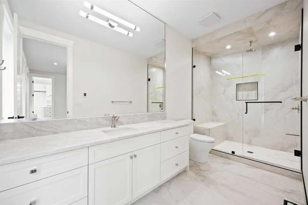 LUXURY LIVING IN VARSITY ESTATES!! With over 6,300 sq.ft. of exquisitely designed living space, this custom estate home blends timeless craftsmanship with refined modern details in one of Calgary’s most prestigious communities. The grand entrance welcomes you with soaring vaulted ceilings, a striking leathered granite fireplace, and stunning designer chandeliers. A front office provides the perfect space to work from home, while elegant arches and custom millwork set a tone of sophistication throughout. The gourmet kitchen is a showpiece, featuring Taj Mahal quartz countertops, JennAir appliances, a wall oven, and a large island ideal for entertaining. The dining room is enhanced with picture frame molding and fluted detailing, while a second main floor living room with a stone fireplace offers a warm retreat. Completing the main level is a stylish powder room, a well-appointed mudroom with built-ins, and garage access with space for an optional third bay, gym, or golf simulator. Upstairs, you’ll find three bedrooms, each with its own ensuite, including one with a hidden paneled door that adds a touch of intrigue. A spacious bonus room and a designer wet bar provide additional comfort, and the bonus room can easily be converted into a fourth bedroom to suit your needs. Convenient upstairs laundry adds ease to family living. The fully developed basement is an entertainer’s dream, boasting two additional bedrooms, a large recreation space, a stunning glass-enclosed wine cellar with arched shelving, a hidden movie theater with hand-painted ceiling detail, and a wet bar with striking copper accents. Step outside to your private backyard oasis, complete with a covered deck featuring a built-in gas fireplace and motorized screens, plus an aggregate patio with pergola—perfect for summer evenings. This home is also thoughtfully equipped with heated bathroom floors, an EV charger, and 200 amp service, ensuring both modern convenience and efficiency. Additional features include central air conditioning for year-round comfort. This rare Varsity Estates offering delivers both elegance and function, designed for those who appreciate the finest in luxury living.
