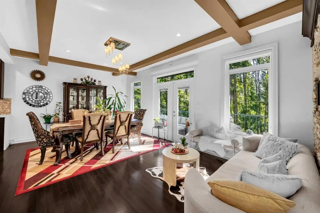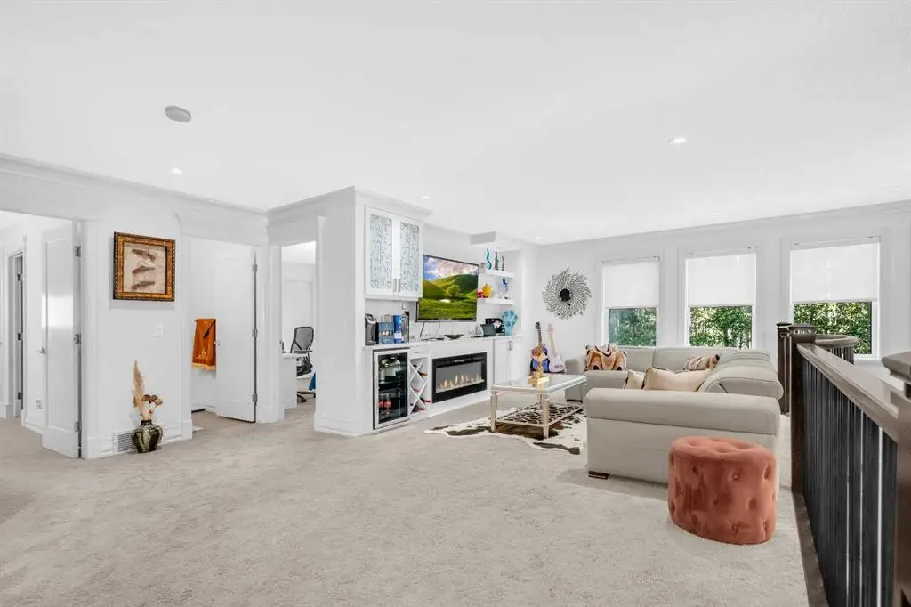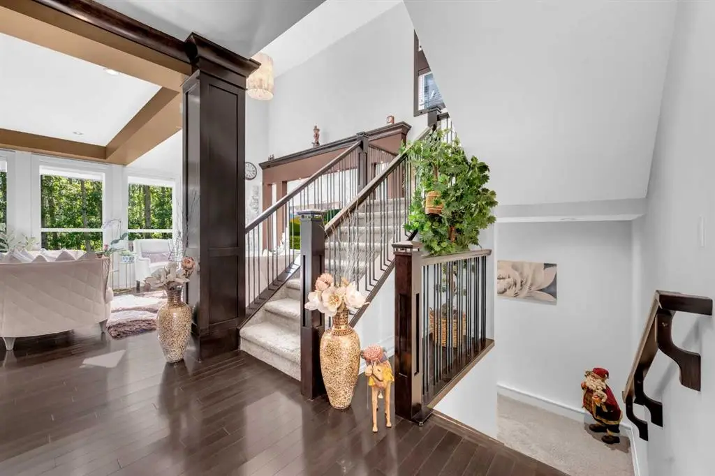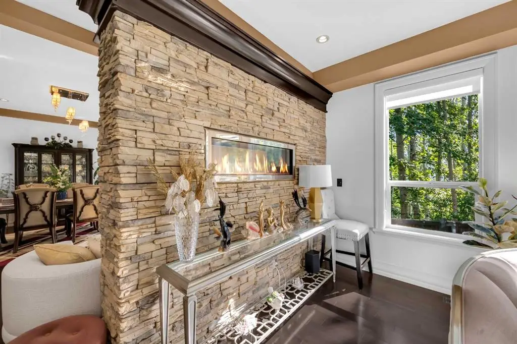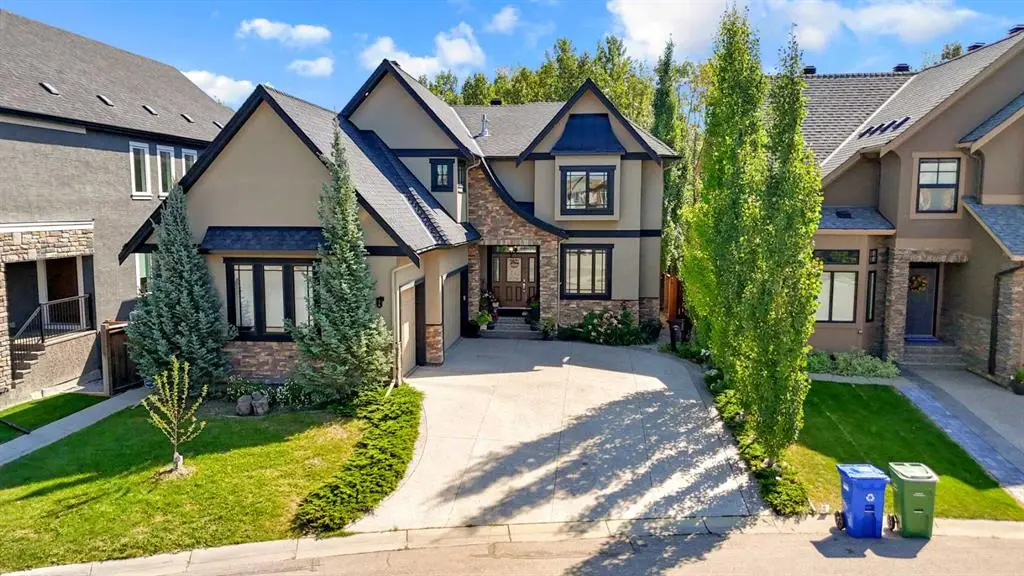 Discover a haven of refined living nestled against a tranquil forest in this former show home, where captivating stone and stucco exterior architecture meets a bespoke wooden trim lined interior that radiates timeless elegance. With over 4,900 total square feet throughout this luminous five bedroom, three full bath residence, it features an attached triple car garage, two powder rooms, and a main floor defined by soaring 9 foot ceilings, a gracious den, and a majestic 3D gas fireplace. The gourmet kitchen, ensconced beneath a chauffeured ceiling over the dining area offers floor to ceiling cabinetry, built in appliances, a vast pantry, Samsung smart fridge, and colossal island, all crafted for both culinary excellence and effortless entertaining. Upstairs, a sun drenched open-to-below bonus room with an electric fireplace overlooks the living area on the main floor and is accompanied by two bedrooms that share a Jack and Jill style bath with an additional common powder room upstairs. The luxurious master suite serves as an elegant retreat with a cathedral ceiling, pot lights, cozy gas fireplace, and spa-inspired ensuite featuring dual vanities, a two-person air tub, an opulent steam shower, and his and hers walk in closets creating a truly one of a kind space and atmosphere. The walkout lower level beckons as a radiant entertainment sanctuary, offering ample natural light through oversized windows, a near full kitchen including high-end Electrolux appliances and combo oven/microwave, two additional bedrooms, and another versatile space ideal for a den or media lounge. Premium amenities within the home encompass central air conditioning, dual furnaces, water filtration system, abundant pot lighting and much, much more. The southeast facing backyard flows seamlessly into a private wooded backdrop, crafting an idyllic extension of your indoor sanctuary and presenting the perfect space for any gathering you could have. Just minutes from top tier schools such as William D. Pratt School and Royal Oak School, the YMCA, shopping centers, and grocery stores, this residence delivers an extraordinary fusion of elevated design, sophistication, and effortlessly accessible community luxury that can only be gained by making this home yours.