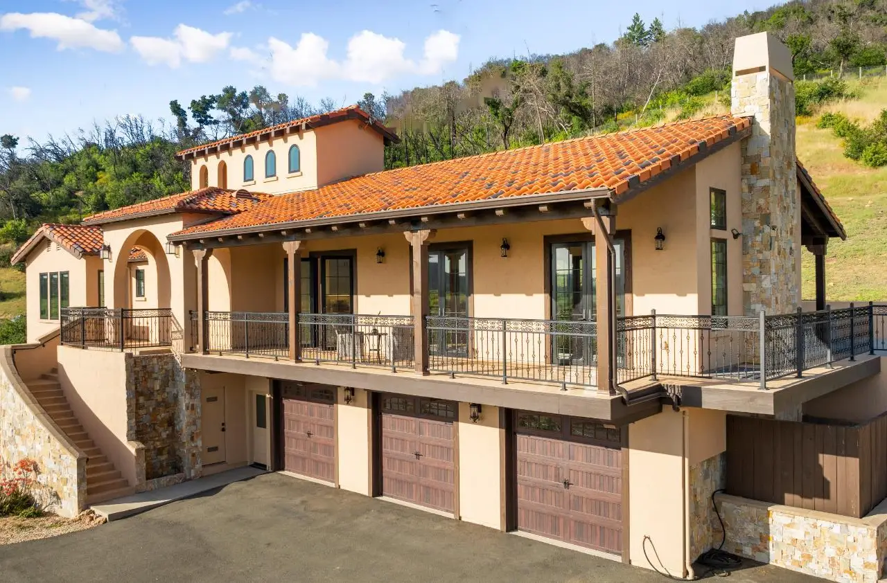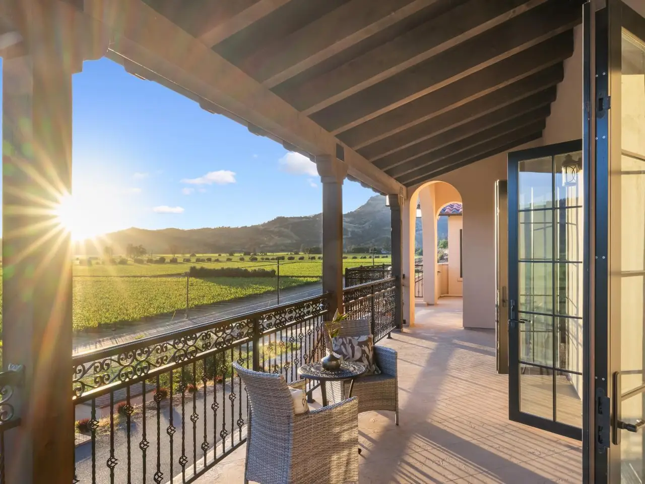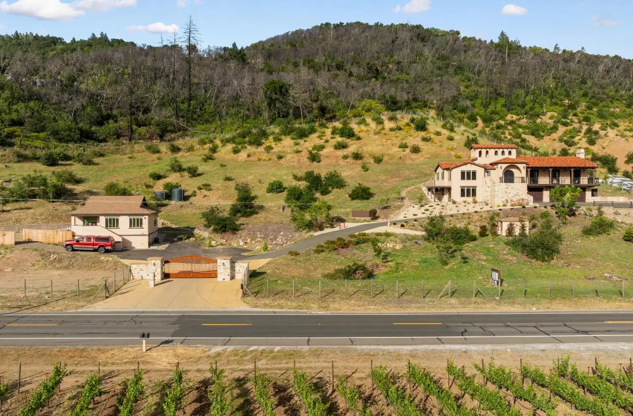 Nestled along the iconic Silverado Trail between St. Helena and Calistoga, this Tuscan-style estate blends old-world charm with modern luxury. Built in 2020 on approximately 4 private acres, the property offers sweeping southwest views over Duckhorn Vineyards and the Mayacamas Mountains beyond. The main residence features three spacious en-suite bedrooms, each showcasing high-end finishes. A spacious great room opens seamlessly to the outdoors through five custom Andersen French doors, perfect for entertaining or relaxation. Additional interior highlights include a dedicated office, a wine room, and a 3-car garage. The expansive terrace invites al fresco dining and lounging in complete privacy. A beautifully updated one-bedroom ADU offers added versatility, complete with a full kitchen, generous living and dining areas, a private yard, and vineyard views. Located just minutes from world-renowned wineries and restaurants, this exceptional property embodies the best of Napa Valley living.
