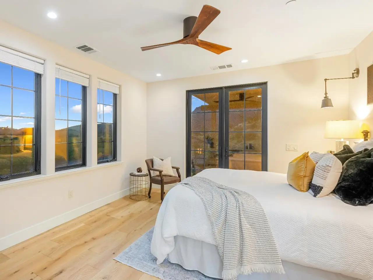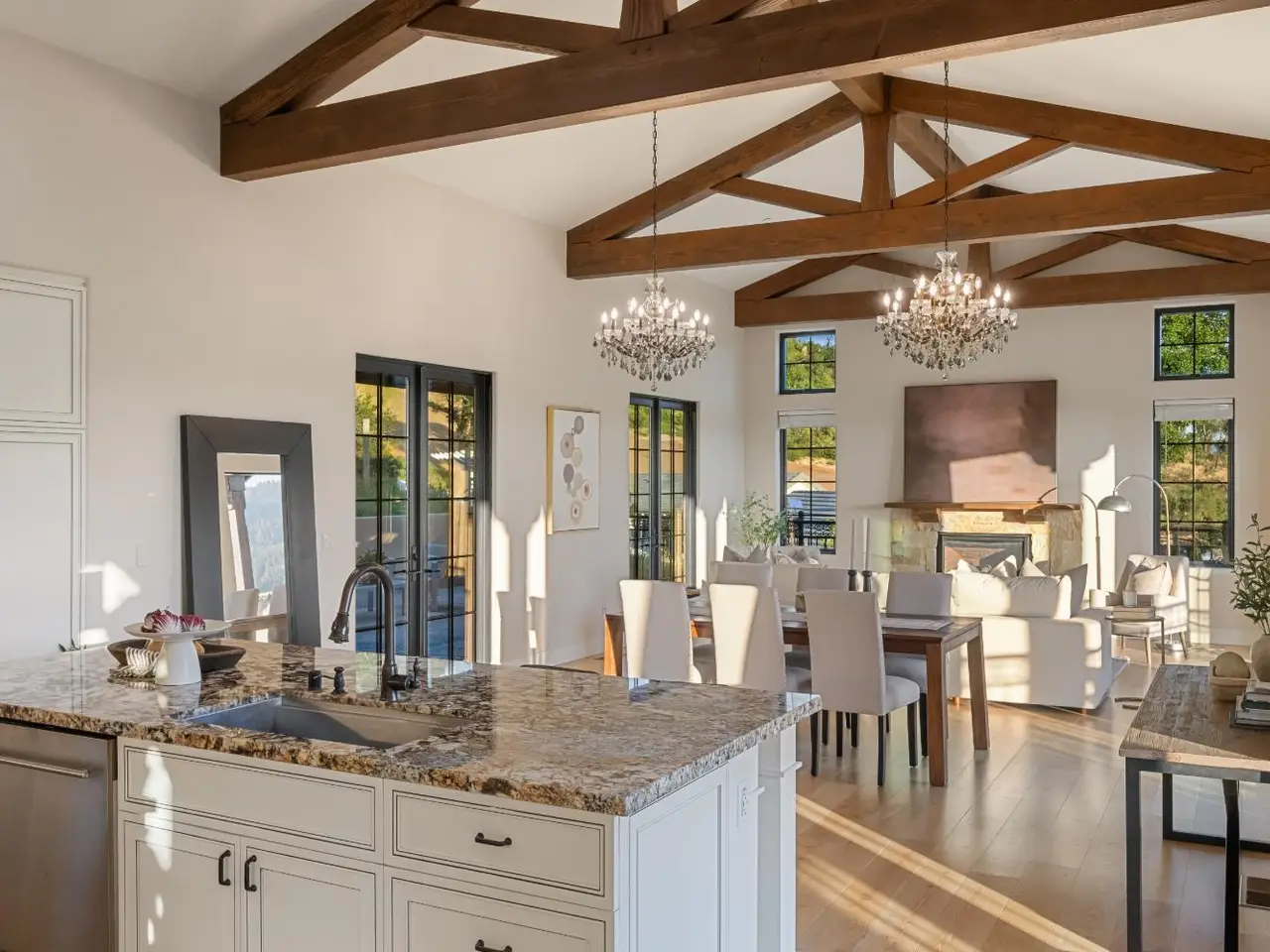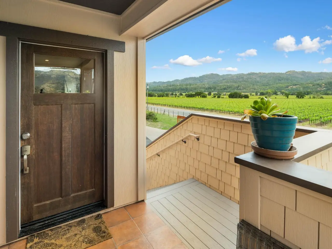 Nestled along the iconic Silverado Trail between St. Helena and Calistoga, this Tuscan-style estate blends old-world charm with modern luxury. Built in 2020 on approximately 4 private acres, the property offers sweeping southwest views over Duckhorn Vineyards and the Mayacamas Mountains beyond. The main residence features three spacious en-suite bedrooms, each showcasing high-end finishes. A spacious great room opens seamlessly to the outdoors through five custom Andersen French doors, perfect for entertaining or relaxation. Additional interior highlights include a dedicated office, a wine room, and a 3-car garage. The expansive terrace invites al fresco dining and lounging in complete privacy. A beautifully updated one-bedroom ADU offers added versatility, complete with a full kitchen, generous living and dining areas, a private yard, and vineyard views. Located just minutes from world-renowned wineries and restaurants, this exceptional property embodies the best of Napa Valley living.