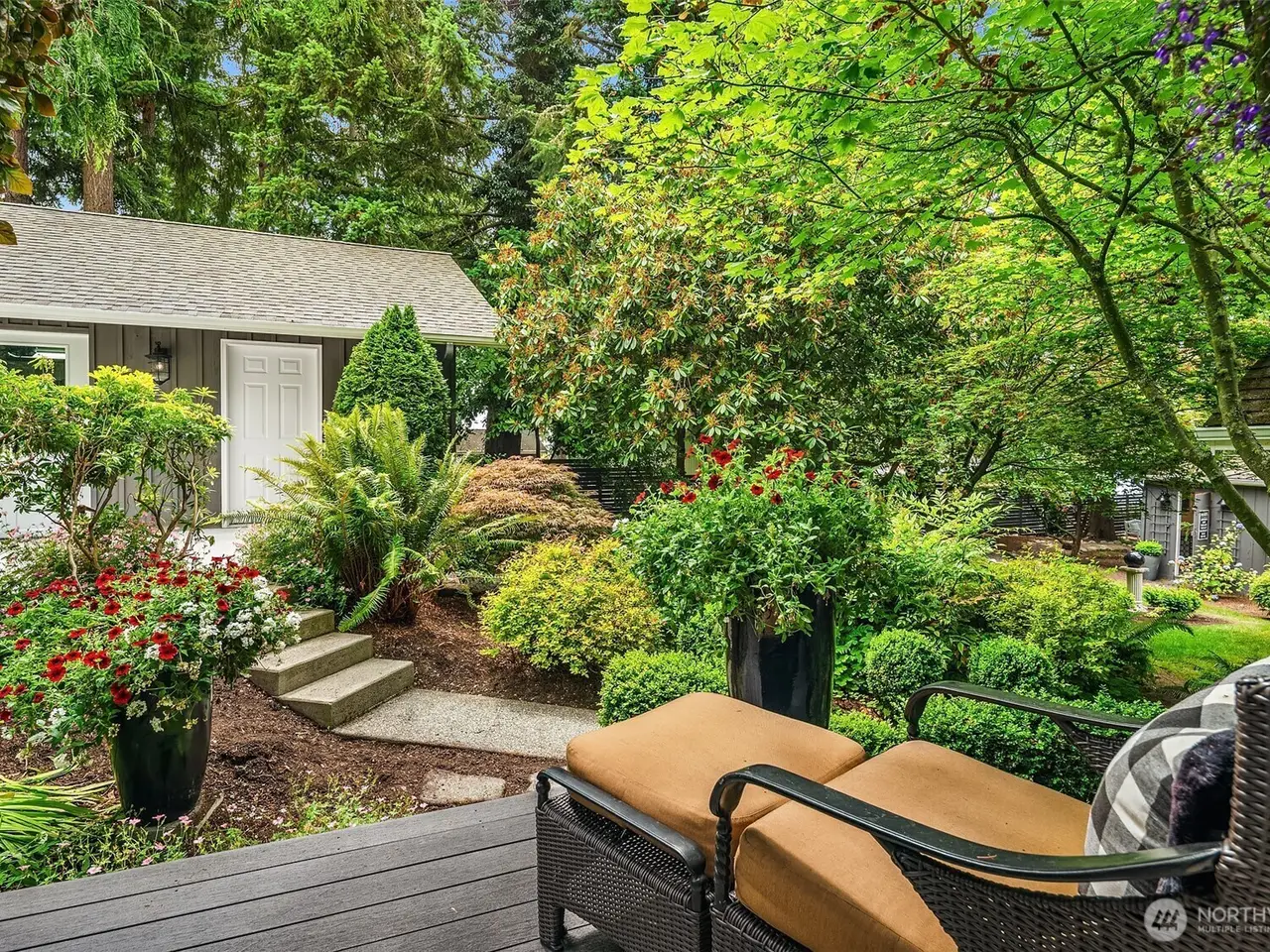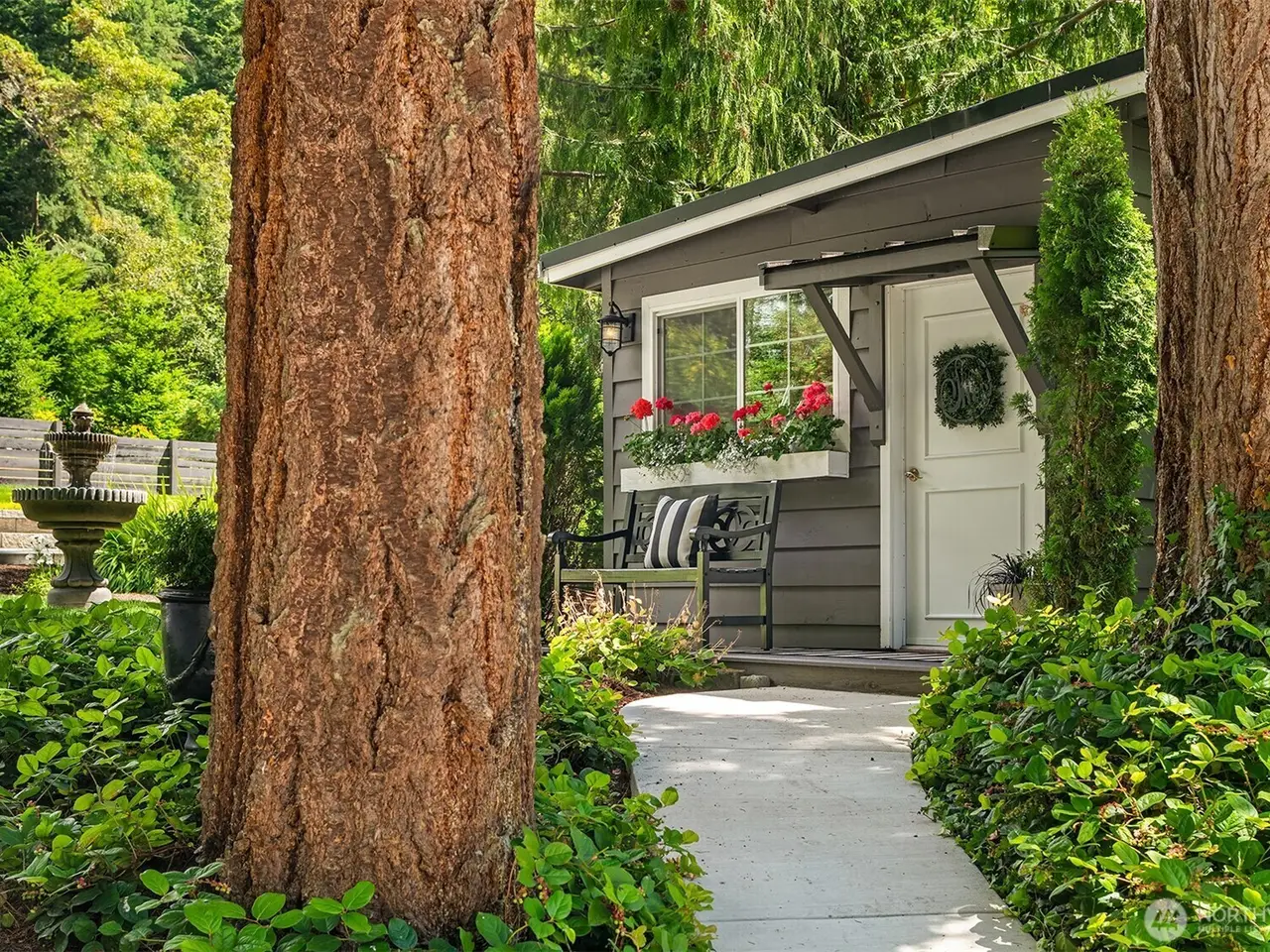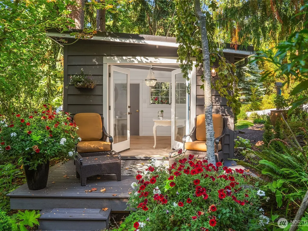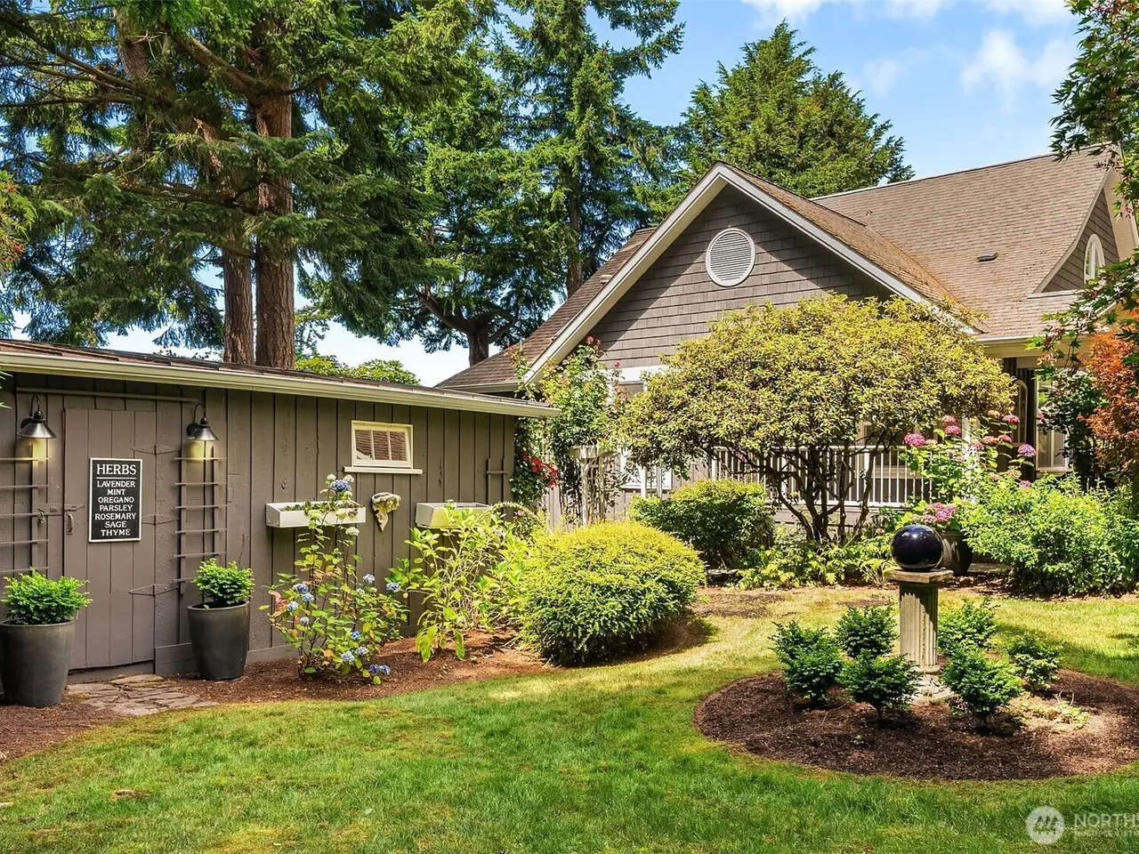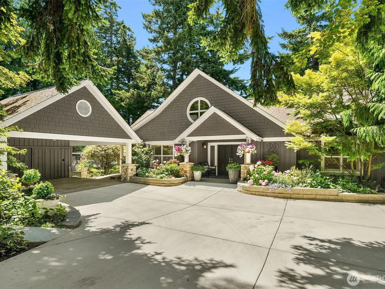 Set among lush gardens and framed by evergreens for privacy, this special home has desirable features around every corner. Understated luxury combined with privacy and unobstructed western views of Saratoga Pass, Olympics, and marine traffic. Designed for single-level living, the interior showcases thoughtfully designed spaces, new Wolf appliances (including micro), panel ready fridge, wine fridge, new roof, detached office, cottage shed, and huge deck together with multiple areas to relax and enjoy the yard. Enjoy the beach access footsteps away. 2 bedrooms + additional guest room. Carport and detached shop complete with a media lounge! Cross the bridge to Camano and feel the retreat vibe of the island-full time or part time. .