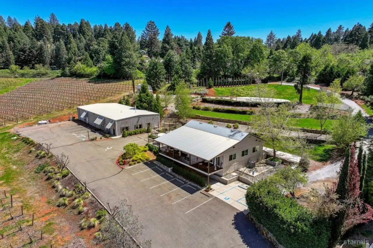 Discover a stunning 20-acre winery estate in the heart of Apple Hill, two 10 acre parcels, offering endless possibilities for unforgettable weddings and events. This versatile property combines rustic charm with modern amenities, ideal for hosting celebrations, crafting artisanal wines, and creating lasting memories. Parcel 1: Commercial + Vineyards. This parcel features a meticulously renovated commercial complex, including: Winery (3,200 sqft): A state-of-the-art facility with a remodeled tasting room, ADA-compliant restrooms, office space, and a refined barrel room, blending functionality with elegance. Event Space (1,480 sqft): A newly built space boasting a fully equipped commercial kitchen, new offices, ADA-compliant restrooms, potential bridal suites, changing rooms, ample storage, an 808 sqft deck, and a spacious patio with sweeping views of the 20-acre estate. Speakeasy Pub (785 sqft): A discreetly designed venue for intimate gatherings, adding a touch of exclusivity to events. Parcel 2: Residential + Vineyards A beautifully maintained 3-bedroom, 2-bathroom home provides a cozy retreat or potential accommodations for event hosts or guests, nestled within 10 acres of Vineyard. Spanning 16.4 acres of vineyards, the property cultivates grape varieties such as Cabernet Franc, Merlot, Picpoul, Lagrein, Syrah, and newly planted Nero d'Avola, producing wines that reflect the region's terroir. Multiple outdoor spaces, framed by rolling hills, vineyards, and towering pines, create an enchanting backdrop for private events, from grand weddings to intimate gatherings. Located just minutes from HWY 50, between Sacramento and Lake Tahoe, this venue offers ample parking and seamless accessibility for events of all sizes. Beloved by locals and visitors alike, this extraordinary estate weaves passion and beauty into every celebration, making it the perfect setting for weddings, private events, and more.