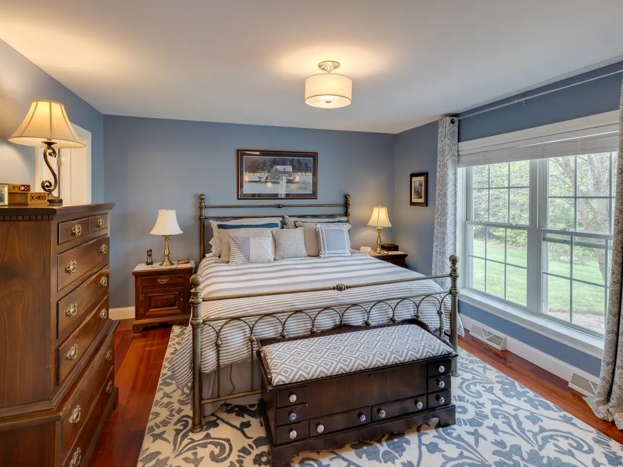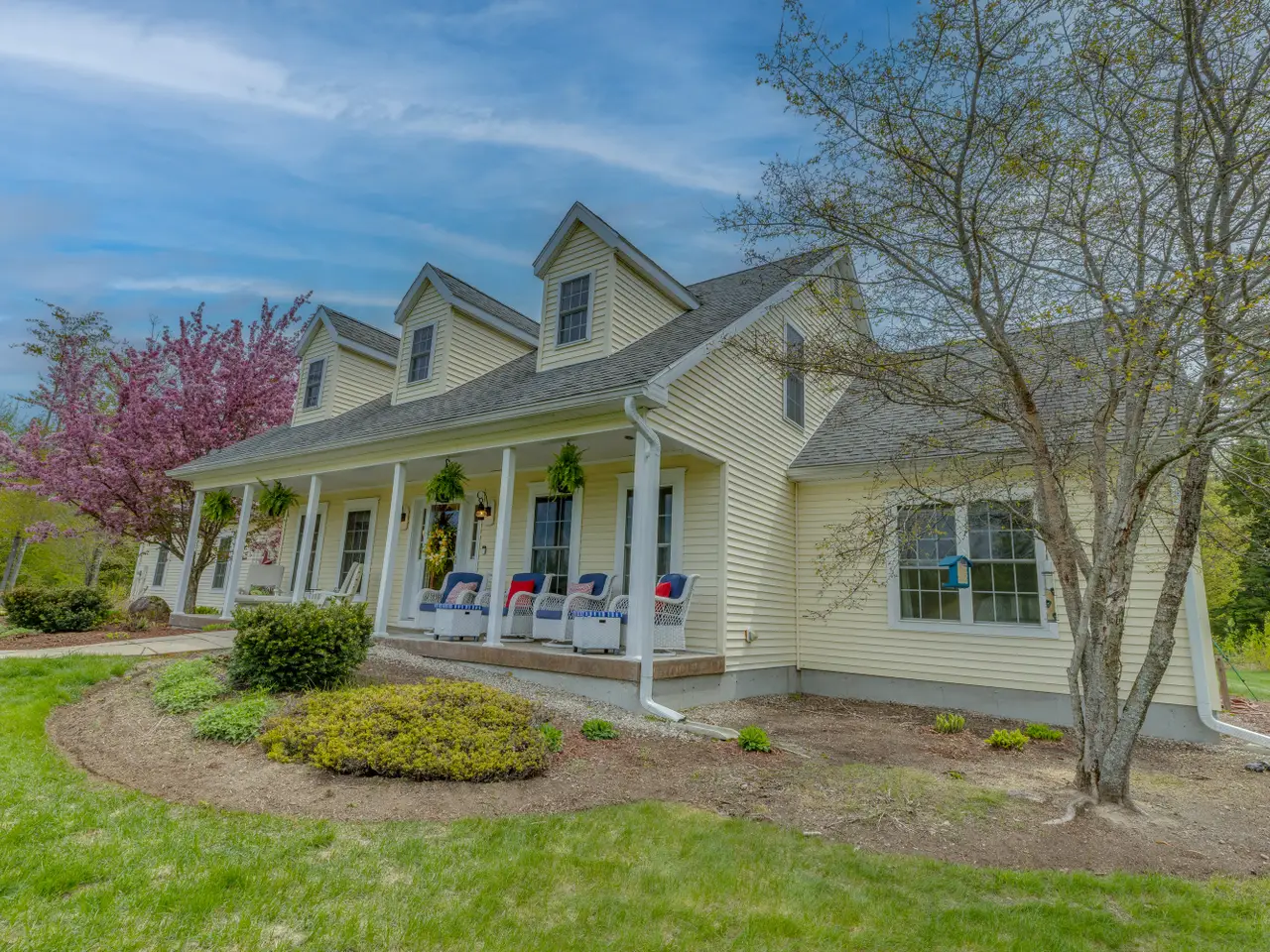 Pride of ownership exudes from this Cape-style Mountain home. Outstanding curb appeal and perched on a 5-acre private lot with lush green grass, landscaping, Mount Moosilauke views, and frontage on the Beebe River. The dynamic floor plan features a large dining room, a home office, and a spacious living room with a gas fireplace, which opens to a stunning new, light-filled sunroom. Two large first-floor bedrooms provide single-level living and ensuite convenience. The renovated kitchen offers newer appliances, flooring, and beautiful leathered granite counters. The 2nd floor offers ample space for family and guests, featuring a new family room and bedroom. A detached, heated two-car garage is perfect for snowmobiles, boats, and other vehicles. New and highly efficient geothermal heating and cooling, along with a whole-house generator, make this property the envy of the neighborhood. Sit back and relax with your morning coffee on the front farmer's porch. Close to both the lakes & mountains for four seasons of NH fun.