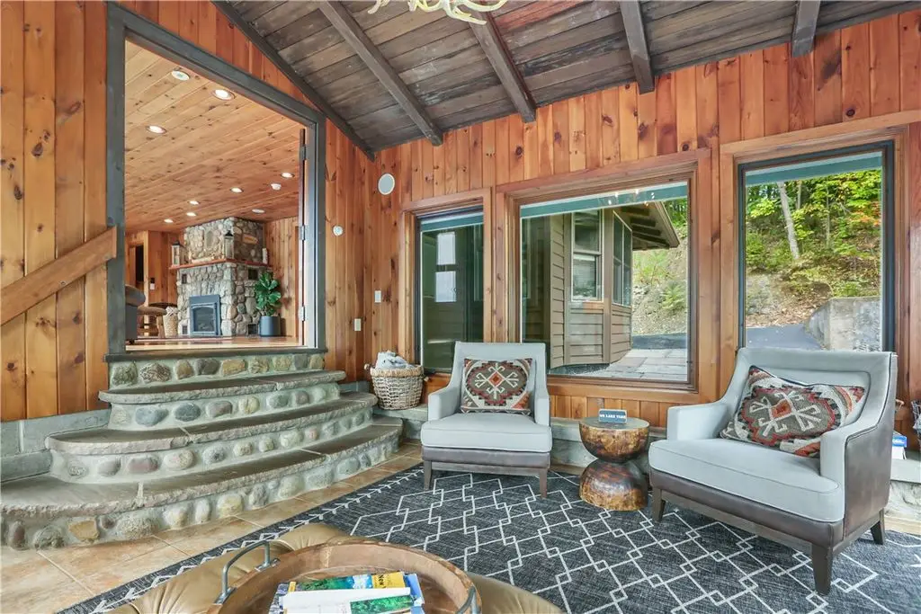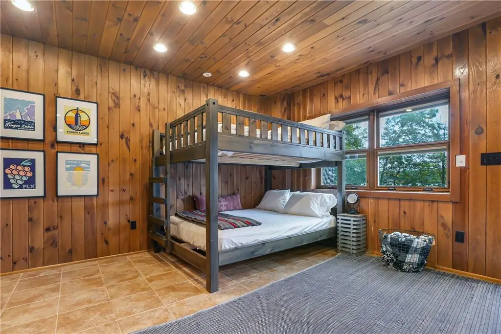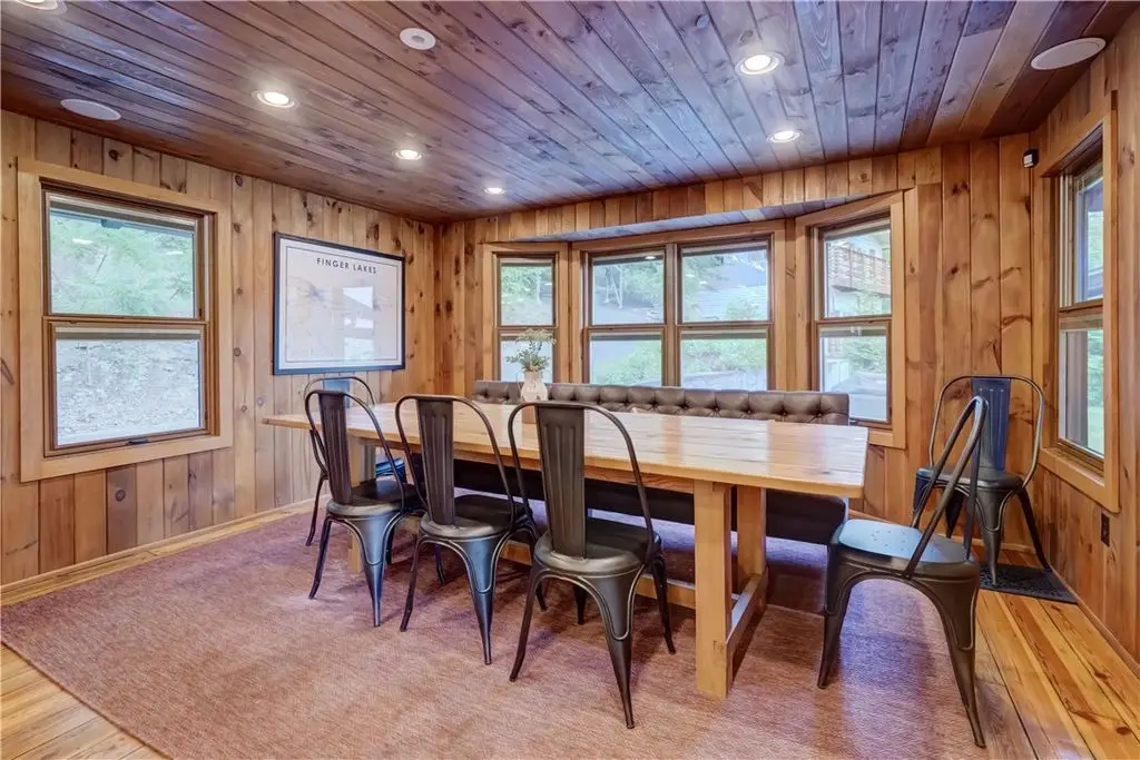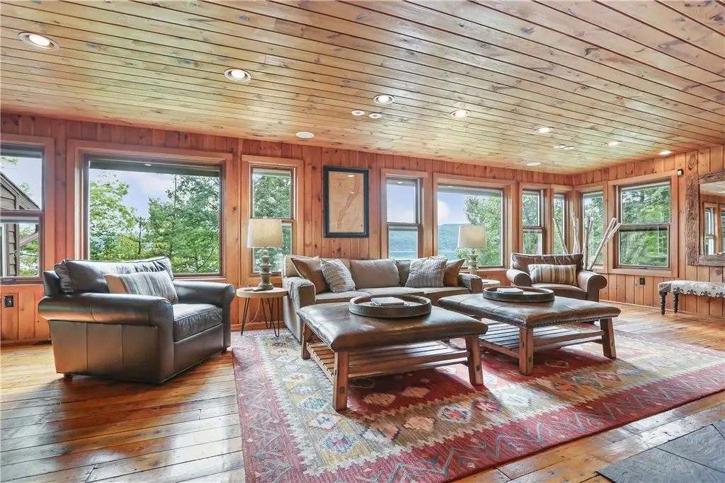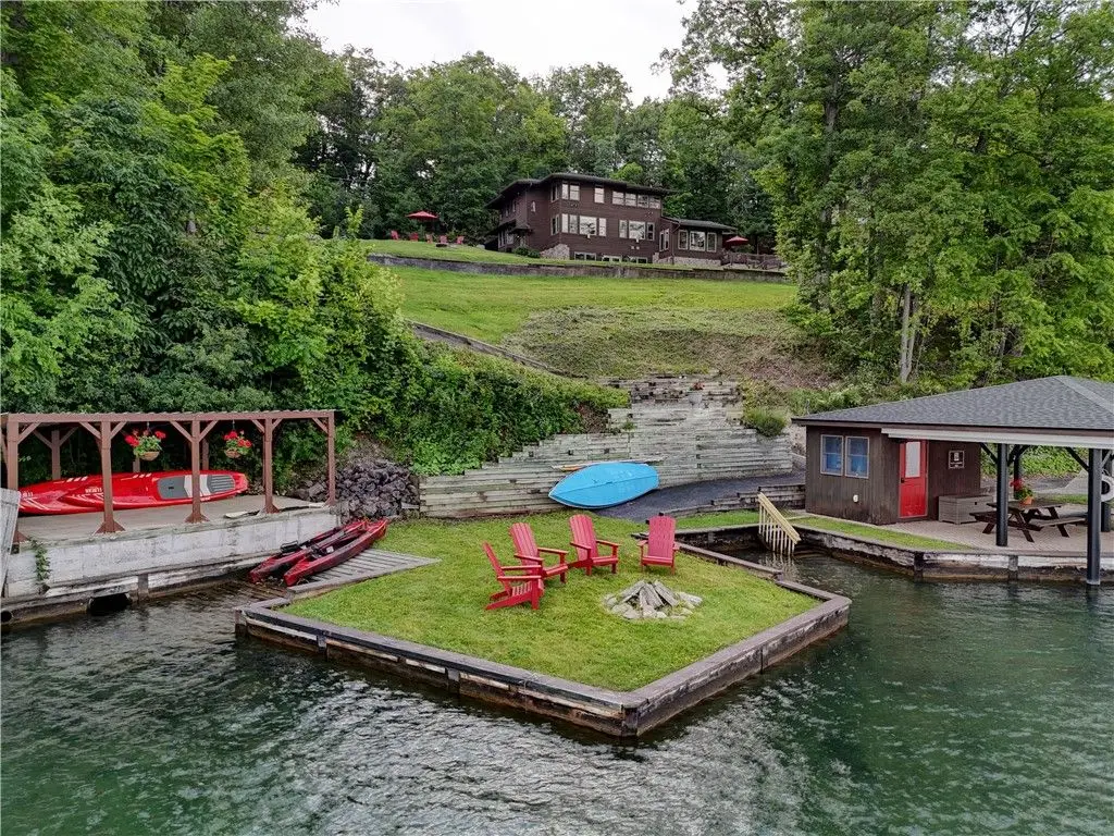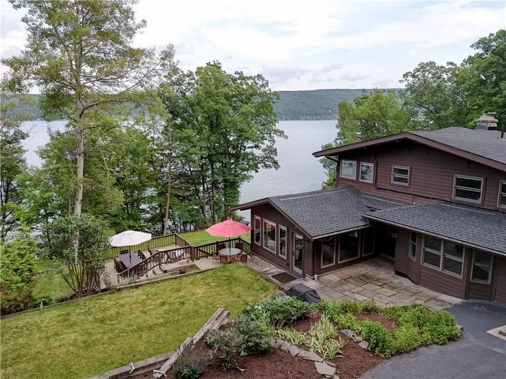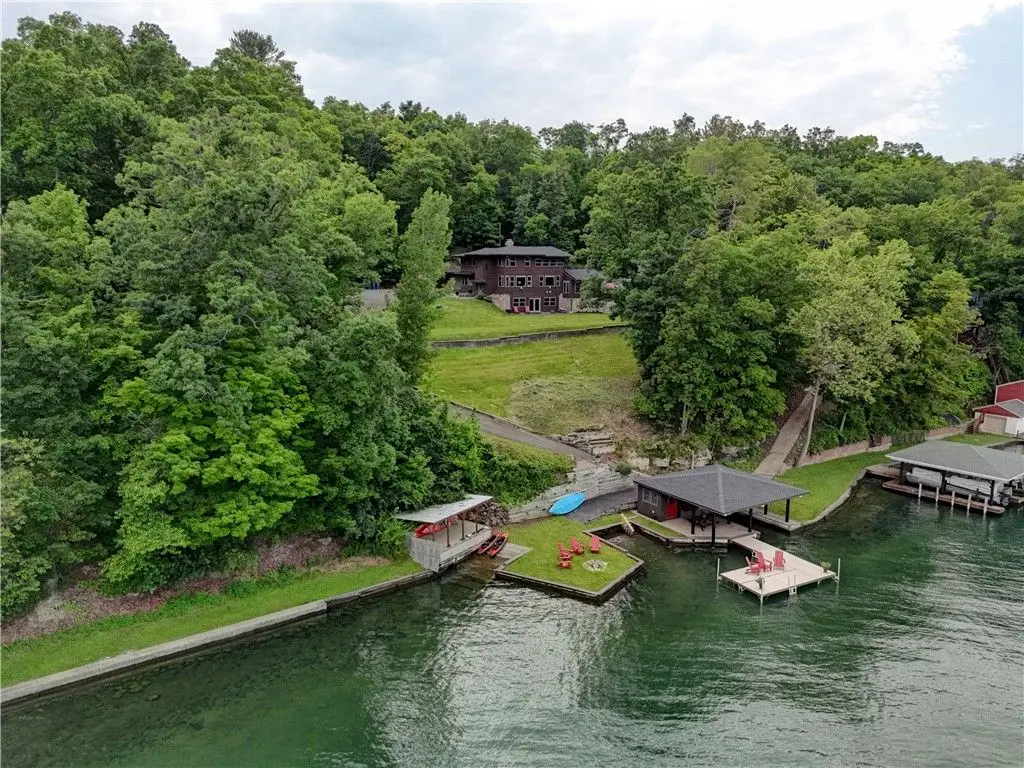 Secluded westside Canandaigua Lake home with 105 ft of water frontage. This beautiful home provides ultimate privacy on 6 acres - along with breathtaking views. Originally built in 1940 with completely rebuilt interior/exterior (2009-2010). House regraded/excavated for light-filled finished walk-out lower level. Tax records reflect 2292 sq ft but architectural measurements reflect 3100. Spacious warm kitchen complete with Wolf stove (2025) and large eating area. Original charming stone fireplace with gas insert (2021) in expansive family room leads to charming Antler Room with inviting views of the lake. First floor bedroom and full bath complete the first floor. The second floor has four bedrooms - three of which are ensuite! The amazing lower level overlooks the lake with space for TV viewing, ping pong, and extra flex space. The large laundry room includes two washers and dryers (2020). Steps away from the front door is a large gas firepit (2022) where you can relax after a long day of water activities. Boathouse was rebuilt in 2000 with 1/2 bath, and new roof (2023). New extended dock (2024) provides ample space for swimming, fishing and boating. Pella triple pane windows with built-in shades, efficient in-floor heating and new roof (2025) make this a truly year round retreat. Agent related to owner. Please make all offers good for 24 hours. Seller will provide existing survey (dated 4/2023) with an affidavit of no charge.