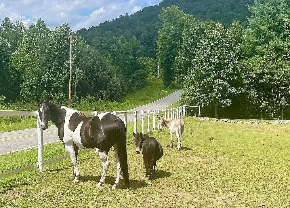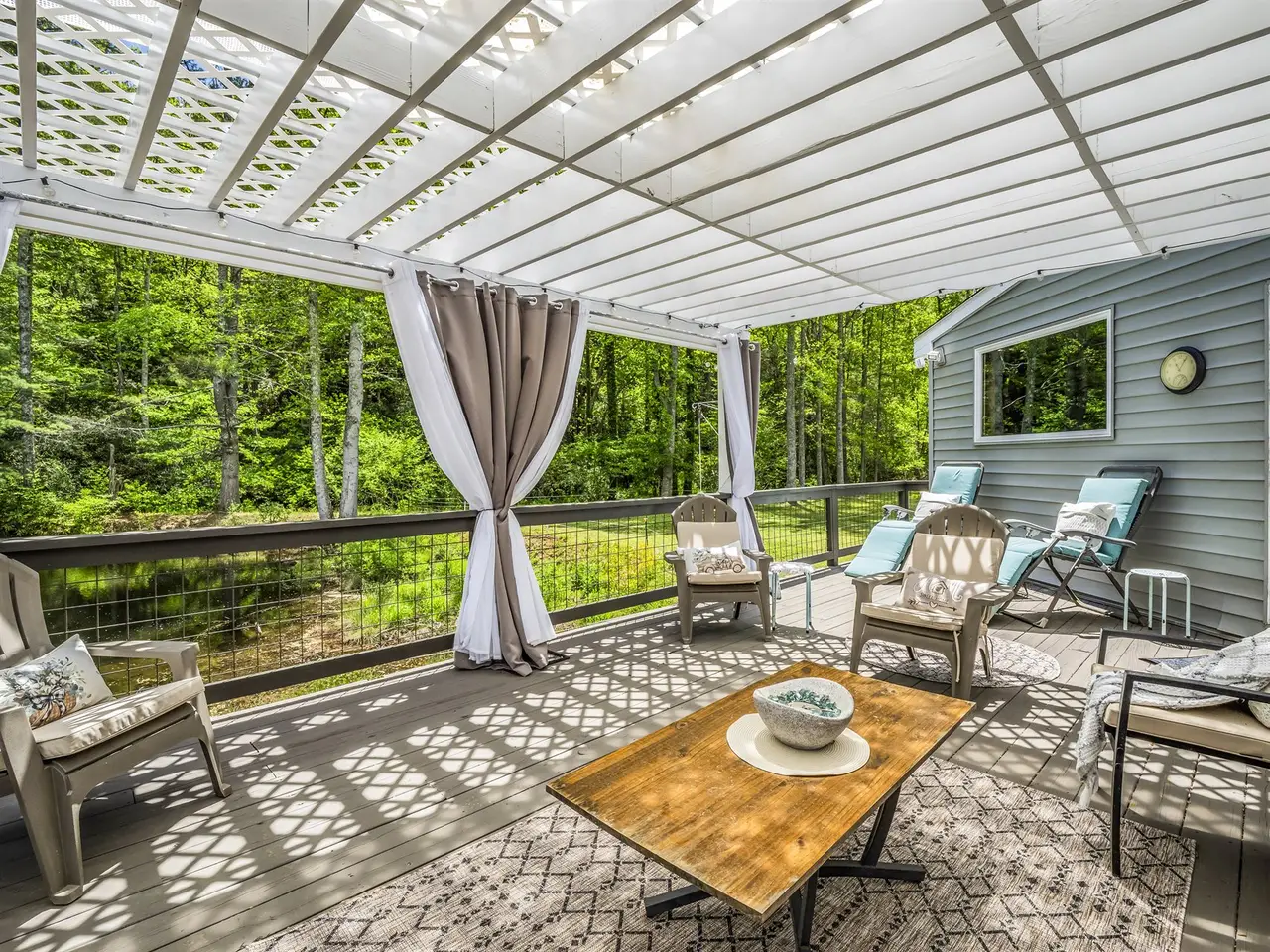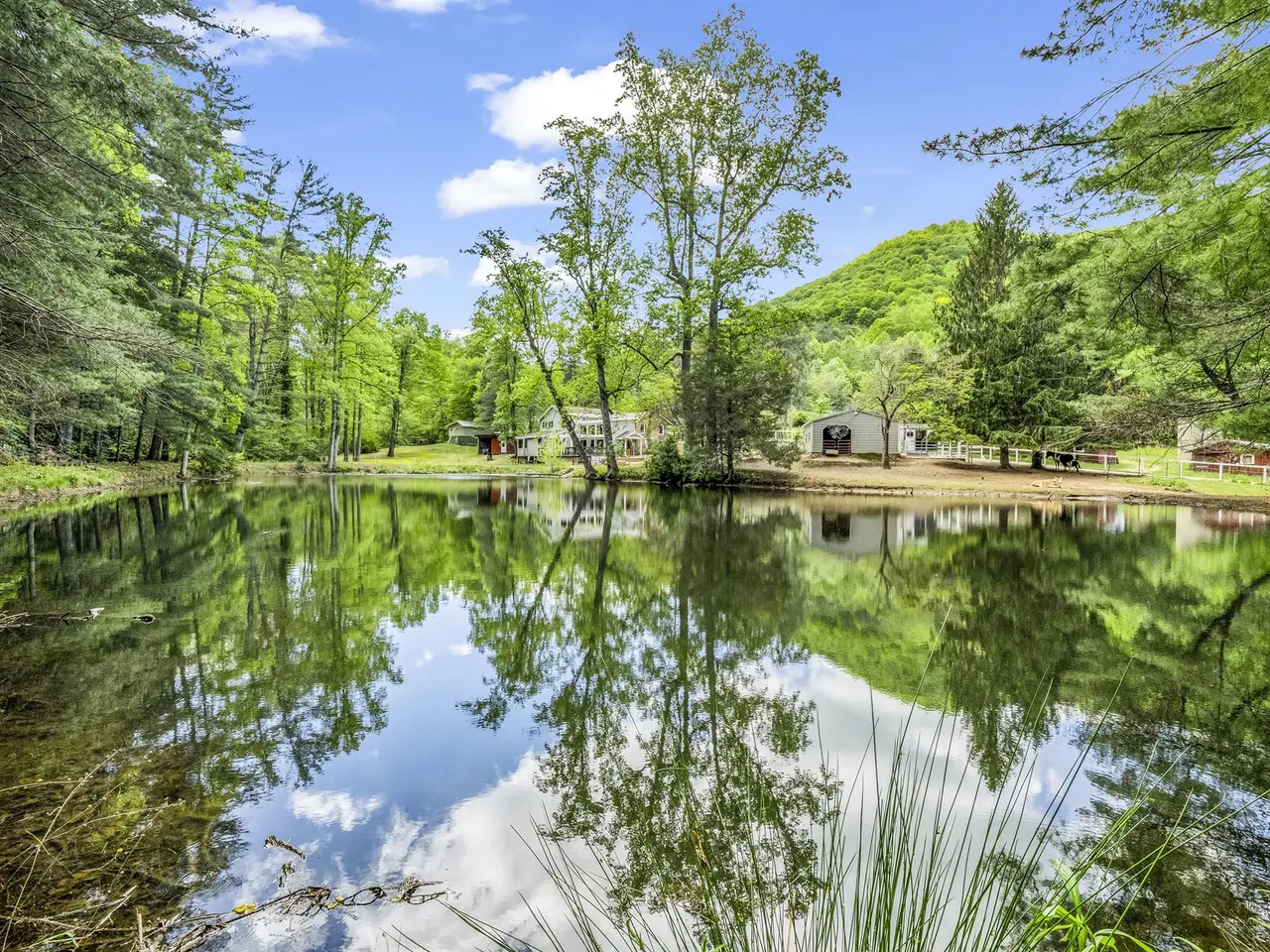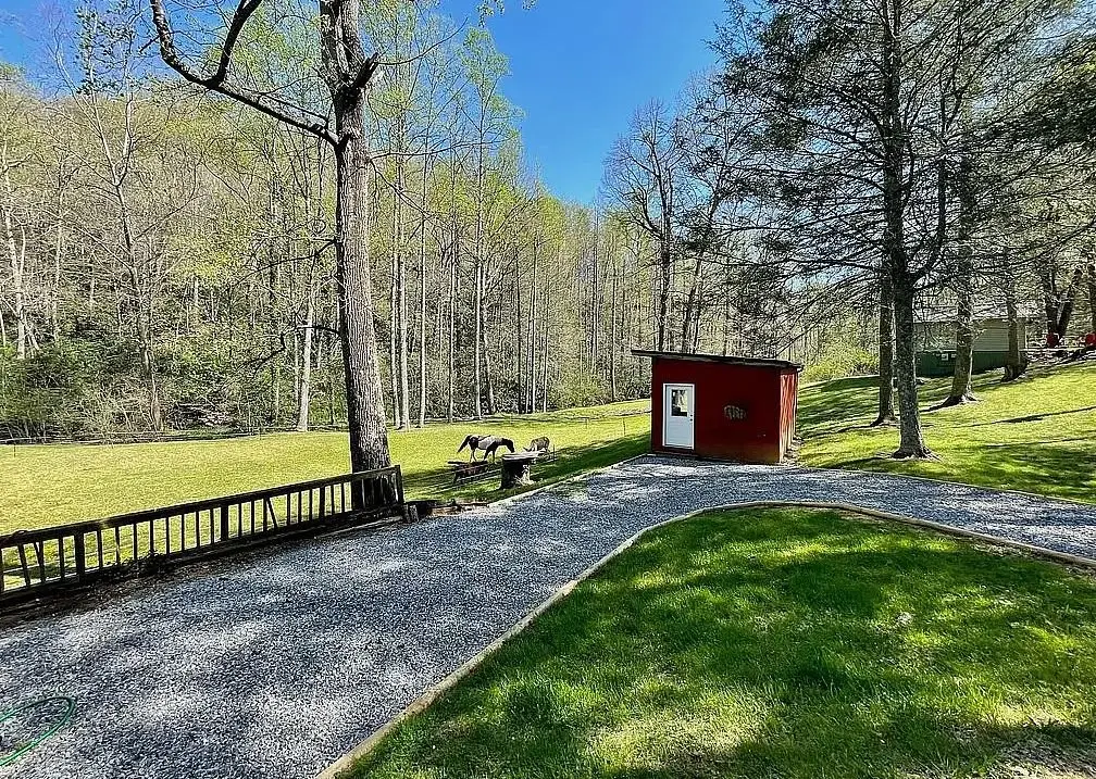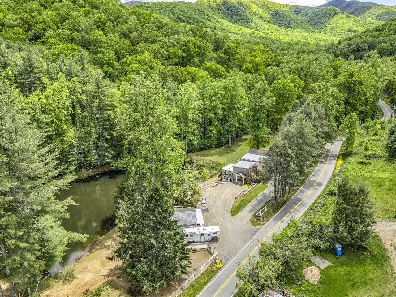 REDUCED: Newly Priced to Sell! Don't miss this opportunity! Magnificent, peaceful 17.5 acre equestrian property with its own natural water source - a creek and creek-fed pond, making it the ideal property for horse lovers! Imagine sipping your morning coffee from the freshly painted pergola while watching the fog lift off the pond and horse pasture, or enjoy an evening cocktails with friends as the sun sets! Immerse yourself in quiet just a few minutes to the Blue Ridge Parkway; the solitude here is amazing on this quiet road leading to mountain paradise. Driving not on your days agenda? That's OK, you'll have endless opportunities to enjoy your own private paradise without even leaving your very own, lush 17+ acres! Enjoy a morning walk on your trails, or take a few minutes to fish for bass in the evening. This incredible property is NOT located in a flood plain. The main house was completely renovated in 2015; the stone wall in the living room was once the home's exterior from when the home was originally built in 1942. The chef inspired gourmet kitchen features custom cabinetry throughout with soft touch close drawers, designed and built by local craftsmen with a tree trunk harvested from the property right in the center. But the best feature just might be the kitchen sink picture window overlooking the private pond! The oversized primary suite offers dual walk-in closets, dual vanities with live-edge counters, a double sized jetted soaking tub, and the most luxurious shower in Western North Carolina with its 9 shower heads and even a 10 million year-old petrified wood seat! This unique home also has radiant heat floors and incredible natural light! The guest cabin was newly renovated in 2011 and all new flooring and roof in 2022is currently rented long-term (month-to-month) but would be a great short-term rental. Because this property is outside the Asheville city limits, there are no restrictions on vacation rentals. The 2 stall barn with tack room opens into the pasture and has parking for a horse trailer. The property is comprised of 2 adjoining parcels, and there is ample room on the second parcel (the one with guest cabin) to clear additional pasture or to build additional structures. This is a spectacular home for entertaining, especially in the spring, summer, and fall, with a spacious floor plan that flows onto the cabana overlooking the pond. Zoned Open Use and located just below Mt. Pisgah and the Blue Ridge Parkway, this property is ideal for an event venue, yoga retreat center, or vacation rental complex. No damage from Hurricane Helene in September 2024. Click Virtual Tour for even more photos! Happy Trails!