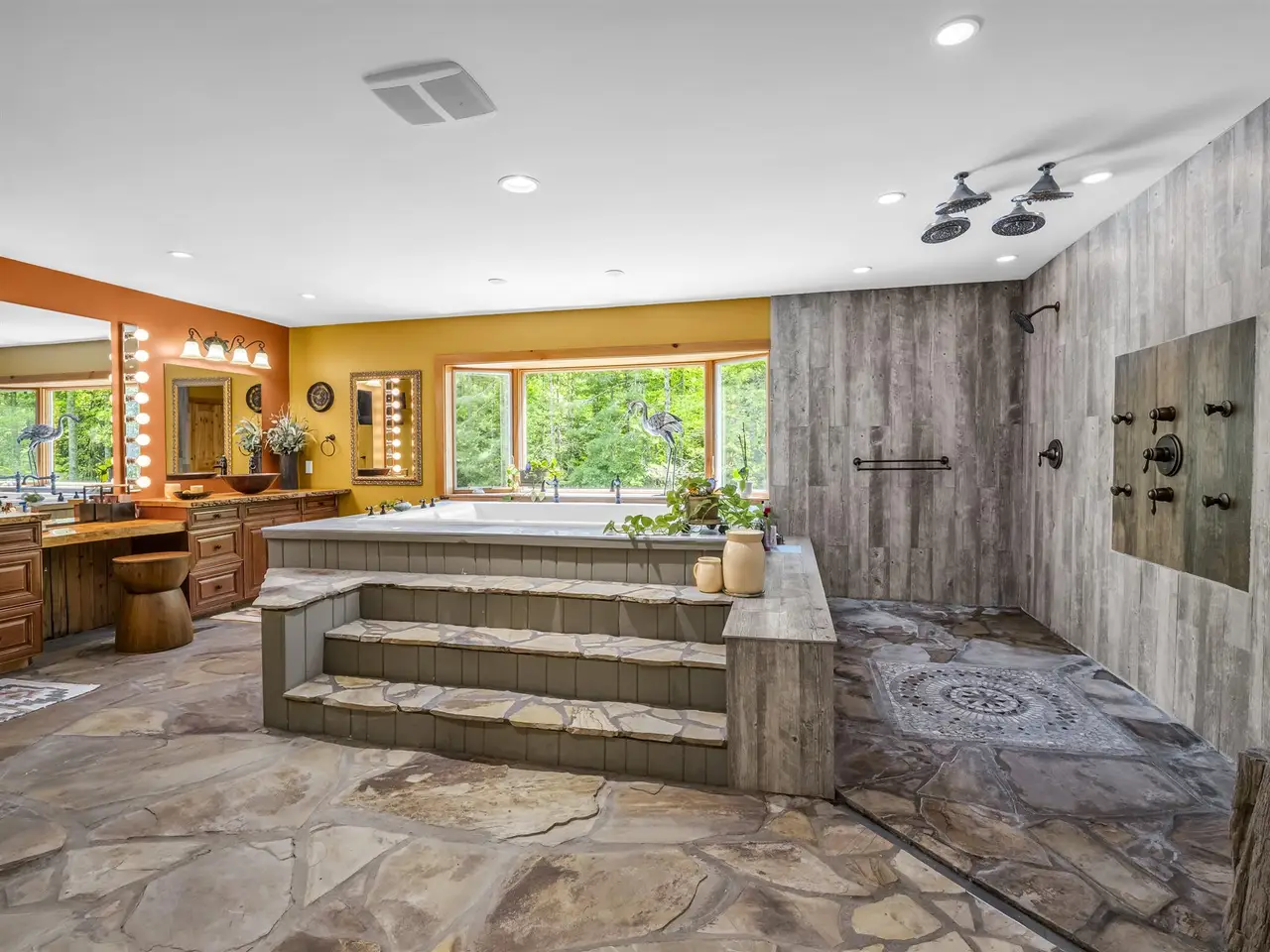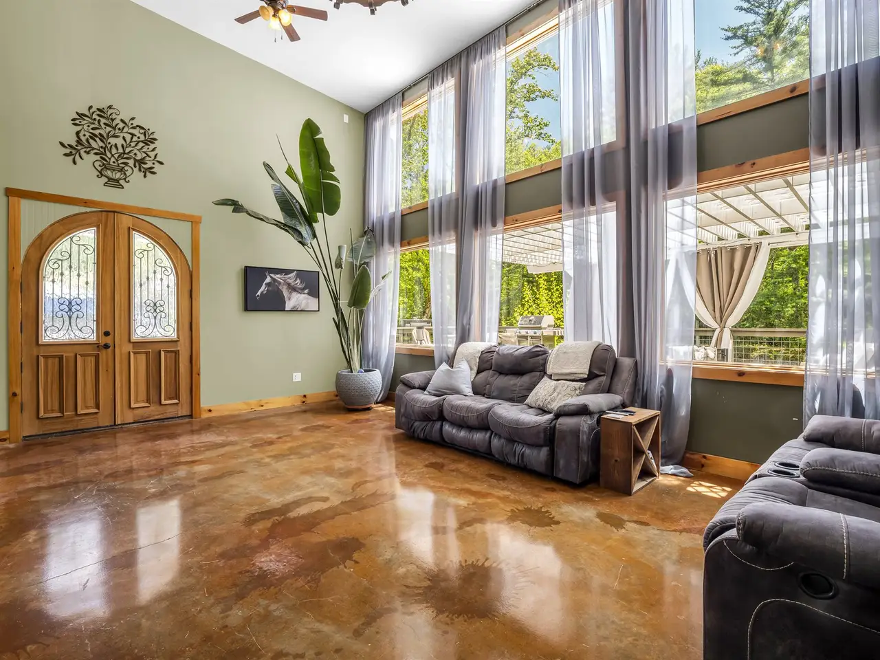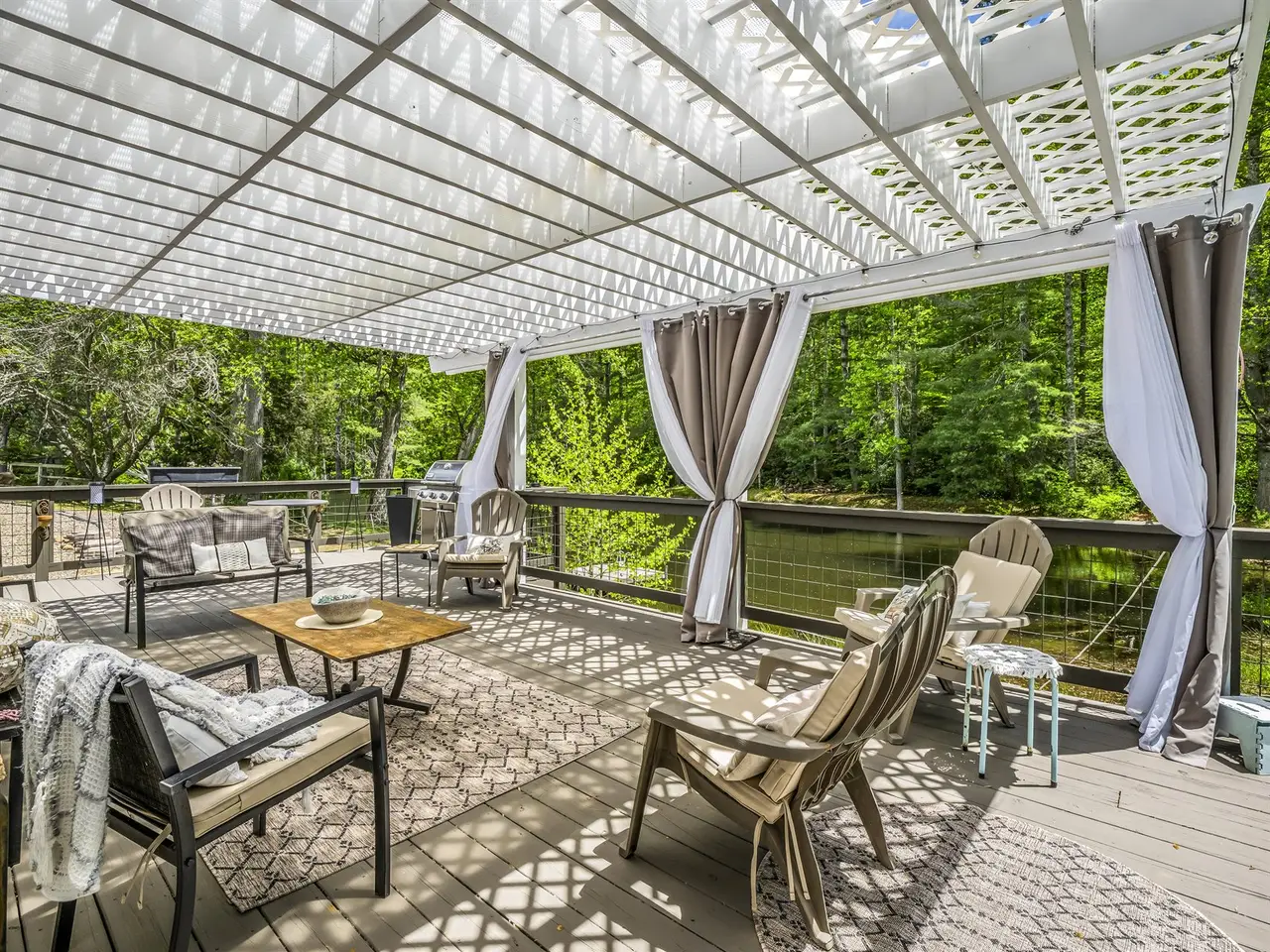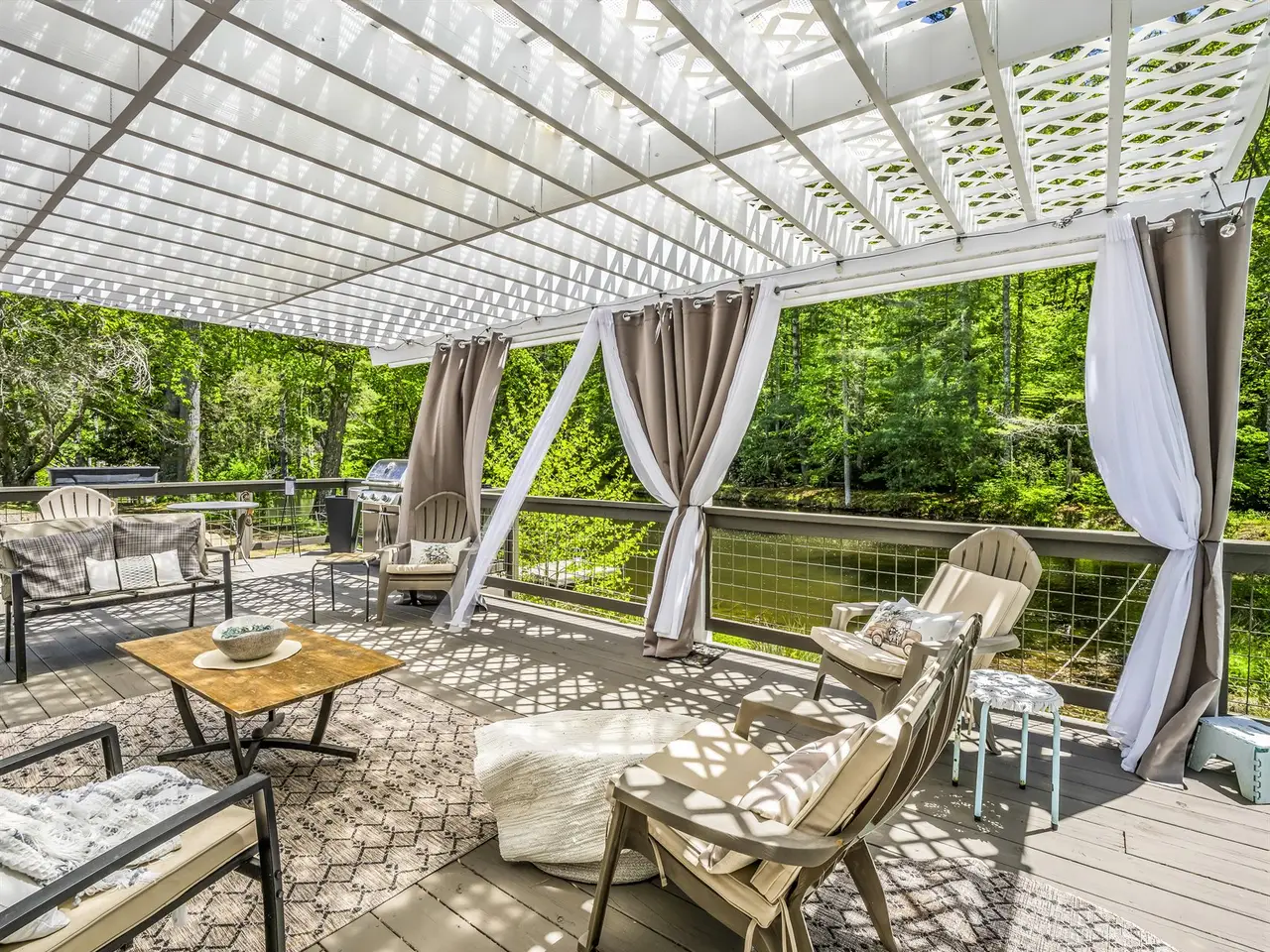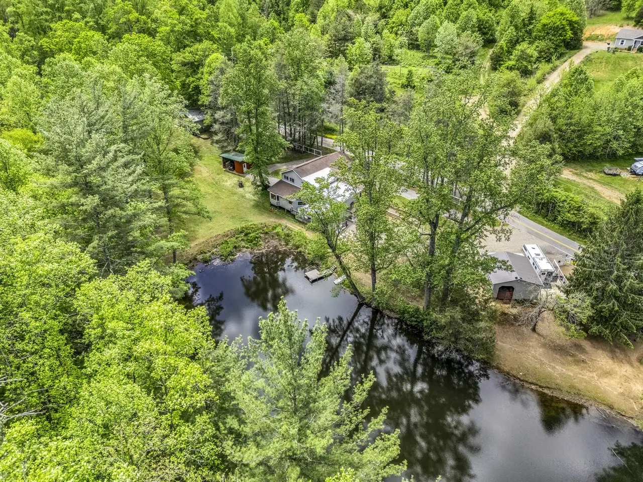 REDUCED: Newly Priced to Sell! Don't miss this opportunity! Magnificent, peaceful 17.5 acre equestrian property with its own natural water source - a creek and creek-fed pond, making it the ideal property for horse lovers! Imagine sipping your morning coffee from the freshly painted pergola while watching the fog lift off the pond and horse pasture, or enjoy an evening cocktails with friends as the sun sets! Immerse yourself in quiet just a few minutes to the Blue Ridge Parkway; the solitude here is amazing on this quiet road leading to mountain paradise. Driving not on your days agenda? That's OK, you'll have endless opportunities to enjoy your own private paradise without even leaving your very own, lush 17+ acres! Enjoy a morning walk on your trails, or take a few minutes to fish for bass in the evening. This incredible property is NOT located in a flood plain. The main house was completely renovated in 2015; the stone wall in the living room was once the home's exterior from when the home was originally built in 1942. The chef inspired gourmet kitchen features custom cabinetry throughout with soft touch close drawers, designed and built by local craftsmen with a tree trunk harvested from the property right in the center. But the best feature just might be the kitchen sink picture window overlooking the private pond! The oversized primary suite offers dual walk-in closets, dual vanities with live-edge counters, a double sized jetted soaking tub, and the most luxurious shower in Western North Carolina with its 9 shower heads and even a 10 million year-old petrified wood seat! This unique home also has radiant heat floors and incredible natural light! The guest cabin was newly renovated in 2011 and all new flooring and roof in 2022is currently rented long-term (month-to-month) but would be a great short-term rental. Because this property is outside the Asheville city limits, there are no restrictions on vacation rentals. The 2 stall barn with tack room opens into the pasture and has parking for a horse trailer. The property is comprised of 2 adjoining parcels, and there is ample room on the second parcel (the one with guest cabin) to clear additional pasture or to build additional structures. This is a spectacular home for entertaining, especially in the spring, summer, and fall, with a spacious floor plan that flows onto the cabana overlooking the pond. Zoned Open Use and located just below Mt. Pisgah and the Blue Ridge Parkway, this property is ideal for an event venue, yoga retreat center, or vacation rental complex. No damage from Hurricane Helene in September 2024. Click Virtual Tour for even more photos! Happy Trails!