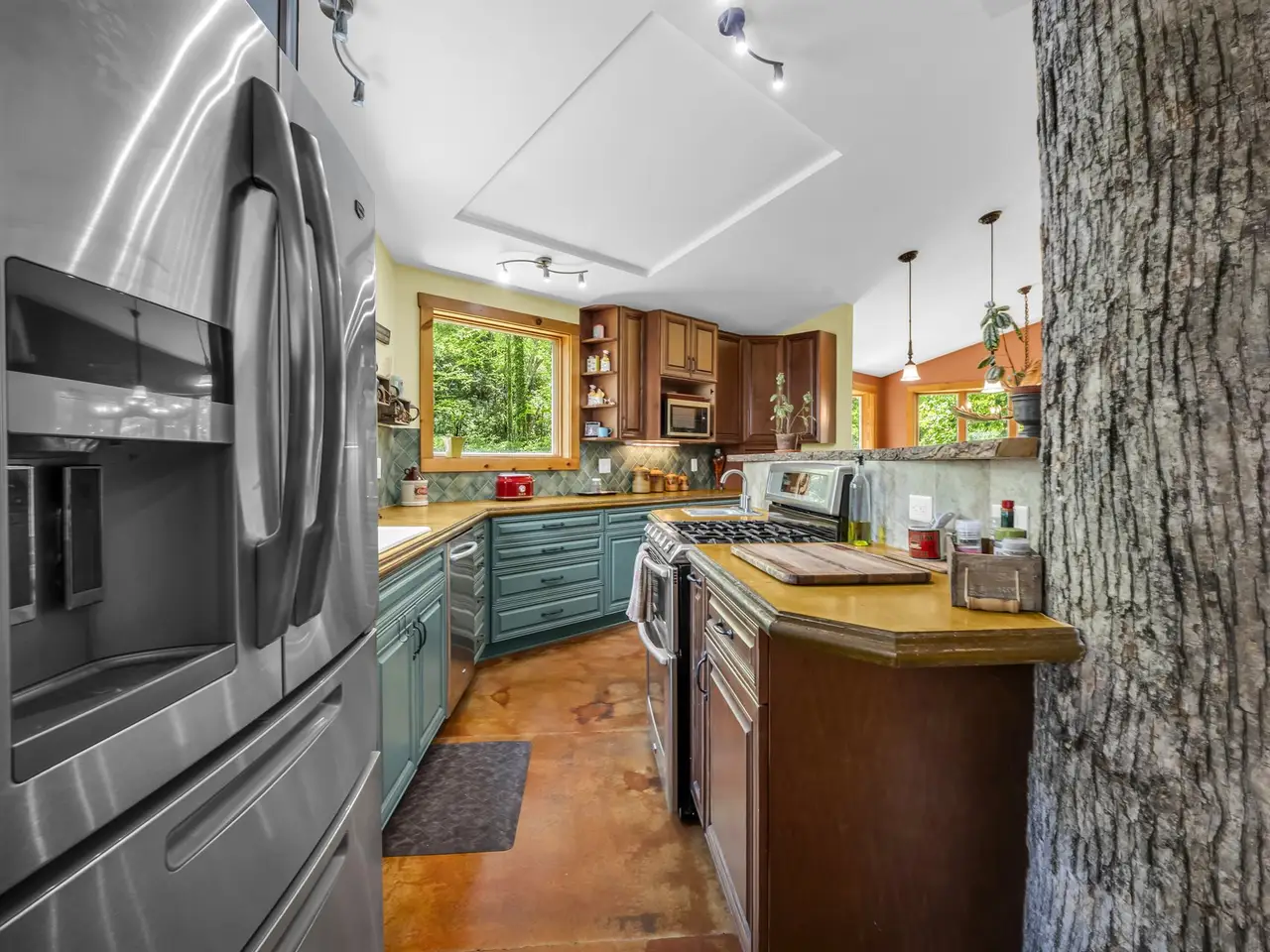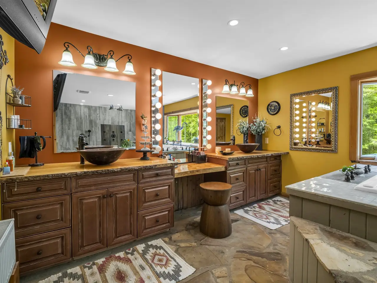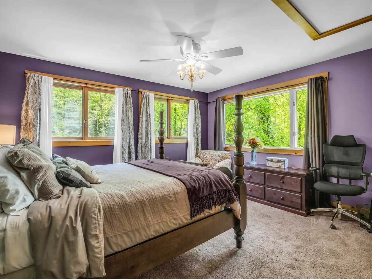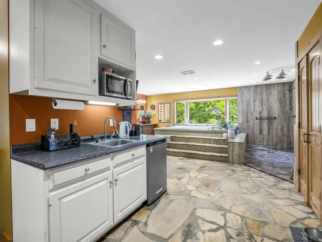 REDUCED: Newly Priced to Sell! Don't miss this opportunity! Magnificent, peaceful 17.5 acre equestrian property with its own natural water source - a creek and creek-fed pond, making it the ideal property for horse lovers! Imagine sipping your morning coffee from the freshly painted pergola while watching the fog lift off the pond and horse pasture, or enjoy an evening cocktails with friends as the sun sets! Immerse yourself in quiet just a few minutes to the Blue Ridge Parkway; the solitude here is amazing on this quiet road leading to mountain paradise. Driving not on your days agenda? That's OK, you'll have endless opportunities to enjoy your own private paradise without even leaving your very own, lush 17+ acres! Enjoy a morning walk on your trails, or take a few minutes to fish for bass in the evening. This incredible property is NOT located in a flood plain. The main house was completely renovated in 2015; the stone wall in the living room was once the home's exterior from when the home was originally built in 1942. The chef inspired gourmet kitchen features custom cabinetry throughout with soft touch close drawers, designed and built by local craftsmen with a tree trunk harvested from the property right in the center. But the best feature just might be the kitchen sink picture window overlooking the private pond! The oversized primary suite offers dual walk-in closets, dual vanities with live-edge counters, a double sized jetted soaking tub, and the most luxurious shower in Western North Carolina with its 9 shower heads and even a 10 million year-old petrified wood seat! This unique home also has radiant heat floors and incredible natural light! The guest cabin was newly renovated in 2011 and all new flooring and roof in 2022is currently rented long-term (month-to-month) but would be a great short-term rental. Because this property is outside the Asheville city limits, there are no restrictions on vacation rentals. The 2 stall barn with tack room opens into the pasture and has parking for a horse trailer. The property is comprised of 2 adjoining parcels, and there is ample room on the second parcel (the one with guest cabin) to clear additional pasture or to build additional structures. This is a spectacular home for entertaining, especially in the spring, summer, and fall, with a spacious floor plan that flows onto the cabana overlooking the pond. Zoned Open Use and located just below Mt. Pisgah and the Blue Ridge Parkway, this property is ideal for an event venue, yoga retreat center, or vacation rental complex. No damage from Hurricane Helene in September 2024. Click Virtual Tour for even more photos! Happy Trails!