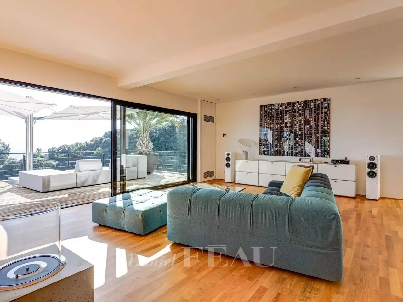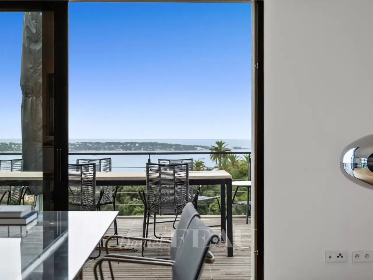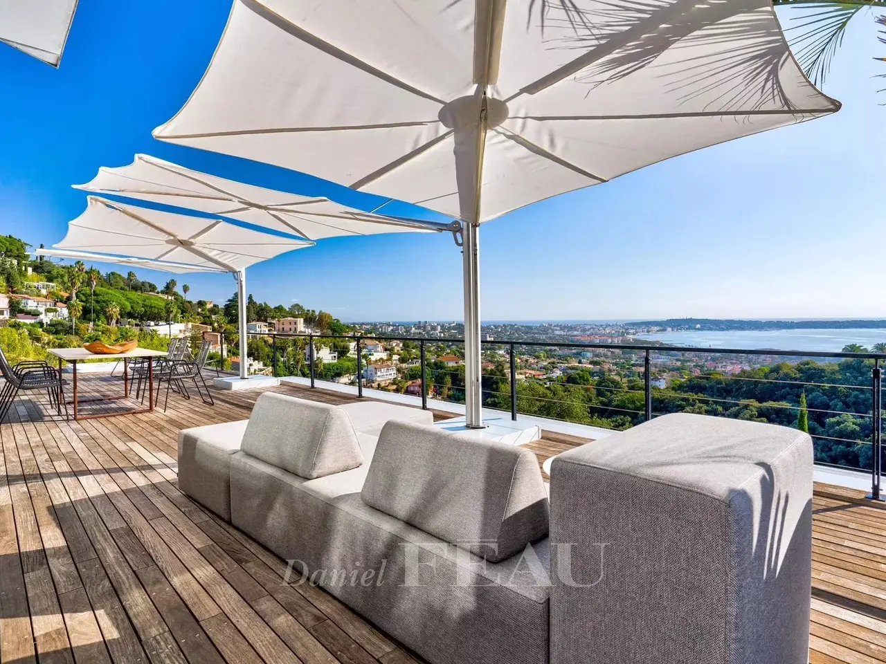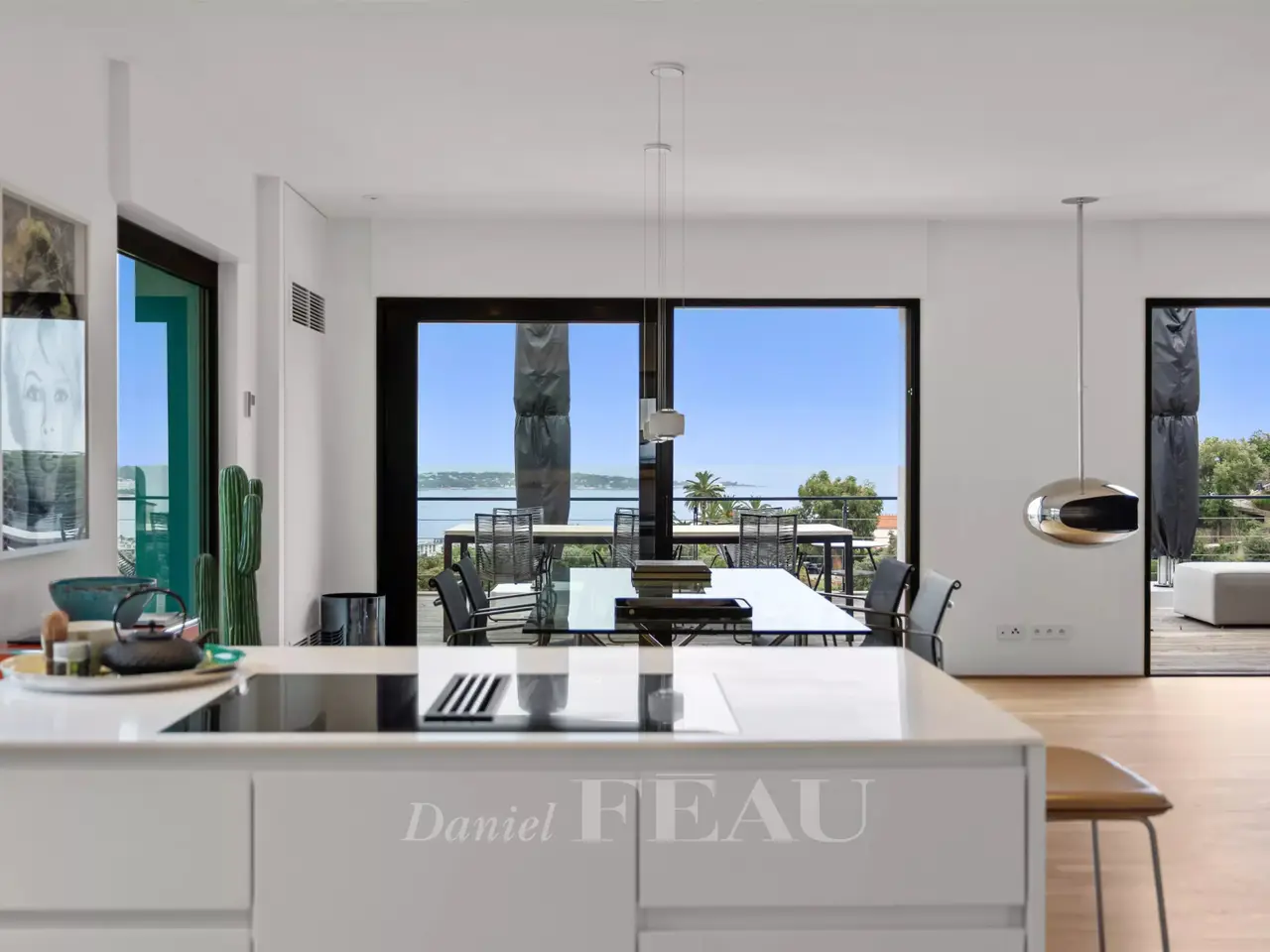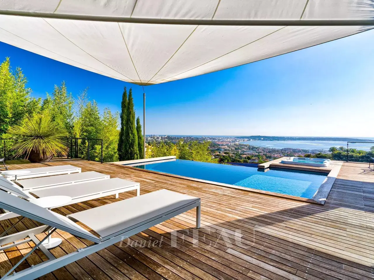 This architect-designed property set in 1537 sqm of grounds facing the sea is on the heights of Golfe-Juan, 5 minutes from the beaches, the shops and the schools, and 10 minutes from Cannes and Antibes. Commanding open views, it includes spacious living/reception rooms, and six bedrooms including a master suite benefiting from terraces. Air conditioning, parquet flooring. With a swimming pool and a jacuzzi hidden from view and enjoying a sea view, as well as a carport benefiting from a lift accessing the main house.