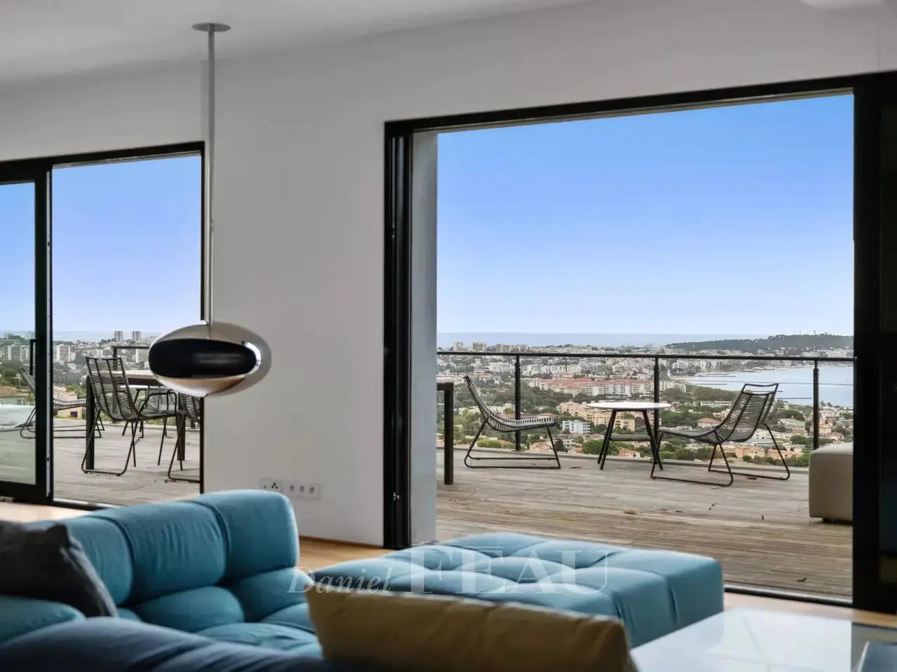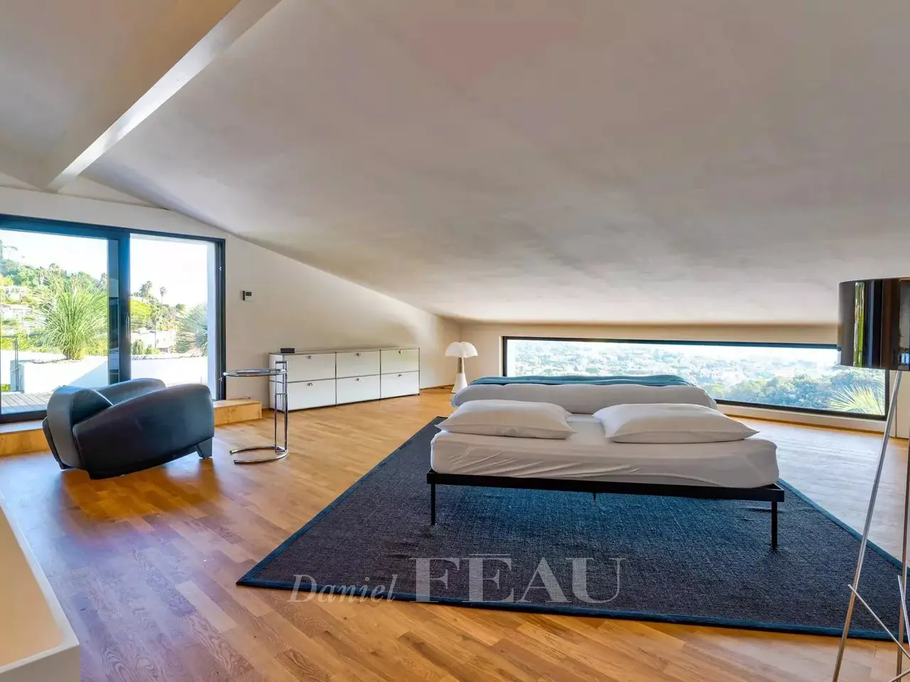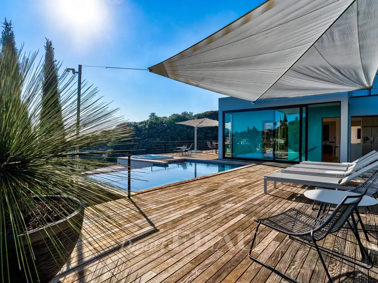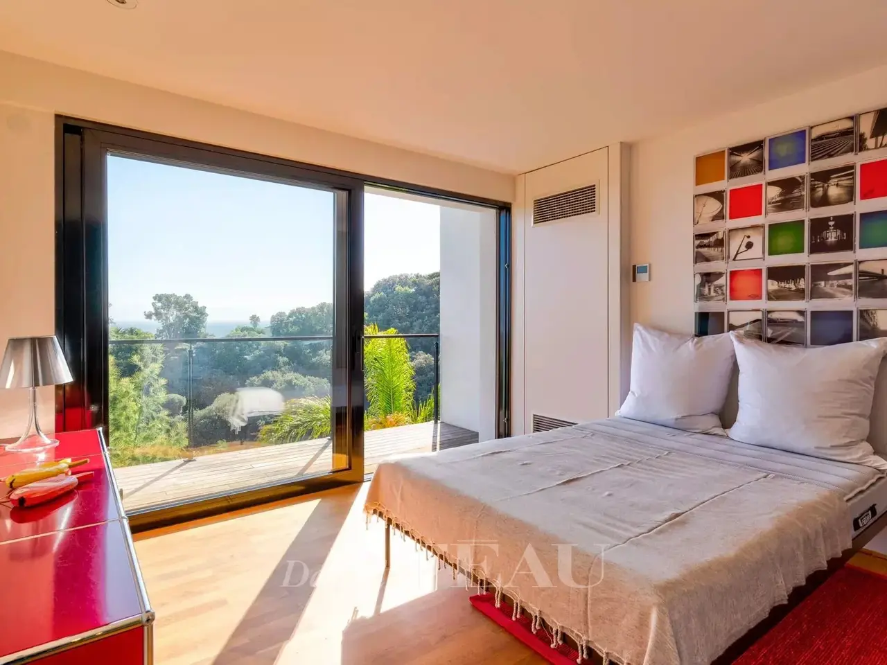 This architect-designed property set in 1537 sqm of grounds facing the sea is on the heights of Golfe-Juan, 5 minutes from the beaches, the shops and the schools, and 10 minutes from Cannes and Antibes. Commanding open views, it includes spacious living/reception rooms, and six bedrooms including a master suite benefiting from terraces. Air conditioning, parquet flooring. With a swimming pool and a jacuzzi hidden from view and enjoying a sea view, as well as a carport benefiting from a lift accessing the main house.