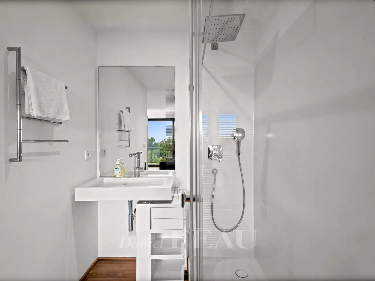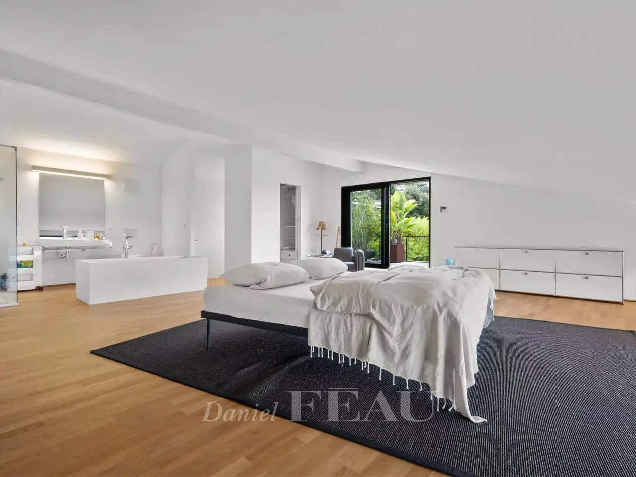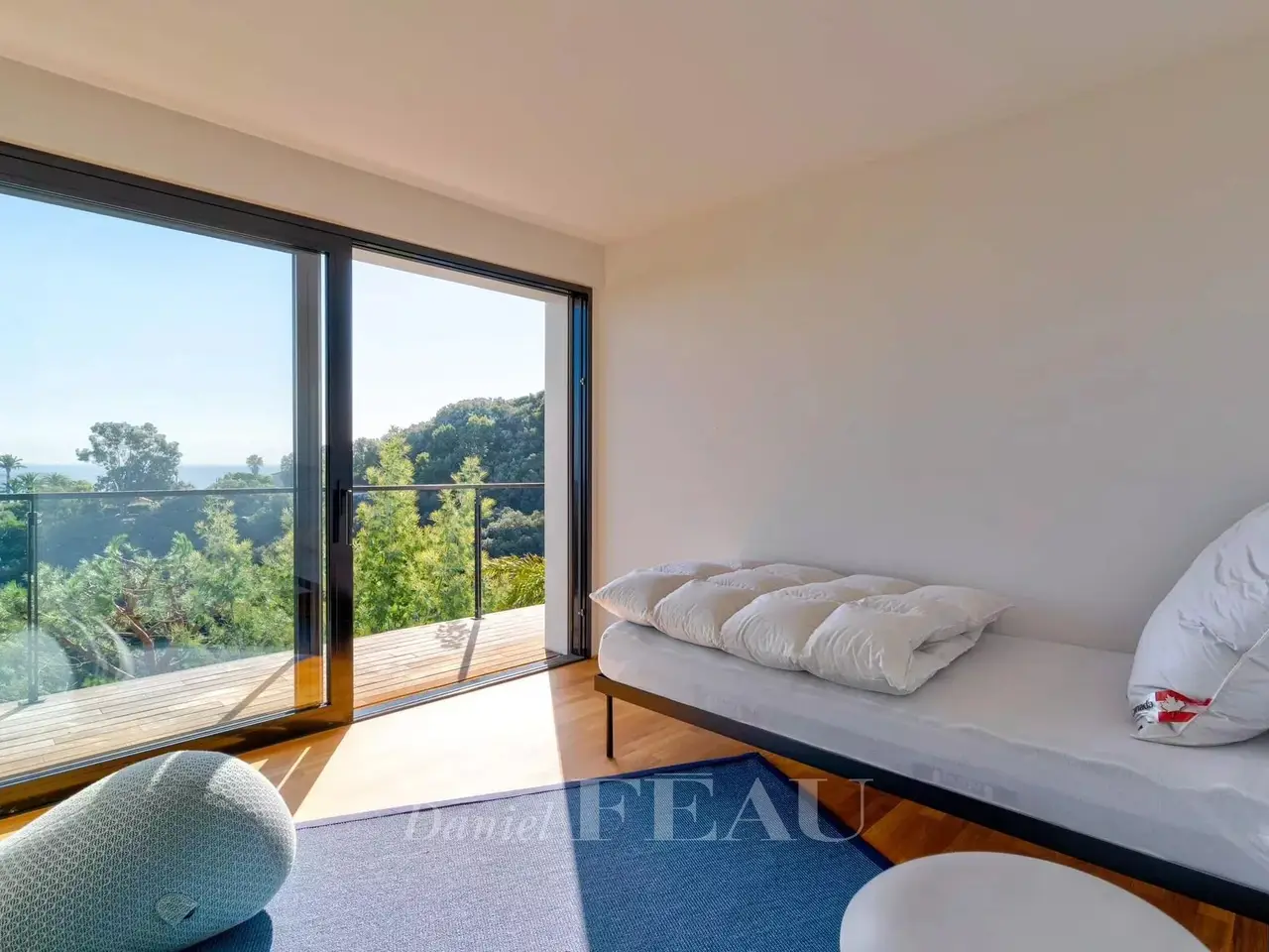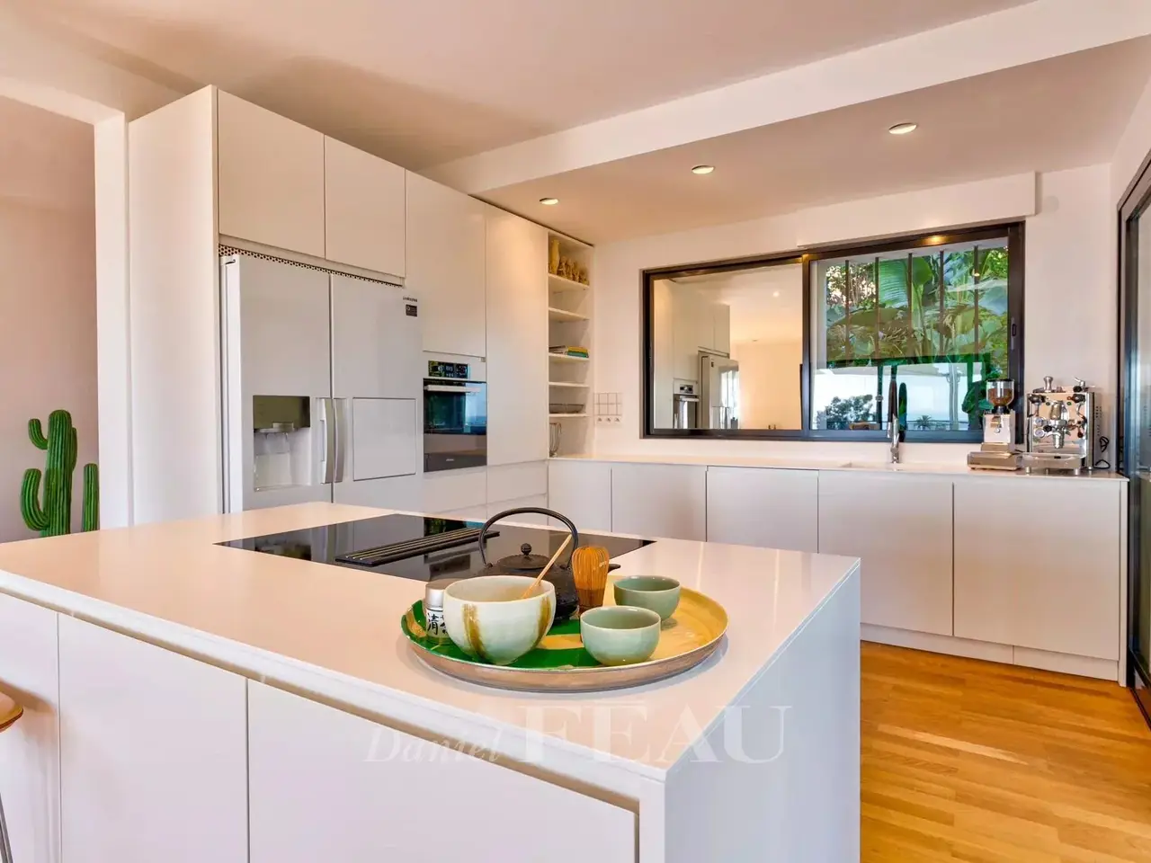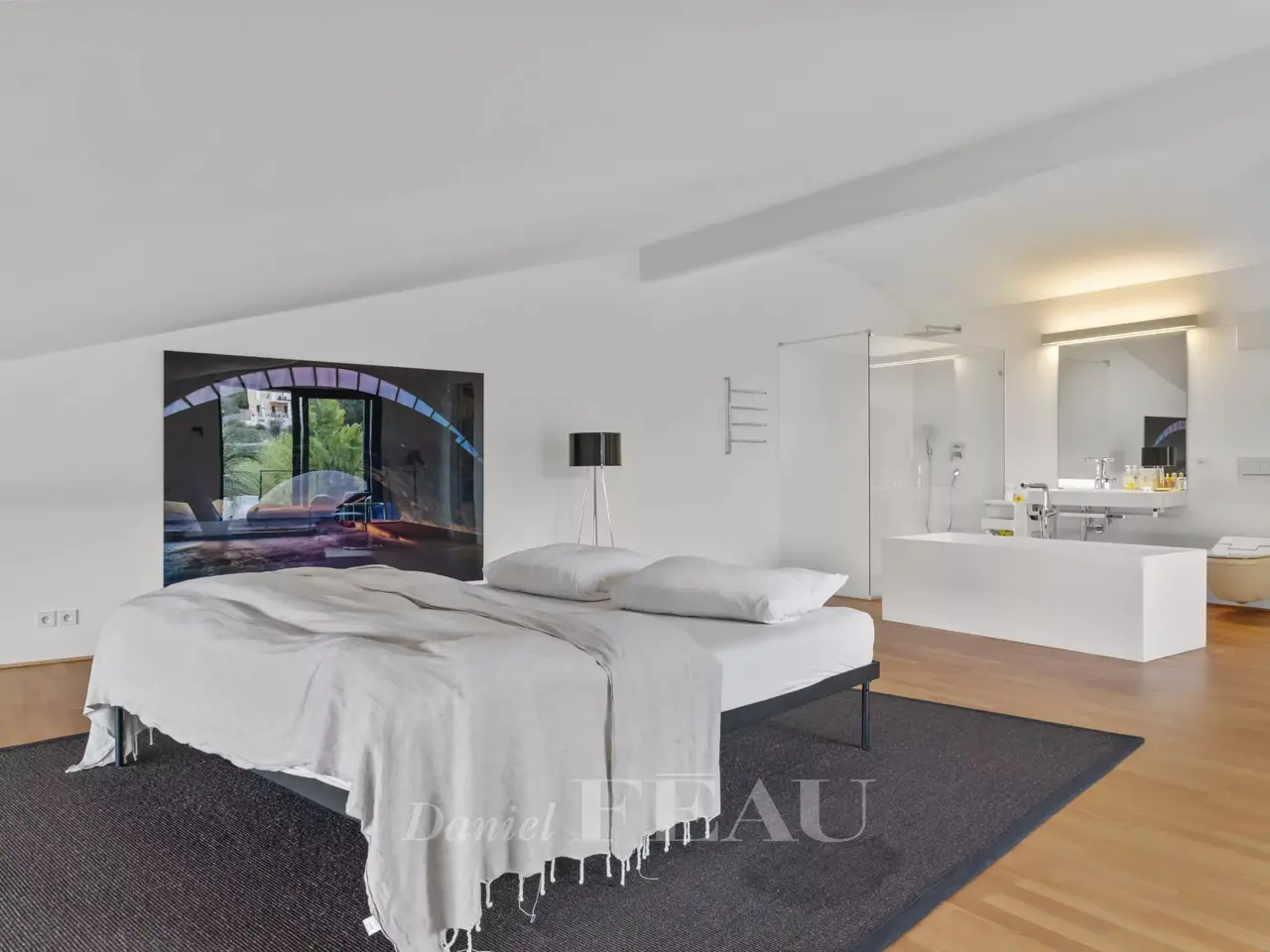 This architect-designed property set in 1537 sqm of grounds facing the sea is on the heights of Golfe-Juan, 5 minutes from the beaches, the shops and the schools, and 10 minutes from Cannes and Antibes. Commanding open views, it includes spacious living/reception rooms, and six bedrooms including a master suite benefiting from terraces. Air conditioning, parquet flooring. With a swimming pool and a jacuzzi hidden from view and enjoying a sea view, as well as a carport benefiting from a lift accessing the main house.
