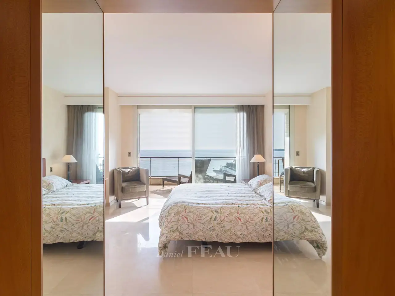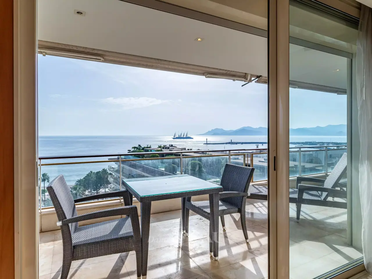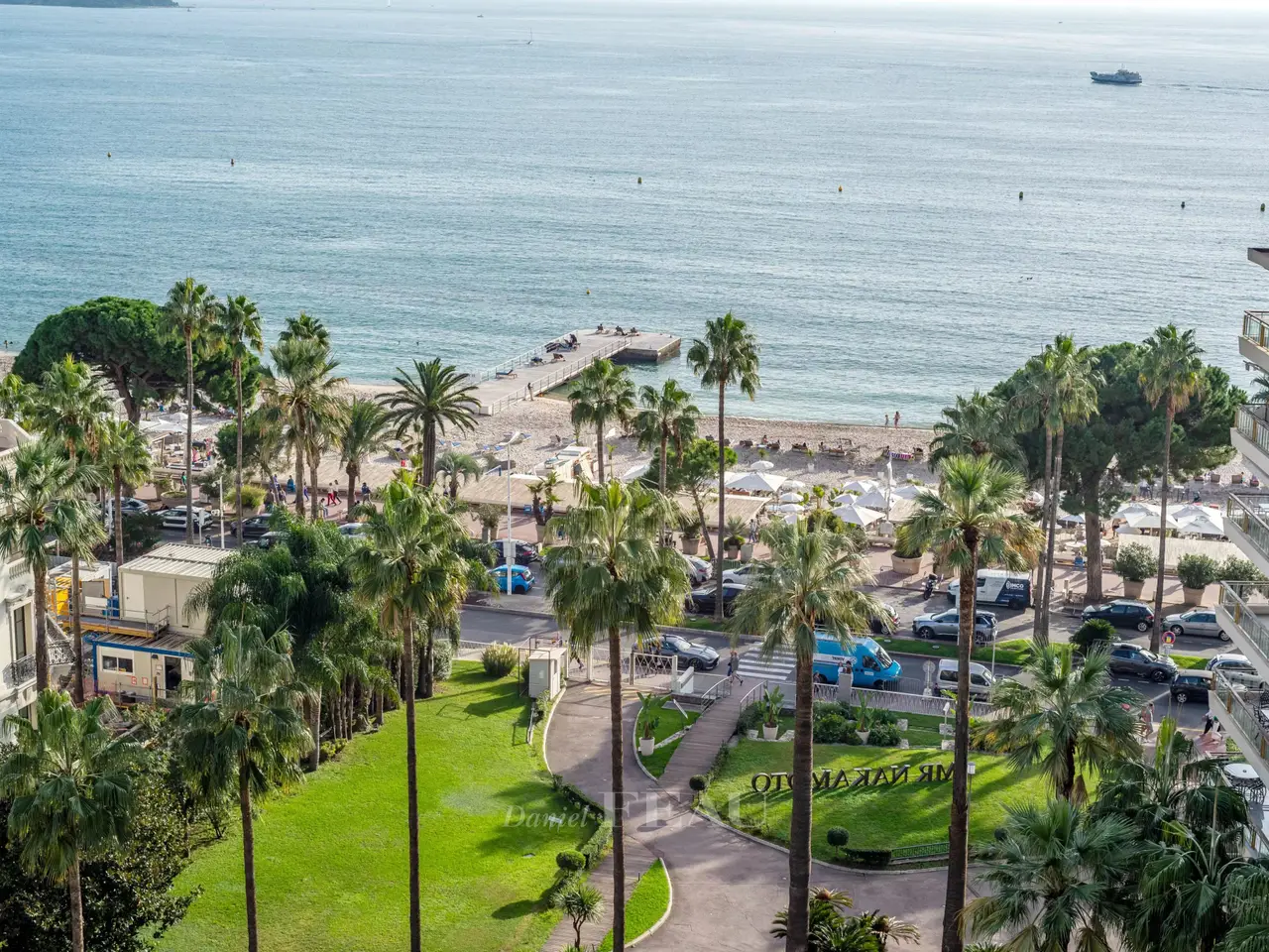 This magnificent apartment is on the 8th floor of a renowned residence located just a stone’s throw from the Palais des Festivals in the heart of the world-famous Croisette. South-facing, overlooking the renowned Grand Hotel’s leafy gardens and commanding a panoramic view of the Mediterranean, it offers 247.03 sqm of living space as defined by the Carrez Law and benefits from a 30 sqm terrace, a balcony, a 7 sqm maid’s bedroom and two garages. The apartment includes a near 90 sqm living/reception room, dining room and equipped kitchen, five suites (two facing the sea), and a studio apartment. With two 14 and 20 sqm garages, as well as a cellar. Units : 42