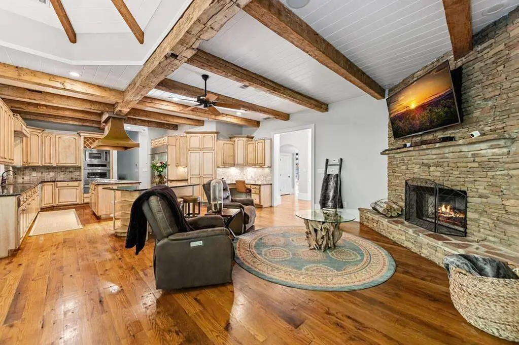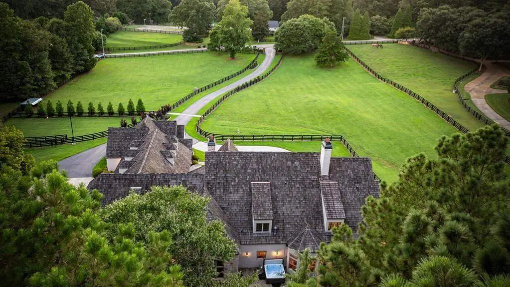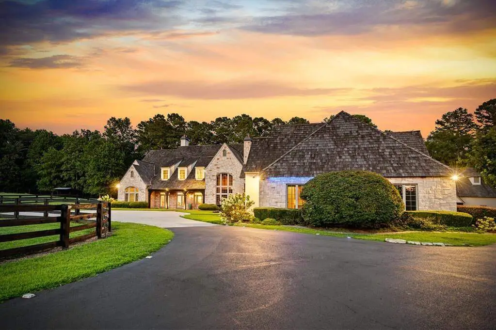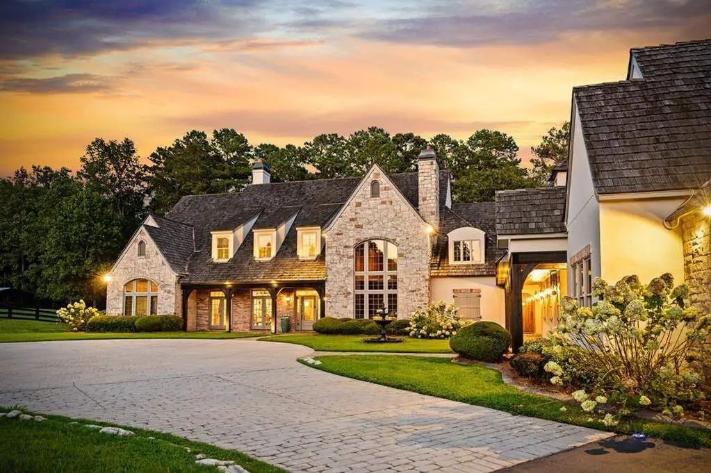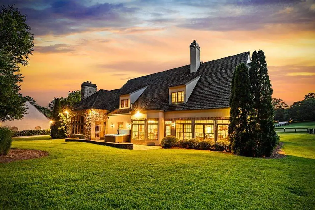 Imagine driving into your gated entry of your European Style County Estate with 4 acres of lush, manicured paddocks. After parking in one of your three-car attached garage or perhaps parking in one of your six car detached garage with RV parking in one of the stalls and washer and dryer next to the oversized custom workshop. The detached garage can be converted into stables for an equestrian estate. Upon entry of this beautiful 8,500 square foot home, you are greeted with 120-year-old hardwoods. This home is built for entertaining with a large chef's kitchen with 120-year-old wooden beams, large breakfast room with fireplace. A two-story study with custom wood paneling including ceiling and cozy fireplace. Two primary suites on the main level with three ensuite bedrooms upstairs and an attached guest apartment with separate entrance, full kitchen and laundry. The home features a 9-seat movie theater, wine cellar and tasting area, workout room, sauna room, large 4 season room with custom wood ceilings looking out on the pond. The main living room is expansive with beautify fireplace, two story custom wood ceilings and wet bar making this the perfect gathering place for your guest. The outside features a beautiful pond with waterfalls, custom hen coop, hot tub and many more amenities for farm animals. The home has a separate well for irrigation and watering of farm animals making this a unique property with well and public water. This home is a smart home making lighting up the indoor and outdoor custom lighting a voice command. This amazing estate is a one of a kind, perfect for enjoying all the countryside has to offer.