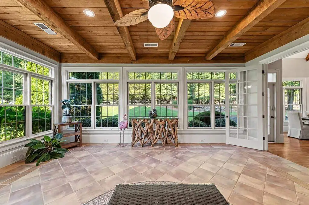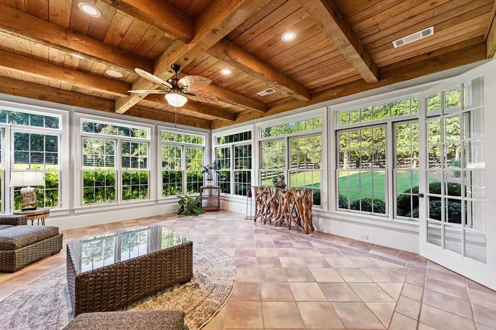 4-season room with wood ceilings