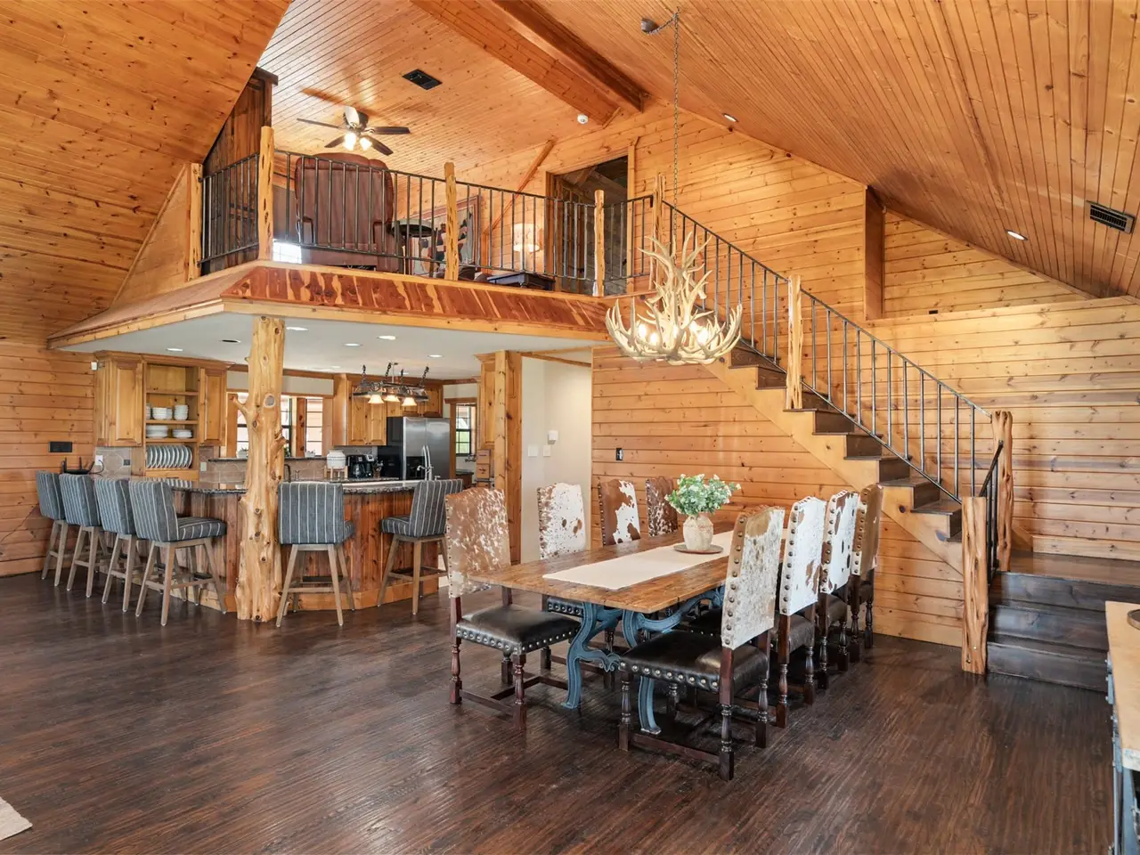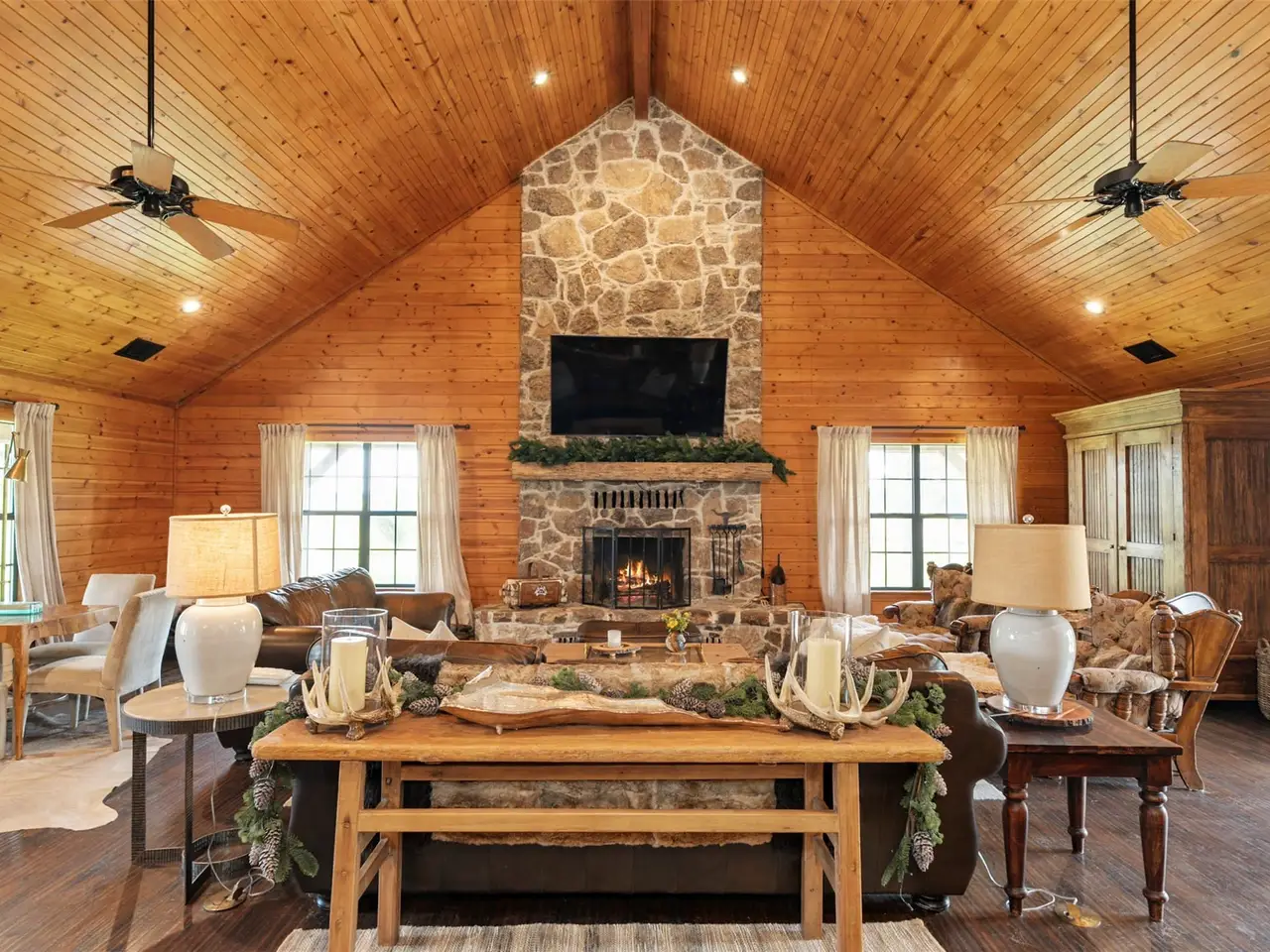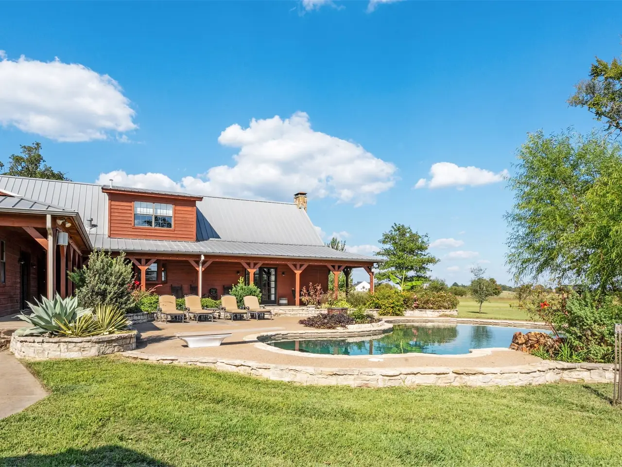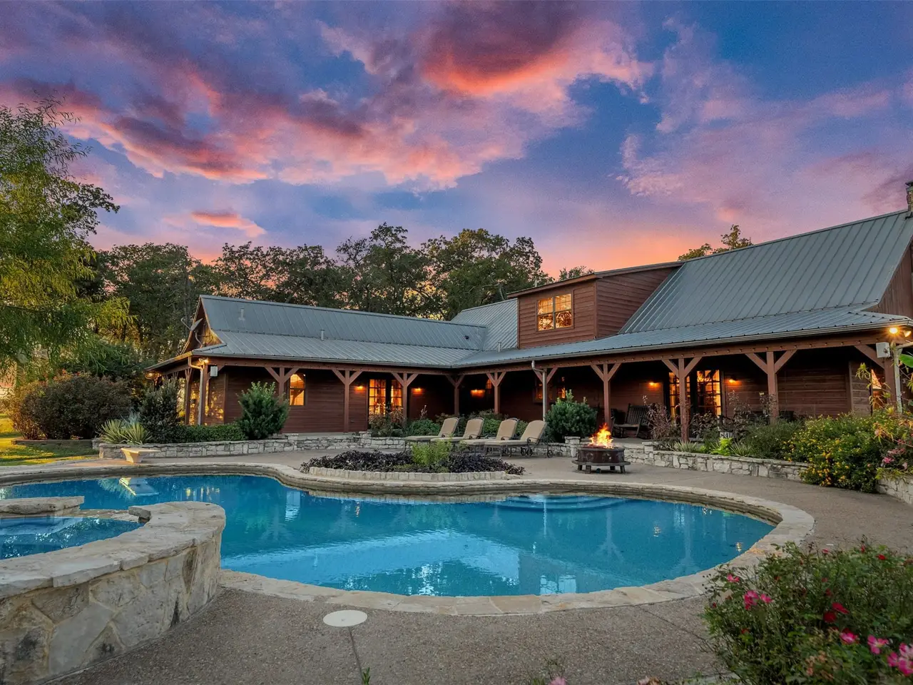 Gorgeous East Texas Resort-Style Ranch located just a short drive from DFW, offering the perfect blend of luxury, comfort, and country charm. Situated on 52 acres with mature trees, coastal hay pastures, and 3 ponds, this resort-style ranch is ideal as a family dream home or a spectacular weekend retreat. The custom-built main home features 4 bedrooms, 2 full baths with walk-in showers, and 2 half baths, totaling approximately 3,696 sq ft. The grand room welcomes you with a vaulted ceiling, large gas stone fireplace, and an abundance of natural light. The well-designed kitchen offers granite countertops, bar-top seating, an island with prep sink, top of the line appliances, and a mudroom-laundry area conveniently located nearby. Upstairs, a spacious entertainment area with wet bar and separate den overlooks the grand room below. Enjoy quiet mornings and stunning evening sunsets from one of the swings on the wraparound porch, or relax in your outdoor oasis featuring a pool, spa, grilling area, and freestanding fireplace perfect for entertaining. Just a short walk from the main home, the 1,271 sq ft guest house offers 1 bedroom, 1 bath, kitchen, dining, living area, utility room, and fireplace, all with high-end finish-outs and a private patio. Attached to the guest home is a 2,560 sq ft workshop complete with a half bath, providing endless options for hobbies, gatherings, or RV storage. This one-of-a-kind East Texas ranch offers the ultimate in resort-style living where elegance meets country tranquility.