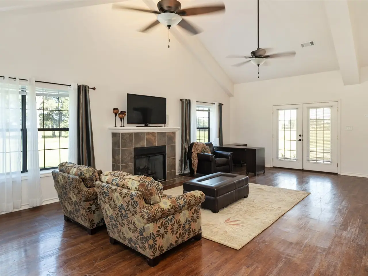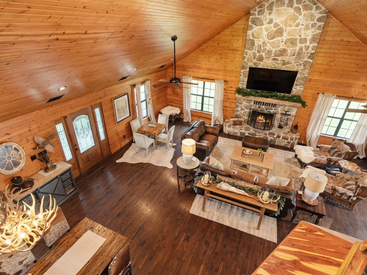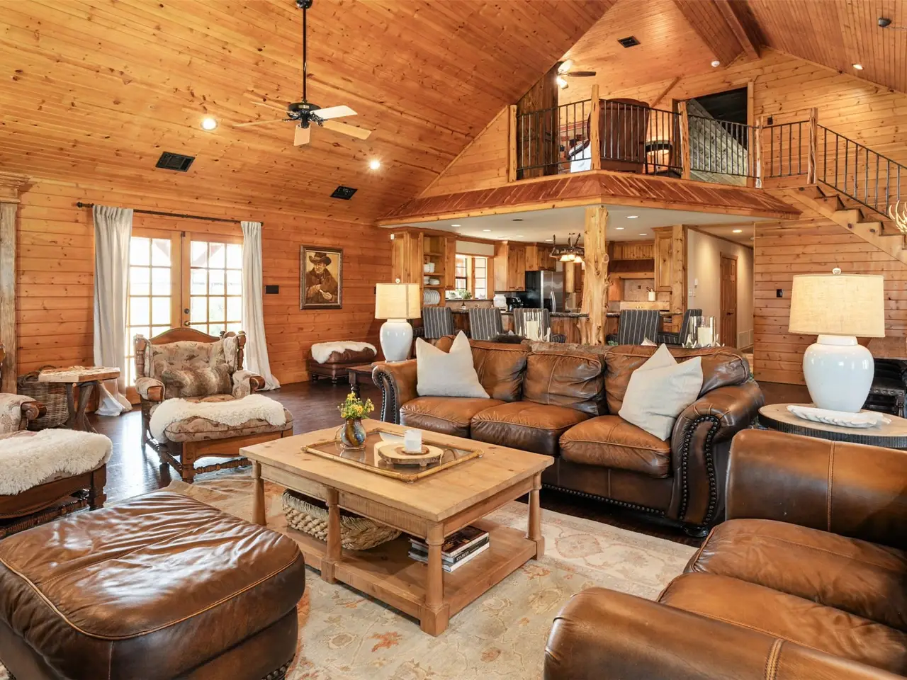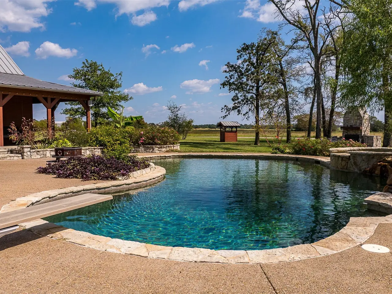 Gorgeous East Texas Resort-Style Ranch located just a short drive from DFW, offering the perfect blend of luxury, comfort, and country charm. Situated on 52 acres with mature trees, coastal hay pastures, and 3 ponds, this resort-style ranch is ideal as a family dream home or a spectacular weekend retreat. The custom-built main home features 4 bedrooms, 2 full baths with walk-in showers, and 2 half baths, totaling approximately 3,696 sq ft. The grand room welcomes you with a vaulted ceiling, large gas stone fireplace, and an abundance of natural light. The well-designed kitchen offers granite countertops, bar-top seating, an island with prep sink, top of the line appliances, and a mudroom-laundry area conveniently located nearby. Upstairs, a spacious entertainment area with wet bar and separate den overlooks the grand room below. Enjoy quiet mornings and stunning evening sunsets from one of the swings on the wraparound porch, or relax in your outdoor oasis featuring a pool, spa, grilling area, and freestanding fireplace perfect for entertaining. Just a short walk from the main home, the 1,271 sq ft guest house offers 1 bedroom, 1 bath, kitchen, dining, living area, utility room, and fireplace, all with high-end finish-outs and a private patio. Attached to the guest home is a 2,560 sq ft workshop complete with a half bath, providing endless options for hobbies, gatherings, or RV storage. This one-of-a-kind East Texas ranch offers the ultimate in resort-style living where elegance meets country tranquility.