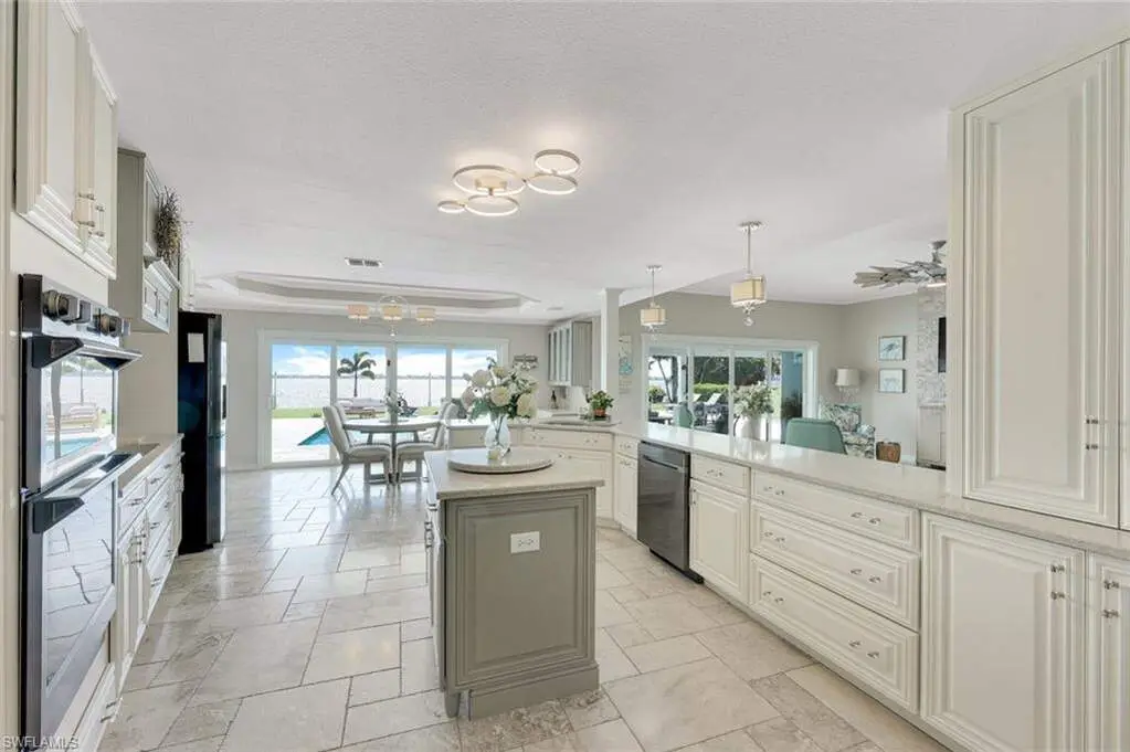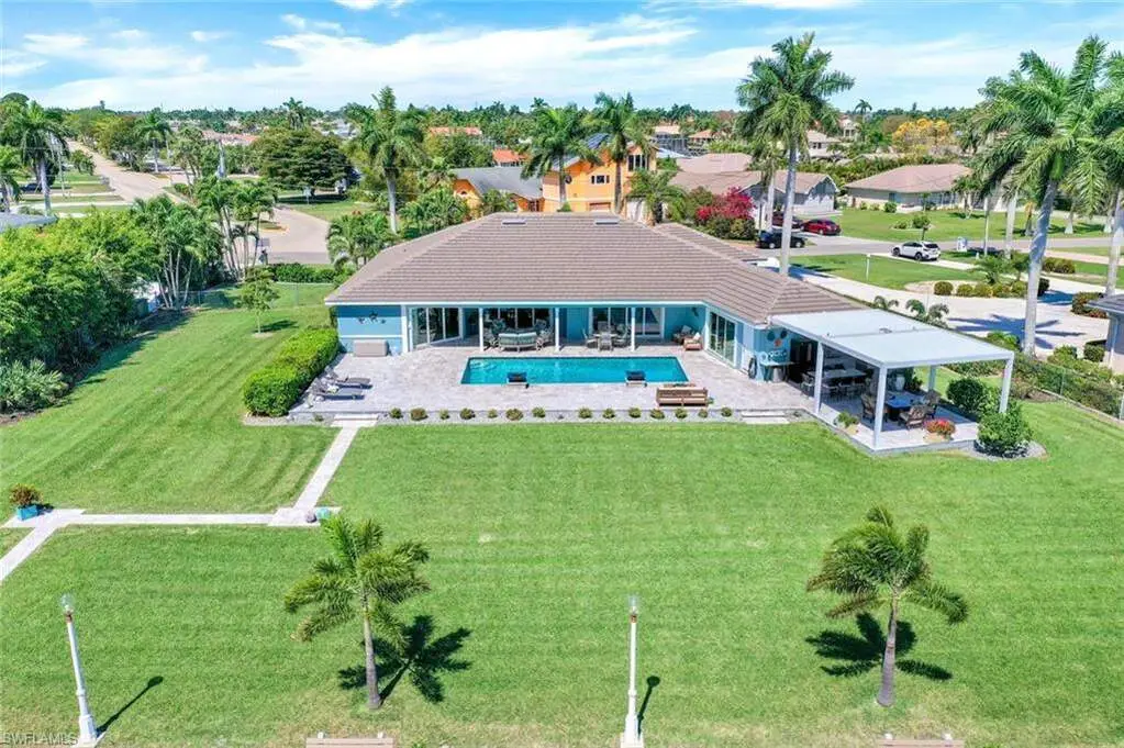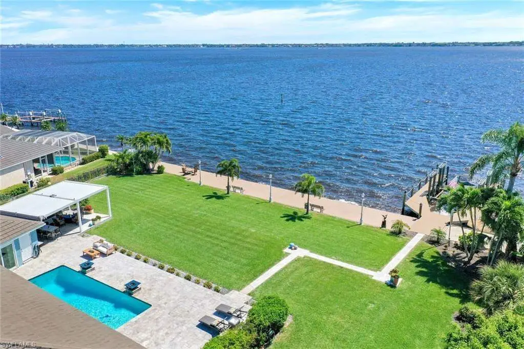 This perfect home is located on one of the largest, most spectacular riverfront lots in all of Cape Coral. This estate size lot features over 170 feet of water frontage, on 2/3 of an acre of land. The home has never flooded in any of the storms. This home was completely redesigned from top to bottom in 2019. New tile roof, new electrical panels, new impact front doors, windows and sliders. The kitchen and bathrooms were renovated to the highest standards. The living area flows together and maximizes the views and the natural light. All appliances are top of the line, Wi-Fi enabled. The flooring is beautiful marble tile throughout. Everyone will appreciate the custom finishes and high-end touches throughout this house. The outdoor space is incredible! There is a dedicated pool bath for outdoor entertaining. The pool deck area matches the indoor tile for continuity of design and there are fire features and waterfalls at the poolside. You'll find numerous spots to soak up the sun and there is a covered pergola with a rain sensor roof which opens and closes automatically. The huge dock features a 40,000 lb. lift & composite decking. When it is time to unwind, grab your pina colada and head to the sandy beach to relax! The owner will offer financing to a qualified buyer.