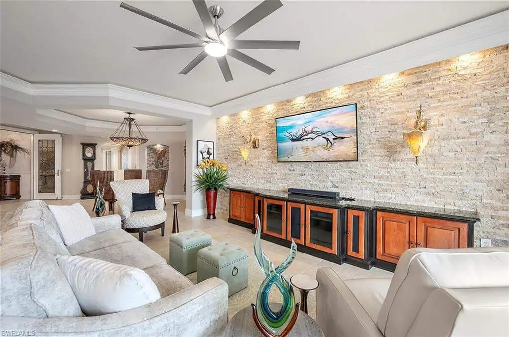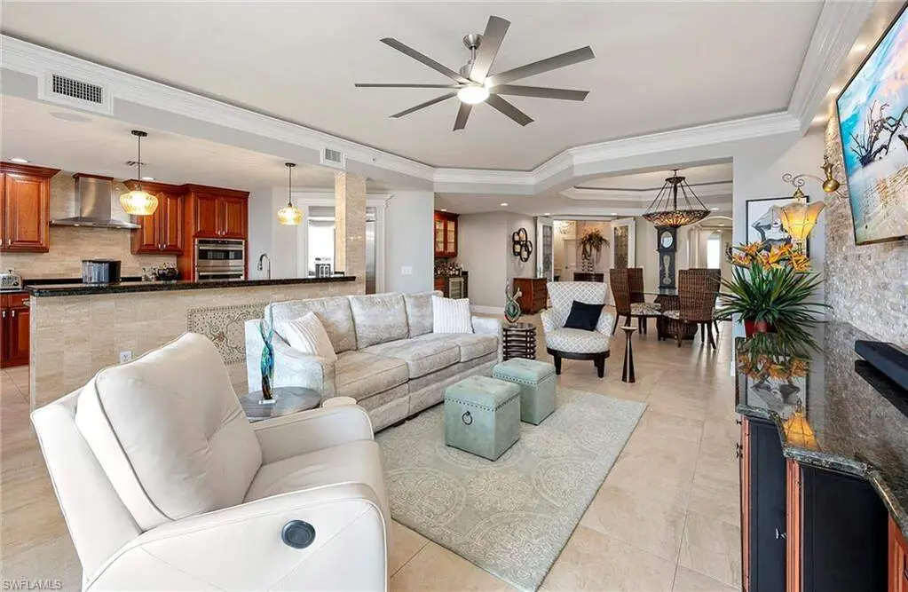 Tarpon Point - the finest luxury condo living in Cape Coral! From the moment you drive through the gates, you will be impressed by this development. This is the perfect location for someone who wants to really enjoy where they live and not need to leave for entertainment. Everything is right in your backyard! From the secured lobby, you will enter the semi-private secured elevator which opens right into your unit. Enter the custom leaded glass doors to an amazing bright and open condo. The views are spectacular, watch the sunrise from the rear lanai and the sunset from the front veranda. Quality upgrades throughout the unit, crown molding, custom lighting and sound systems, designer wall coverings and window treatments. All bedrooms have their own bathroom and the owner's suite is in a completely separate wing of the unit providing complete privacy even when you have guests. No expense has been spared throughout. The features are too numerous to list-please see attached features list for all of the technical and electronic upgrades not found in most other units. The unit comes with everything included with the exception of some personal items. Don't wait to come and live the dream.