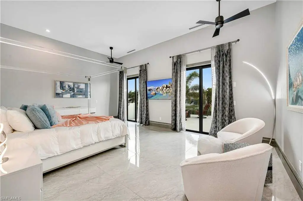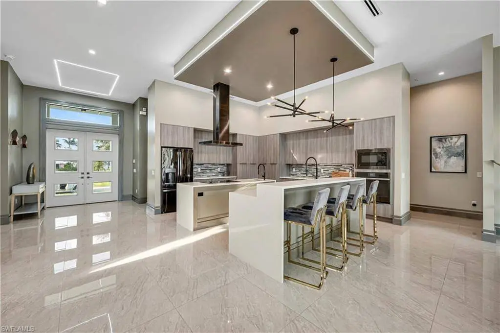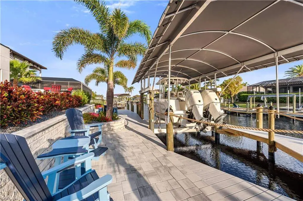 Gulf Access Waterfront Masterpiece in the Esteemed Yacht Club Neighborhood. This exquisite waterfront sanctuary, built in 2021, is a rare blend of modern luxury and coastal charm, offering an unparalleled living experience in the heart of the coveted Yacht Club neighborhood. Designed to impress, this Gulf-access residence boasts an open-concept floor plan, soaring 13-foot coffered ceilings, and an abundance of natural light that accentuates the home's architectural grandeur. With 3 spacious bedrooms plus a den, every space is thoughtfully curated for comfort and style. The primary suite is a private retreat, offering breathtaking water views, a cozy sitting area, and an elegant spa-inspired bath complete with floating vanities, a freestanding soaking tub, and an expansive walk-in shower. Two additional guest bedrooms open directly onto a private sunrise deck, the perfect place to start your day with coffee and serene water views. Designed for the ultimate indoor-outdoor lifestyle, a wall of pocketing glass doors seamlessly connects the living space to an extraordinary outdoor retreat. The expansive lanai, adorned with coffered ceilings and designer lighting, offers a shaded sanctuary for dining and lounging. Beyond, the resort-style pool and spa create a tropical paradise, with custom water features and an extended sun shelf, perfect for soaking up the Florida sunshine. The vast hardscape, featuring beautiful pavers and tropical landscaping, enhances the grandeur of this private waterfront haven. Boating enthusiasts will revel in the newly constructed private dock and boat lift, designed for effortless access to the open waters of the Gulf of Mexico. Whether you're setting sail for a sunset cruise or fishing along the coast, this home offers the ultimate waterfront lifestyle. The spacious dock area is ideal for entertaining, with ample space for seating, water sports, and enjoying the peaceful waterfront ambiance. Additional Highlights: Gourmet kitchen with double waterfall islands, designer lighting & custom cabinetry, expansive lanai with outdoor living & dining space, Southern exposure for year-round sunlight & breathtaking views, meticulously designed outdoor living spaces with premium pavers & lush tropical landscaping. This stunning coastal masterpiece delivers the perfect balance of luxury, comfort, and outdoor living at its finest.