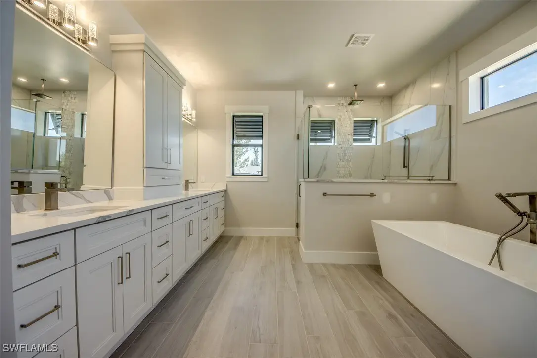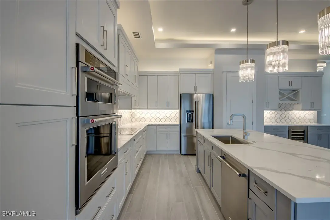 Direct Gulf Access, Luxury Lake Front Home with Gorgeous 400 Ft Intersecting Canal Views! * Brand New Construction, 2025 Built, Move-In Ready, Includes Builder's Warranty * Spacious 2535 Sq Ft, 3 Bed/3 Bath/+ Office/3 Car Garage w/Epoxy Coated Flooring * Heated Salt-Water Pool & Spa w/ Panoramic Views; Oversized Lanai w/Wall to Wall High Impact Sliders * Gourmet Kitchen w/Upgraded SS Appliances/ Quartz Countertops/Designer Backsplash & Two-Tone Cabinetry * Wine Bar w/Beverage Fridge, Under/Over Cabinet Lighting * Tray Ceilings w/Structured Rope Lighting * Porcelain Tile Flooring & Shower Surrounds, Designer Lighting/Fans Throughout * 8 Ft Interior/Exterior Doors & Sliders, High Impact Windows & Doors * Paver Drive & Walkways, Floratam Sod, Mature Landscaping W/Multiple Royal Palms, Sprinkler System * Prewired for Cable/Internet, Plumbing/Electric for Outdoor Kitchen, Alarm System, Wi Fi Extenders * Pentair Pool Equipment w/Remote & App, Concrete Underlay for Pool/Deck Pavers * 50GAL Water Heater, Concrete Tile Roof