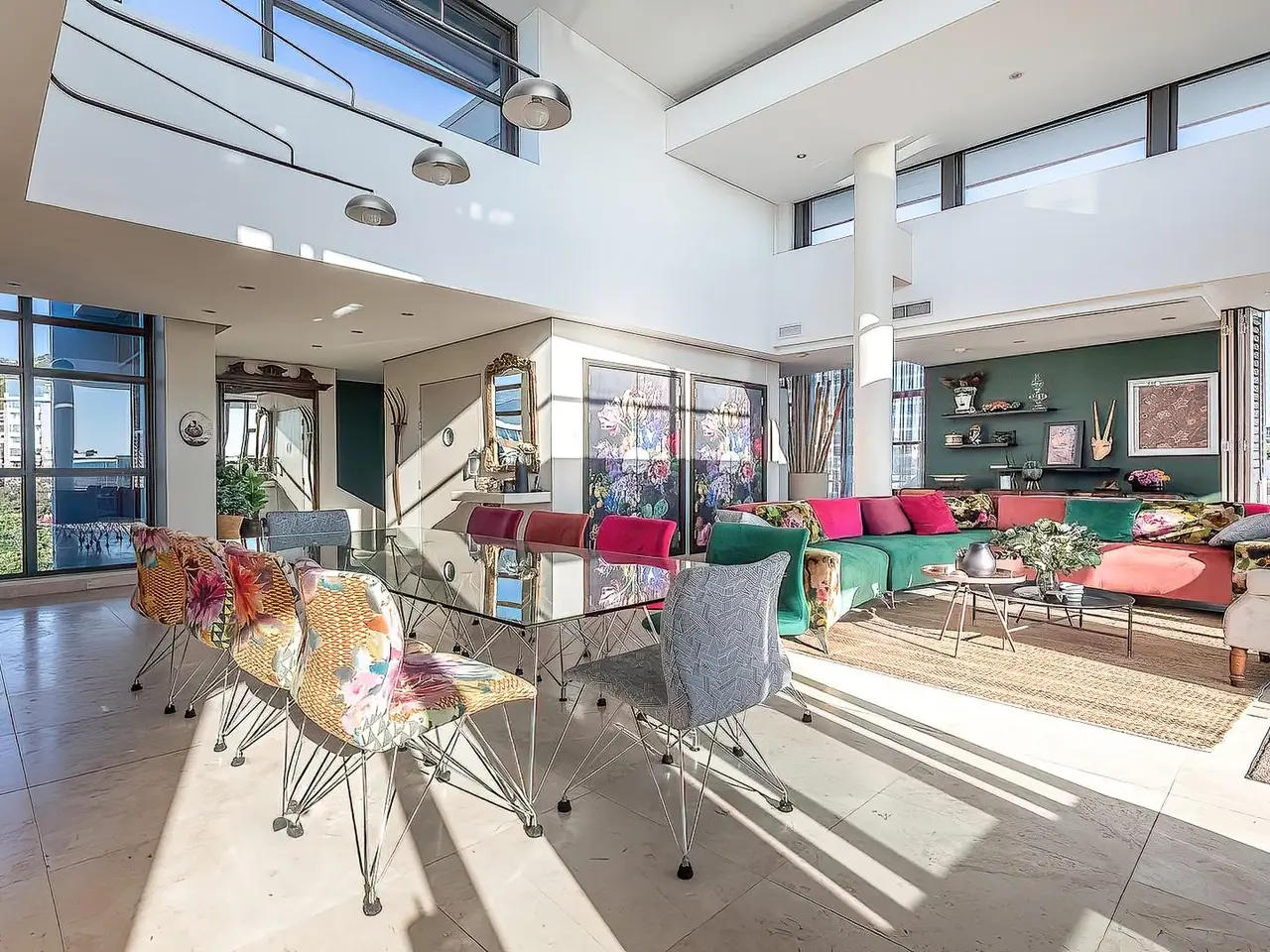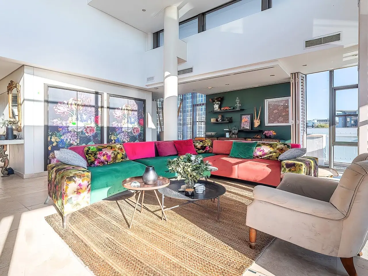 Triple-volume ceilings with dramatic architectural presence