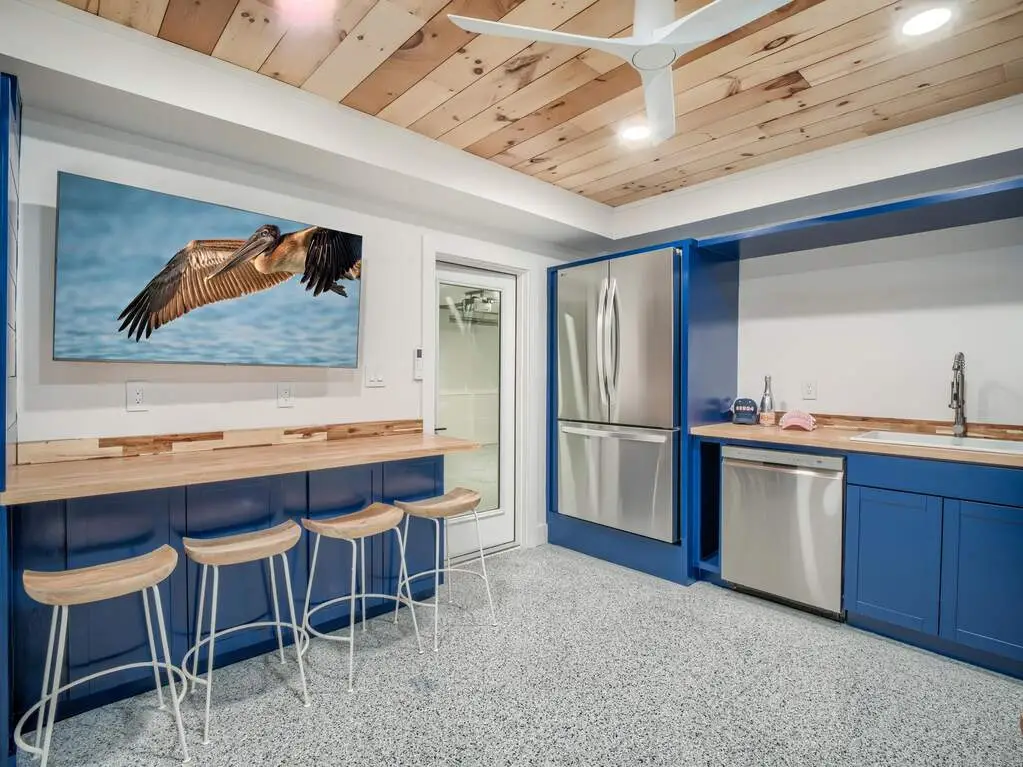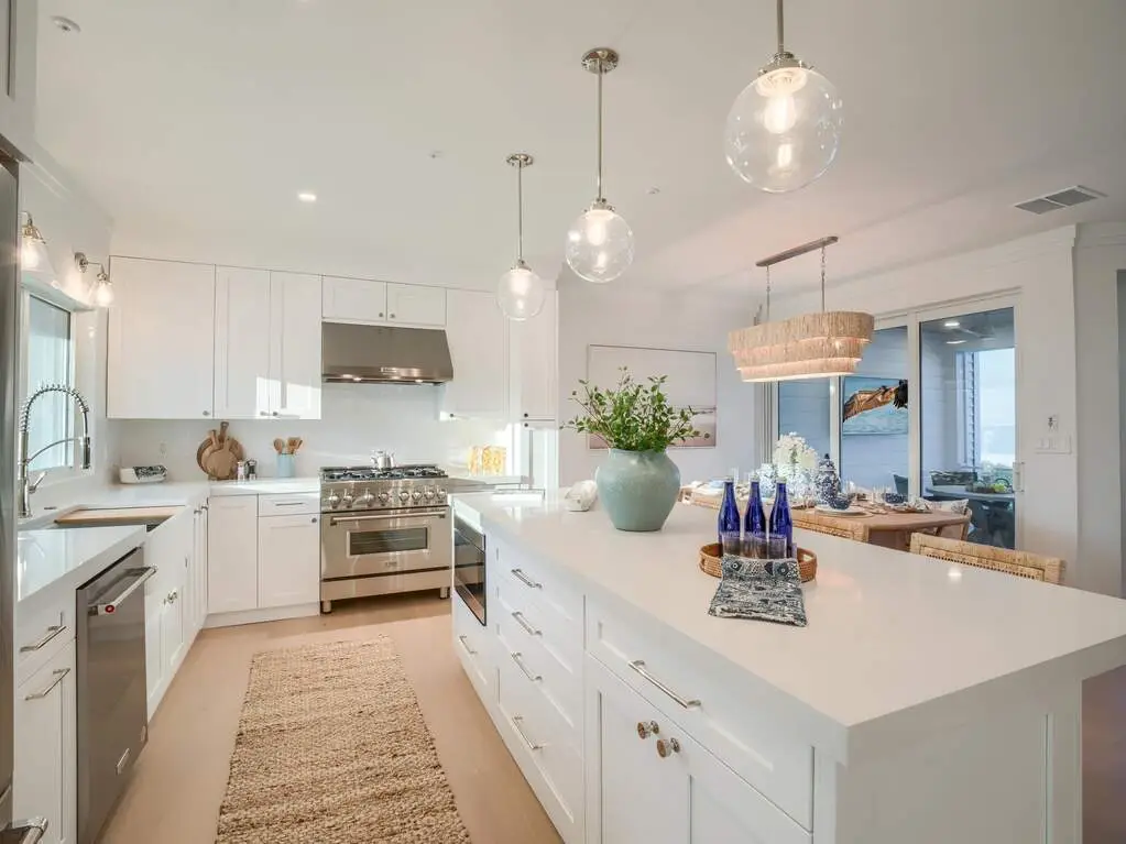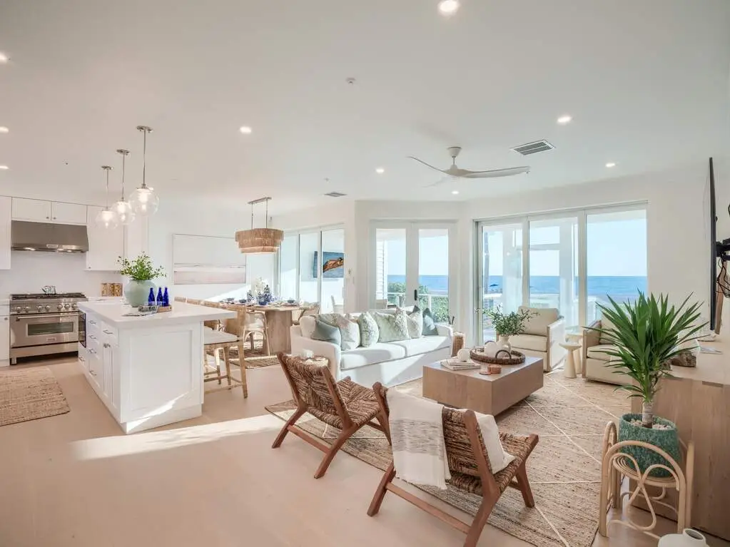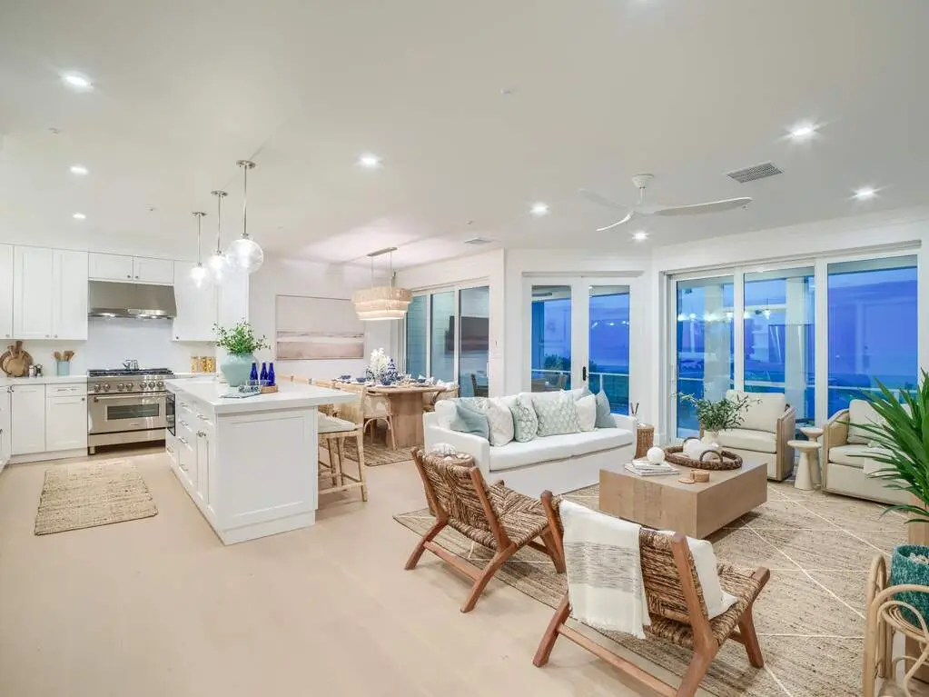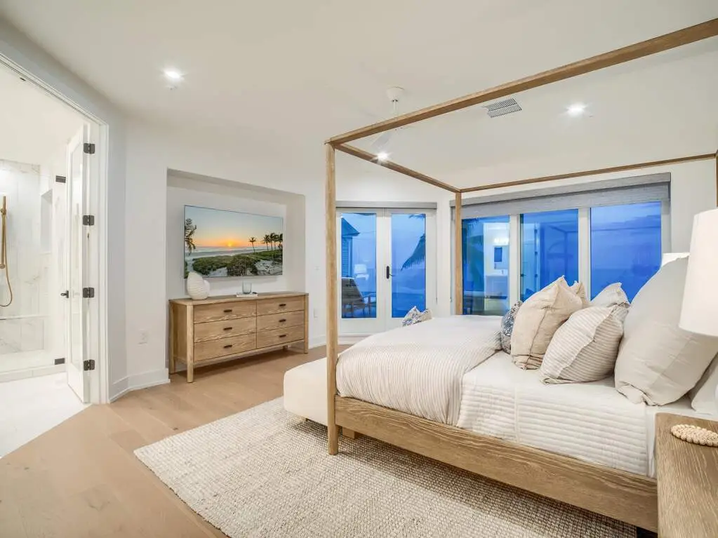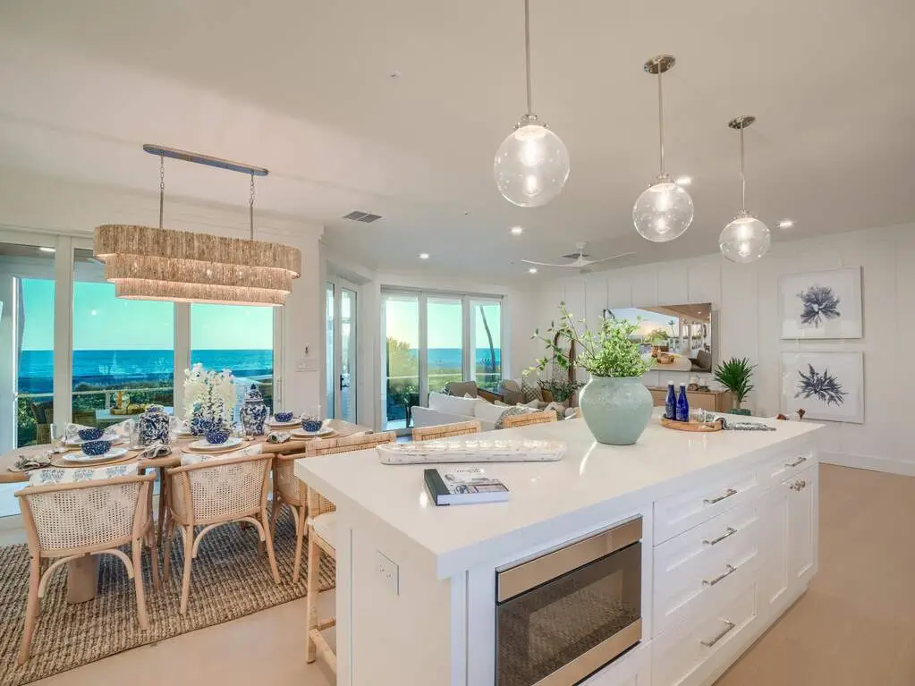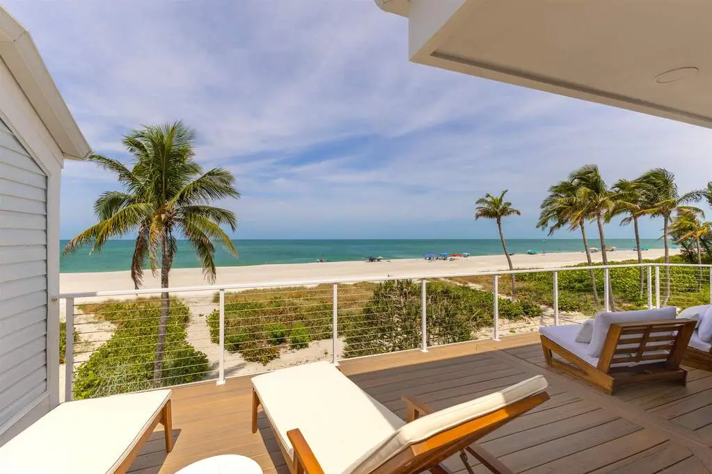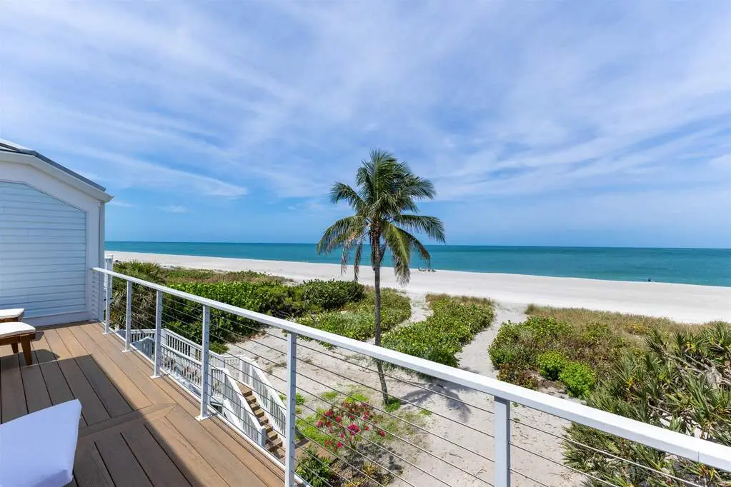 Enjoy immaculate Gulf and sunset views from this beautifully elevated and fully furnished 3-bedroom + entertainment room, 3.5-bath Sandrift residence located within the exclusive gates of South Seas Resort. Thoughtfully reimagined and masterfully upgraded, this home offers the perfect blend of luxury, comfort, and privacy in a low-density community setting. Step inside to discover a professionally designed coastal interior featuring wide-plank white oak flooring, custom board and batten accents, and carefully curated furnishings that create a refined, relaxed ambiance. The chef's kitchen is a showstopper, equipped with premium appliances, 2" thick Quartz countertops, handcrafted wood cabinetry, a wine/beverage bar, and an oversized farmhouse sink-highlighted by gas cooking for the culinary enthusiast. Each of the three spacious bedrooms is en-suite and offers stunning Gulf-front views, creating serene retreats for family and guests alike. The 2024 renovation brought significant upgrades throughout the home, including new plumbing, electrical, windows, decking, and a new roof-ensuring peace of mind and modern convenience. Outdoor living is elevated with multiple decks including a screened-in patio, a sunrise balcony with partial bay views, and an expansive upper sunset deck featuring panoramic Gulf views and sleek no-show cable railings. Additional highlights include a climate-controlled storage/entertainment room, a two-car climate-controlled garage with epoxy flooring, a separate back garage for beach gear, and a refreshing outdoor shower. This exceptional property offers the rare opportunity to enjoy resort-style living with all the comforts of a private home.