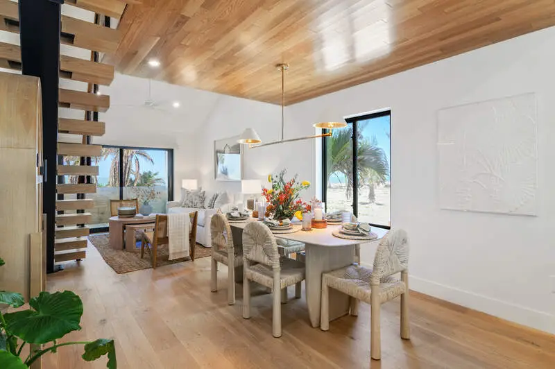 Coastal Elegance along Captiva's coastline, where luxury and contemporary blend together seamlessly. A one-of-a-kind, fully renovated 3-Bedroom, 3-Bathroom duplex Beach Cottage, expertly reimagined by a professional interior designer to exude sophistication and comfort. Fully furnished with curated, upscale decor. Step into the heart of the home-a beautifully curated kitchen featuring Vadara Sereno Quartz countertops, high-end smart appliances with an integrated refrigerator and dishwasher, hidden coffee nook, and custom cabinetry with polished nickel hardware. The gulf-front living and dining areas flow effortlessly, with a dining space highlighted by wood detailing and modern lighting. Smart Frame TVs throughout offer an immersive entertainment experience. Additionally, the condo is lined with luxurious engineered hardwood flooring. Walk up the floating staircase to the versatile 3-bedroom loft featuring an upper level that extends to include extra closet space, study enclave, and flexible options for use-perfect as a cozy retreat or additional sleeping quarters with a pull-out sofa. The en-suite primary bedroom features a bathroom offering quartz countertops, signature hardware, and a floor-to-ceiling tiled walk-in shower with a seamless glass door, creating a sanctuary of relaxation. Outside, the screened lanai invites you to take in breathtaking Gulf views while offering a private stairway to the pristine sandy beaches. A rare feature of this property is the custom fitted under-home storage space that is a one-of-a-kind! Rinse off the day's adventures in the outdoor shower, beautifully fitted with navy blue mosaic tiles. Every inch of this residence has been meticulously crafted for comfort, elegance, and effortless Gulf-front living. Experience a lifestyle of unparalleled luxury in this rare Beach Cottage. Extensive feature list available.
