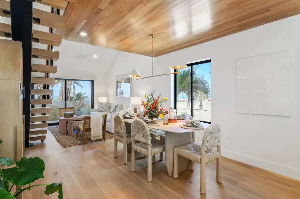 Coastal Elegance along Captiva's coastline, where luxury and contemporary blend together seamlessly. A one-of-a-kind, fully renovated 3-Bedroom, 3-Bathroom duplex Beach Cottage, expertly reimagined by a professional interior designer to exude sophistication and comfort. Fully furnished with curated, upscale decor. Step into the heart of the home-a beautifully curated kitchen featuring Vadara Sereno Quartz countertops, high-end smart appliances with an integrated refrigerator and dishwasher, hidden coffee nook, and custom cabinetry with polished nickel hardware. The Gulf-front living and dining areas flow effortlessly, with a dining space highlighted by wood detailing and modern lighting. Smart Frame TVs throughout offer an immersive entertainment experience. Additionally, the condo is lined with luxurious engineered hardwood flooring. Walk up the floating staircase to the versatile 3-bedroom loft featuring an upper level that extends to include extra closet space, study enclave, and flexible options for use-perfect as a cozy retreat or additional sleeping quarters with a pull-out sofa. The en-suite primary bedroom features a bathroom offering quartz countertops, signature hardware, and a floor-to-ceiling tiled walk-in shower with a seamless glass door, creating a sanctuary of relaxation. Outside, the screened lanai invites you to take in breathtaking Gulf views while offering a private stairway to the pristine sandy beaches. A rare feature of this property is the custom fitted under-home storage space that is a one-of-a-kind! Rinse off the day's adventures in the outdoor shower, beautifully fitted with navy blue mosaic tiles. Every inch of this residence has been meticulously crafted for comfort, elegance, and effortless Gulf-front living. Experience a lifestyle of unparalleled luxury in this rare Beach Cottage. Extensive feature list available.