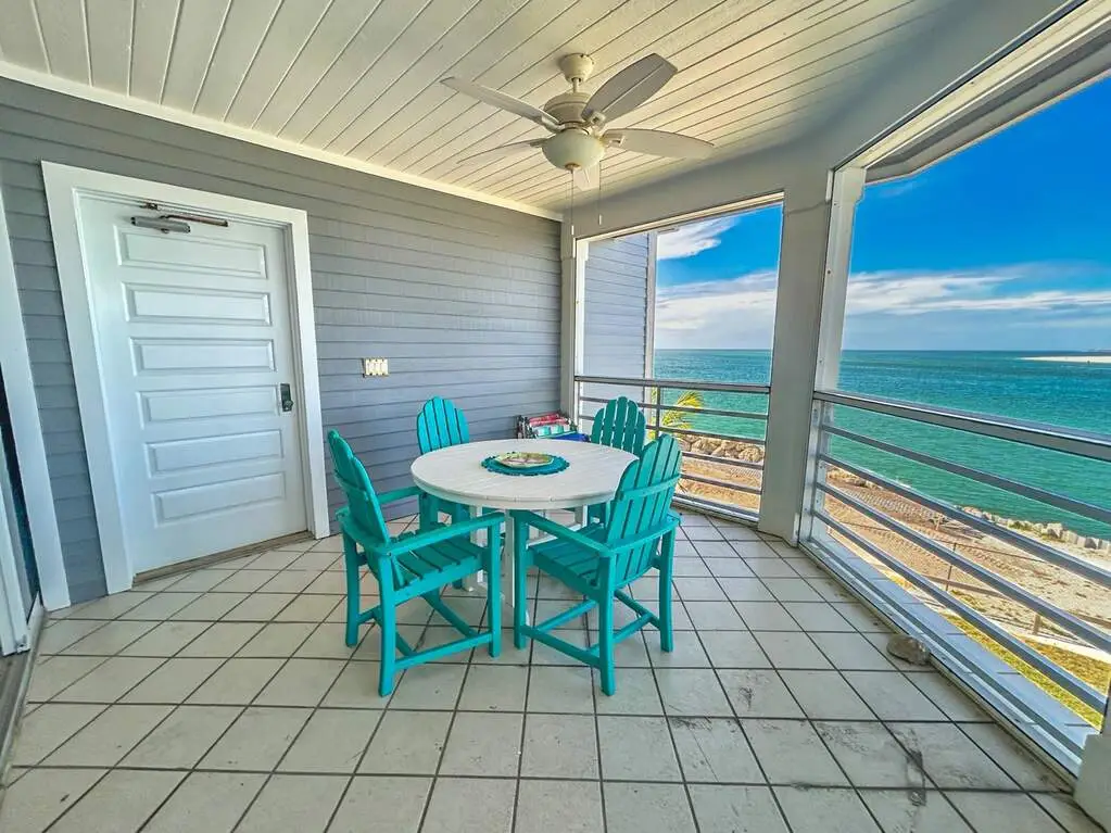 At the northern tip of Captiva, 1618 Lands End Village is situated within the "Eucalyptus" complex commanding extraordinary views across Red Fish Pass where Pine Island Sound meets the Gulf. This three-bedroom multi-level penthouse with elevator access combines spacious design, thoughtful detailing, and an exceptional island setting. The main living area opens through pocketing sliders to a generous screen lanai and balcony overlooking the channel-a perfect vantage point to take in ever-changing skies and the movement of the tides. The kitchen blends practicality and style with quartz counters, a glass decorative backsplash, farmhouse sink, and bar seating that connects naturally to the great room's open plan. Soft coastal finishes and abundant windows create a bright, easy flow that captures the surrounding water views. On this main level, an oversized guest suite features a king bed and private bath, while a second guest suite offers bunk beds ideal for family or visiting friends. The upper-level penthouse suite introduces additional storage and a private retreat complete with a morning kitchen. Its expansive ensuite bath includes a sunken tub beneath skylights, an extended vanity, and a separate walk-in shower-offering a quiet, spa-like escape.