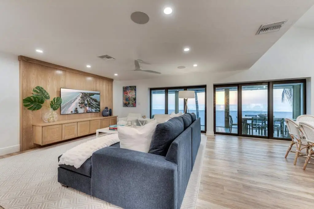 Experience unparalleled luxury and coastal elegance at 19 Beach Homes, a stunning direct Gulf-front, elevated, 3 Bedroom + Den, 3 Bathroom residence situated within on the coastline of Captiva. Completely redesigned and renovated in 2022, this breathtaking home offers top-of-the-line finishes and modern upgrades that blend seamlessly with the serene, natural beauty of its beachfront setting. Step inside to discover an open-concept living space adorned with luxury vinyl flooring, setting the tone for both durability and sophisticated charm. The custom floating staircase serves as a striking architectural centerpiece, enhancing the home's modern aesthetic while maximizing space and light. Designed for both style and functionality, the kitchen boasts custom wood cabinetry, thick quartz cabinetry, high-end stainless steel appliances, and a gas cooktop...Gulf-front cooking at its finest! The coastal-inspired furnishings create a relaxed yet refined atmosphere, perfectly complementing the breathtaking views from nearly every room. Expansive impact-resistant windows flood the home with natural light while providing peace of mind and energy efficiency. Step outside onto the composite decking, where you can unwind and take in the gentle sea breeze or enjoy direct beach access just steps away. Nestled inside the gated South Seas Resort, this exceptional property offers unmatched privacy and access to pristine Florida beaches. Whether you're looking for a serene retreat or a luxurious investment opportunity, 19 Beach Homes is a rare gem that perfectly captures the essence of Gulf-front living on Captiva Island.