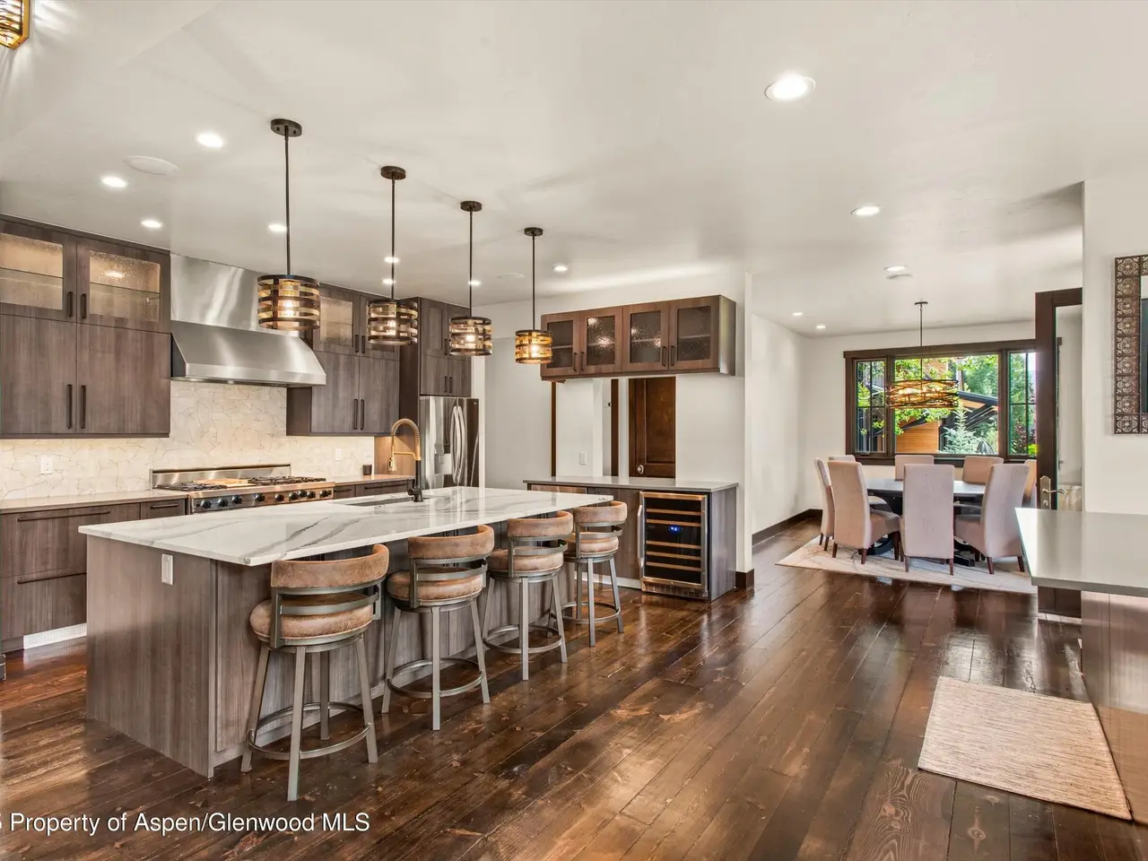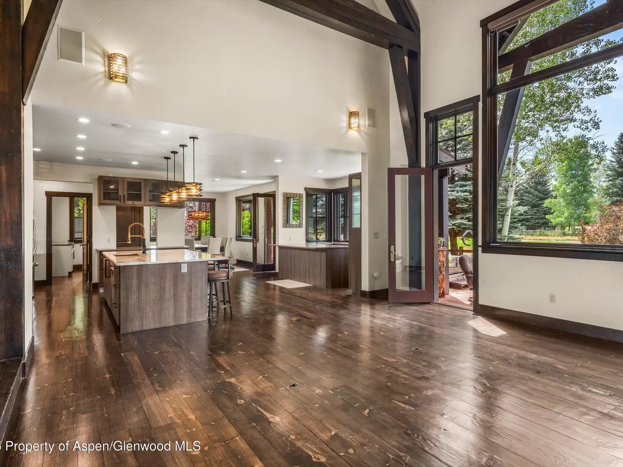 Welcome home to one of the Roaring Fork Valley's top communities, featuring an award-winning golf course, clay tennis courts, a family-friendly pool, clubhouse, a fantastic on-site restaurant, fitness center, fishing and scenic walking trails. This home blends timeless mountain charm with modern updates-think beautiful wood beams, a stacked-stone fireplace, and wood floors throughout. The recently remodeled kitchen includes a butler's pantry and a walk-behind bar, adding a fresh, contemporary touch to this classic Colorado retreat. The flexible floor plan gives you the freedom to choose where to place your primary suite, office, or game room, while offering plenty of space for entertaining large groups and cozy corners perfect for family gatherings. Step outside to a thoughtfully designed outdoor living space-ideal for entertaining-with a gas fireplace, hot tub, and a patio perfectly positioned for morning coffee or evening drinks to soak in the views of Mt. Sopris.