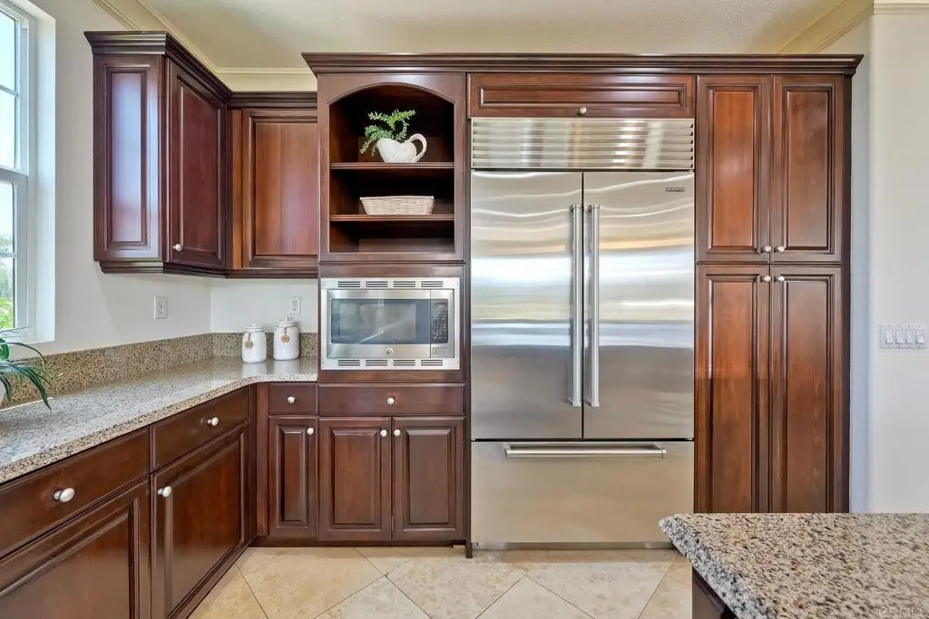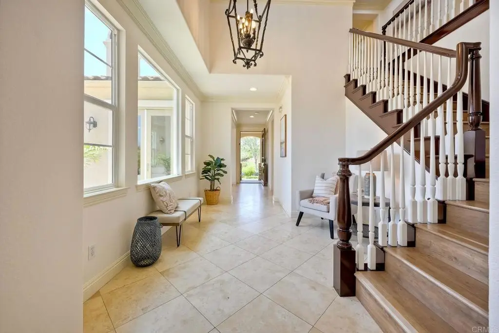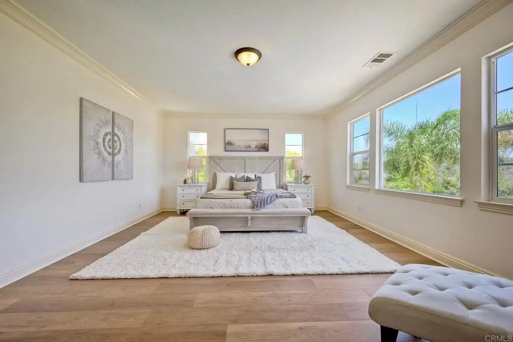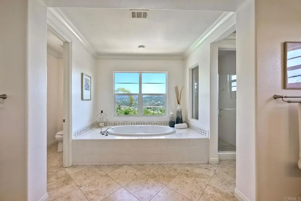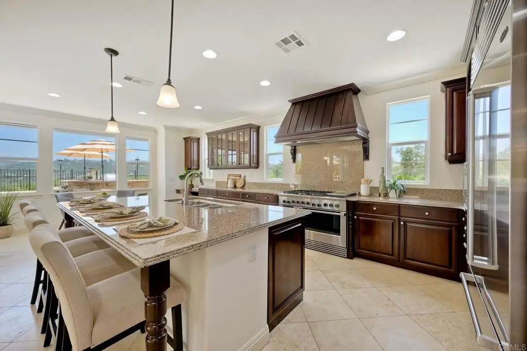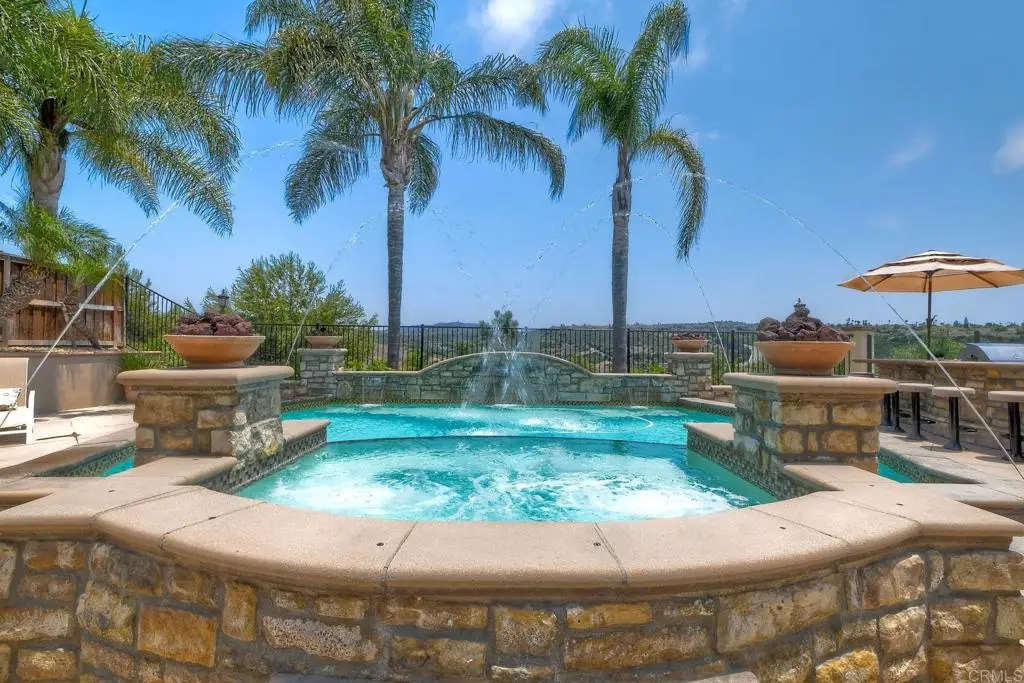 Don't Miss This Breathtaking Bressi Ranch Corner Lot Home with Views, Luxury Features, an Entertainer's Dream Backyard & PAID Solar! Inside, this stunning five-bedroom, 4.5-bath home offers soaring ceilings & expansive windows bathing the home in natural light. Step into your personal resort-style backyard, complete w/ an oversized pool & spa featuring shooting fountains, waterfalls & dramatic lava pits. The expansive outdoor kitchen seats 15--perfect for entertaining. For quieter moments, unwind in the serene courtyard around a fire w/ tranquil water features. A welcoming living room greets you upon entry w/ a cozy fireplace & French doors that open to the peaceful courtyard. Along the entry hall, you'll find the DOWNSTAIRS en-suite bedroom before arriving at the elegant dining room, which boasts a butler's pantry & a built-in wine rack. The heart of the home is the chef's kitchen, beautifully appointed w/ an oversized island & high-end appliances. It includes a Fisher & Paykel 6-burner range w/ double ovens & Sub-Zero refrigerator/freezer & rich cherry wood cabinetry w/ granite countertops. The kitchen flows seamlessly into the spacious family room w/ a raised-hearth fireplace & stunning views of the rolling hills & the resort-like backyard. Upstairs, discover a versatile built-in office nook & a generous loft--ideal for teens or tots. The oversized luxurious primary suite is a true retreat, featuring panoramic views & an absolutely dream-worthy walk-in closet. The en-suite bath includes his-&-hers vanities & a soaking tub w/ scenic views. Also upstairs are three additional bedrooms--one w/ its own en-suite & two others, generously sized. Located just minutes from Bressi Village's shops & restaurants & only a short drive to Carlsbad's beaches, this exceptional home offers a vacation lifestyle.