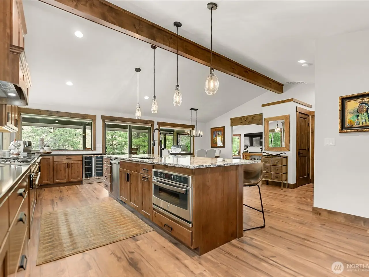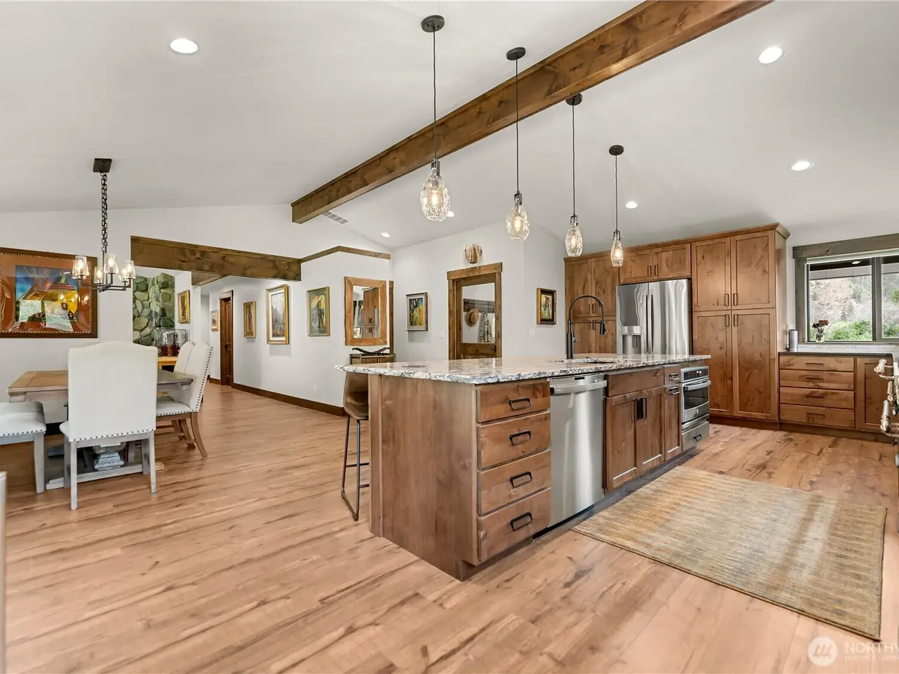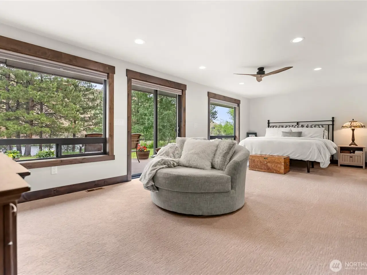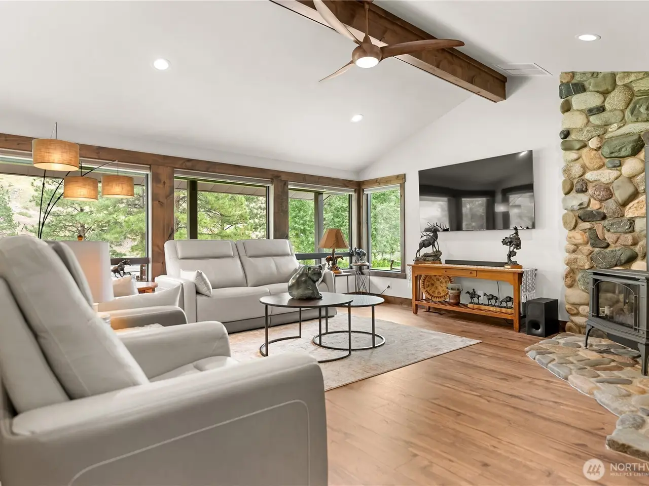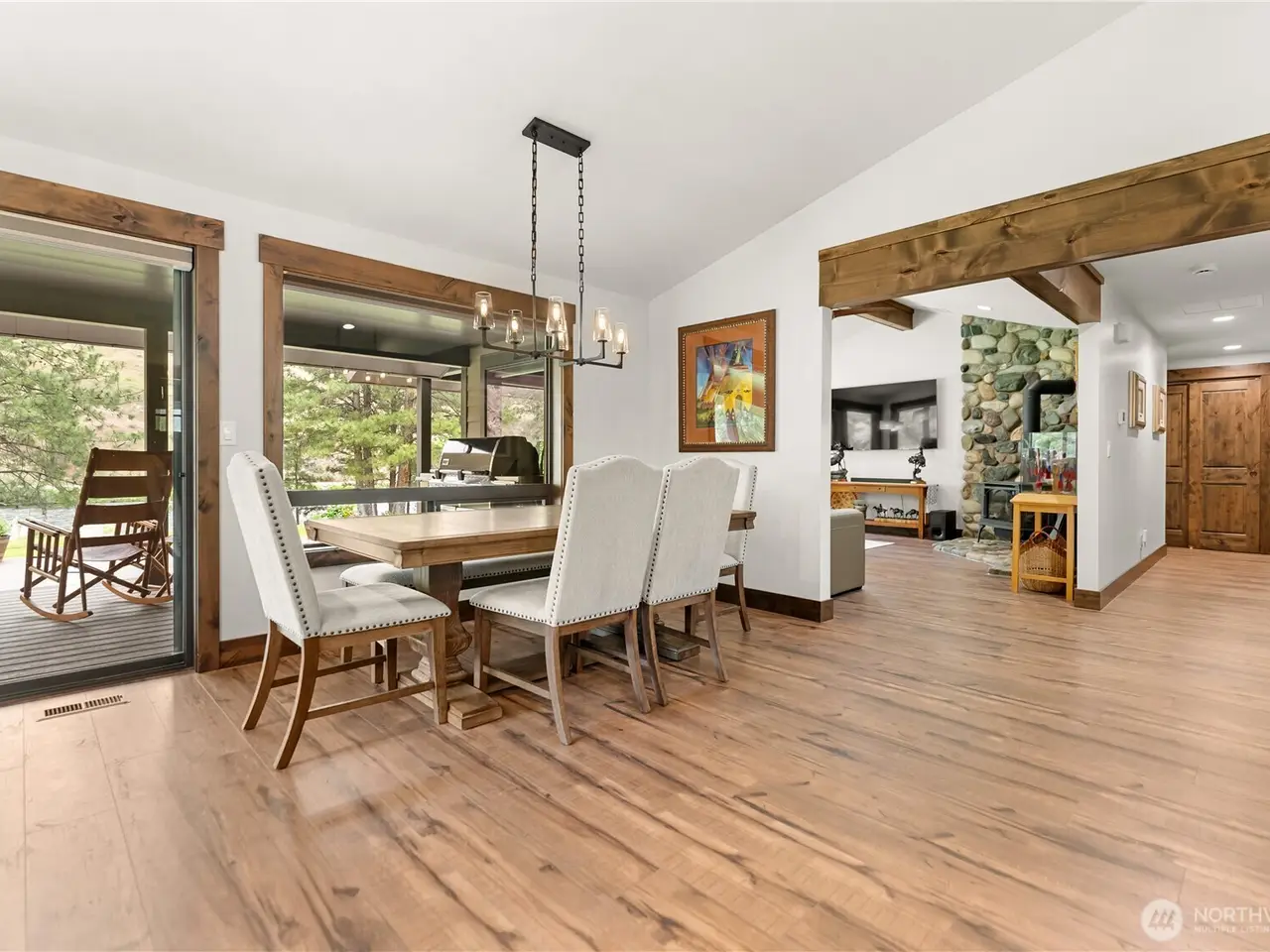 Riverfront Estate on 10.50 Acres: Delight in over 1,200 feet of waterfront featuring impressive river vistas from inside the home. The main residence and guest cabin have been elegantly updated with premium finishes; it includes 3 BD, 2 BA, and a gourmet kitchen showcasing a beautiful Italian gas range. Both the residence and guest cabin are fully furnished, making it move-in ready. The appealing guest cabin offers 2 BD, 1 BA, along with a spacious sunroom that can function as a bunk room, studio, or recreational space. Enjoy outdoor living year-round with multiple patios and decks, plus a sizable heated and insulated workshop/garage. The second parcel has a well & septic system installed. Turn it into your dream home or serene retreat!