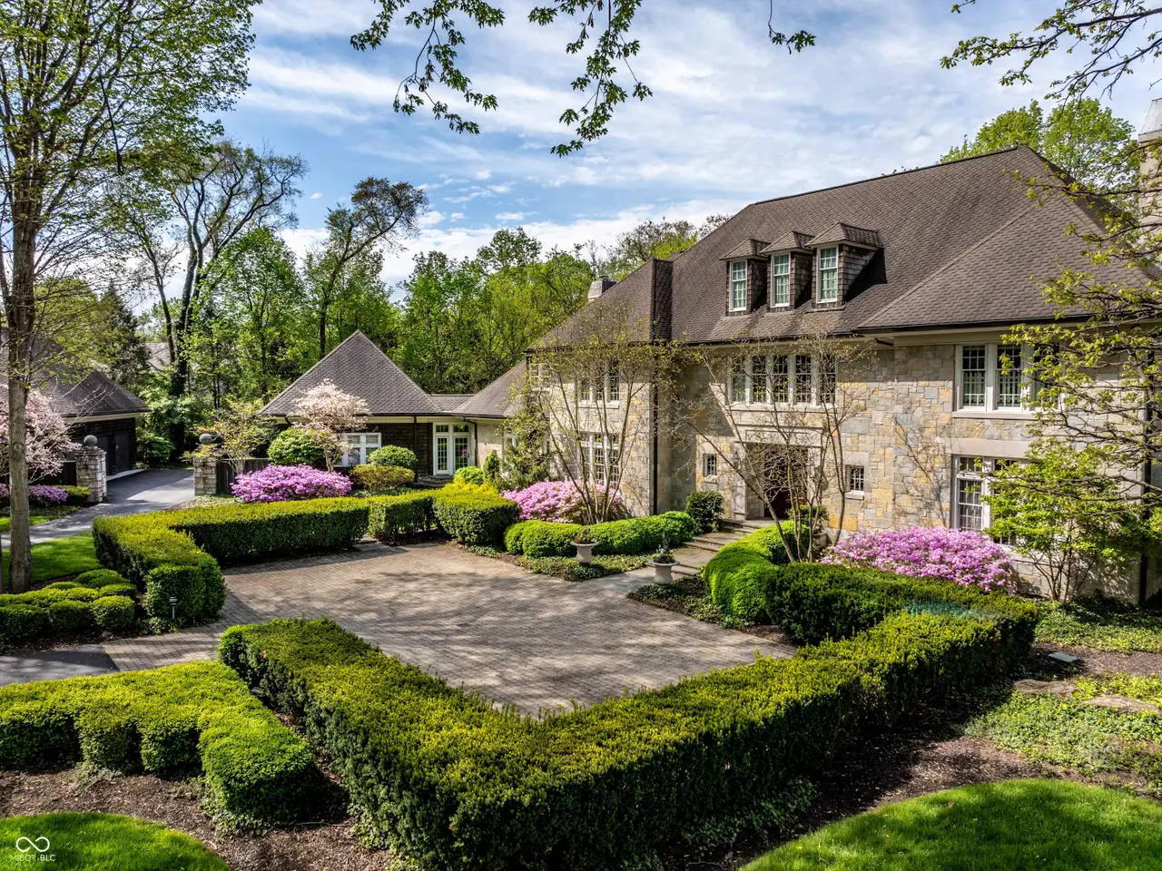 Exquisite custom-built estate on 1.84 acres of lushly landscaped grounds in the prestigious gated community of Springwood, overlooking the serene Nature Conservancy. This breathtaking home features both a 3-car attached garage and a 3-car detached garage. Inside, the grand great room welcomes you with a limestone fireplace and soaring windows that frame the park-like backyard. The formal dining room impresses with elaborate custom moldings and a hand-painted mural, while the main-level den offers a carved marble fireplace, custom built-ins, and TV niche. The main-floor primary suite is a private retreat, complete with a spa-inspired bath featuring a soaking tub, dual vanities, expansive walk-in shower, and an exceptional two-sided walk-in closet. The chef's kitchen, completely remodeled just two years ago, is a culinary masterpiece, boasting a butler's pantry, quartzite countertops, coffee bar, Wolf appliances, 6-burner gas range, built-in fridge/freezer, dual dishwashers, and additional refrigerator drawers. It flows seamlessly into the family room, featuring a limestone fireplace, custom seating, exposed truss ceiling, and stunning views of the backyard. The home also offers two washers and dryers, adding convenience to everyday living. Upstairs, discover four ensuite bedrooms, an office, and a playroom. The finished lower level offers a rec/theatre room, wine cellar, exercise room, and abundant storage. Additional highlights include an elevator and unmatched craftsmanship throughout. This one-of-a-kind estate is the epitome of sophisticated Carmel living, combining luxury, functionality, and timeless elegance.
