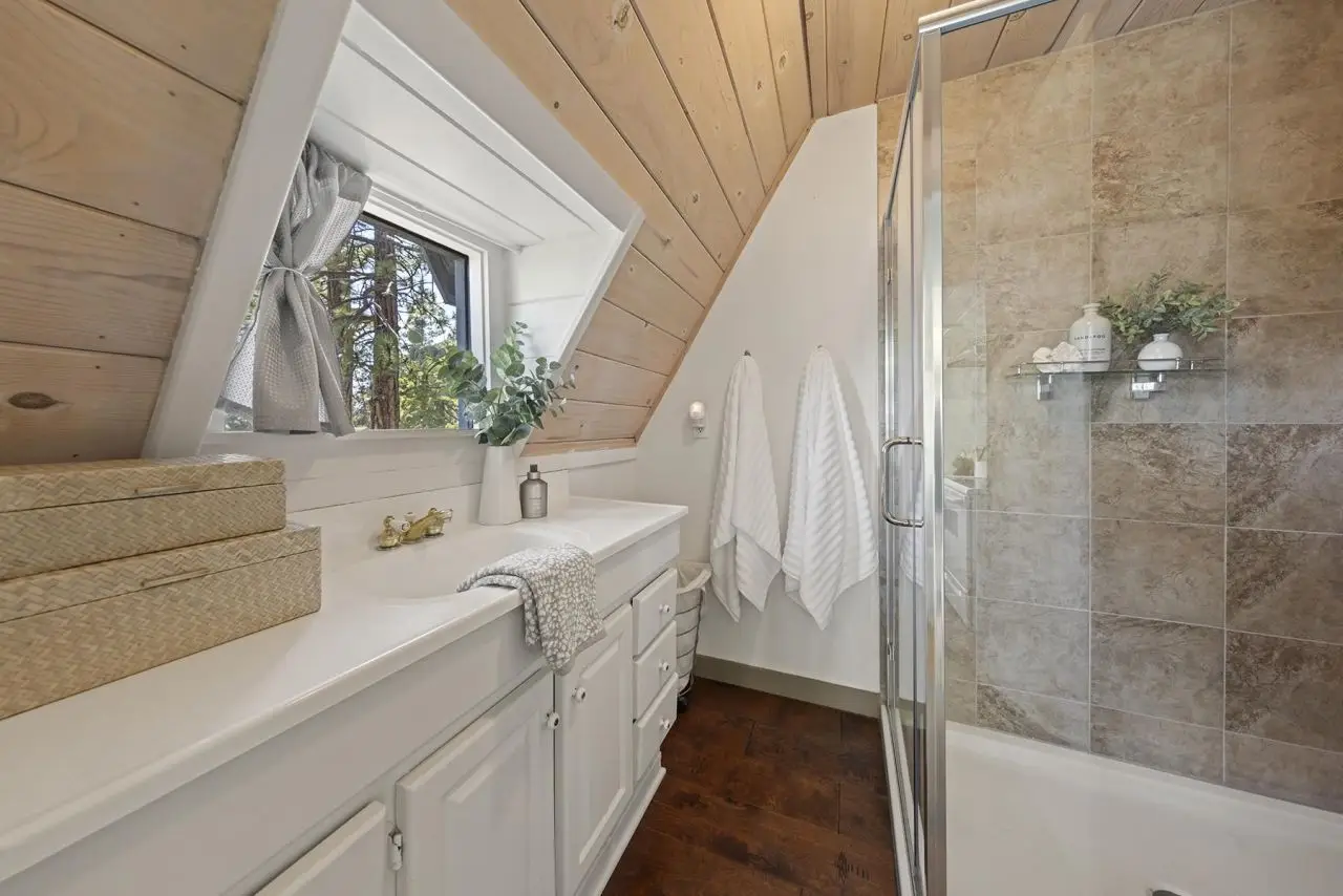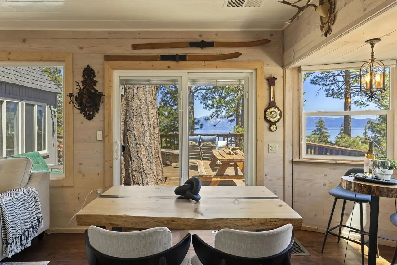 Charming 'Old Tahoe' Style Cabin with Unmatched Lake Views. Perched above the lake in the desirable Cedar Flat neighborhood, this 2-bed, 2-bath cabin is the ultimate Tahoe getaway. With stunning lake views from every room, you'll never lose sight of what brought you here. This 1,037 sq ft home is full of character, featuring a beautiful stone chimney, cozy wood-paneled interiors, and a large deck perfect for soaking in the views. Whether you're curled up by the stone fireplace or sipping your morning coffee outdoors, this cabin delivers the quintessential Tahoe experience. Upstairs, there's a bonus nook - a cozy space perfect for extra sleeping quarters, reading, or a play area. Just a quarter mile away, enjoy access to a well-maintained trail system that connects you to the Tahoe Rim Trail, Dollar Creek multi-use path, Tahoe City, Truckee, and beyond - perfect for hiking, biking, or cross-country skiing. Located in a peaceful, wooded setting with access to the Cedar Flat HOA gated private beach, pier, and buoy field, this is the perfect home base for your mountain lifestyle. Ready to make Tahoe your retreat? This is the one.