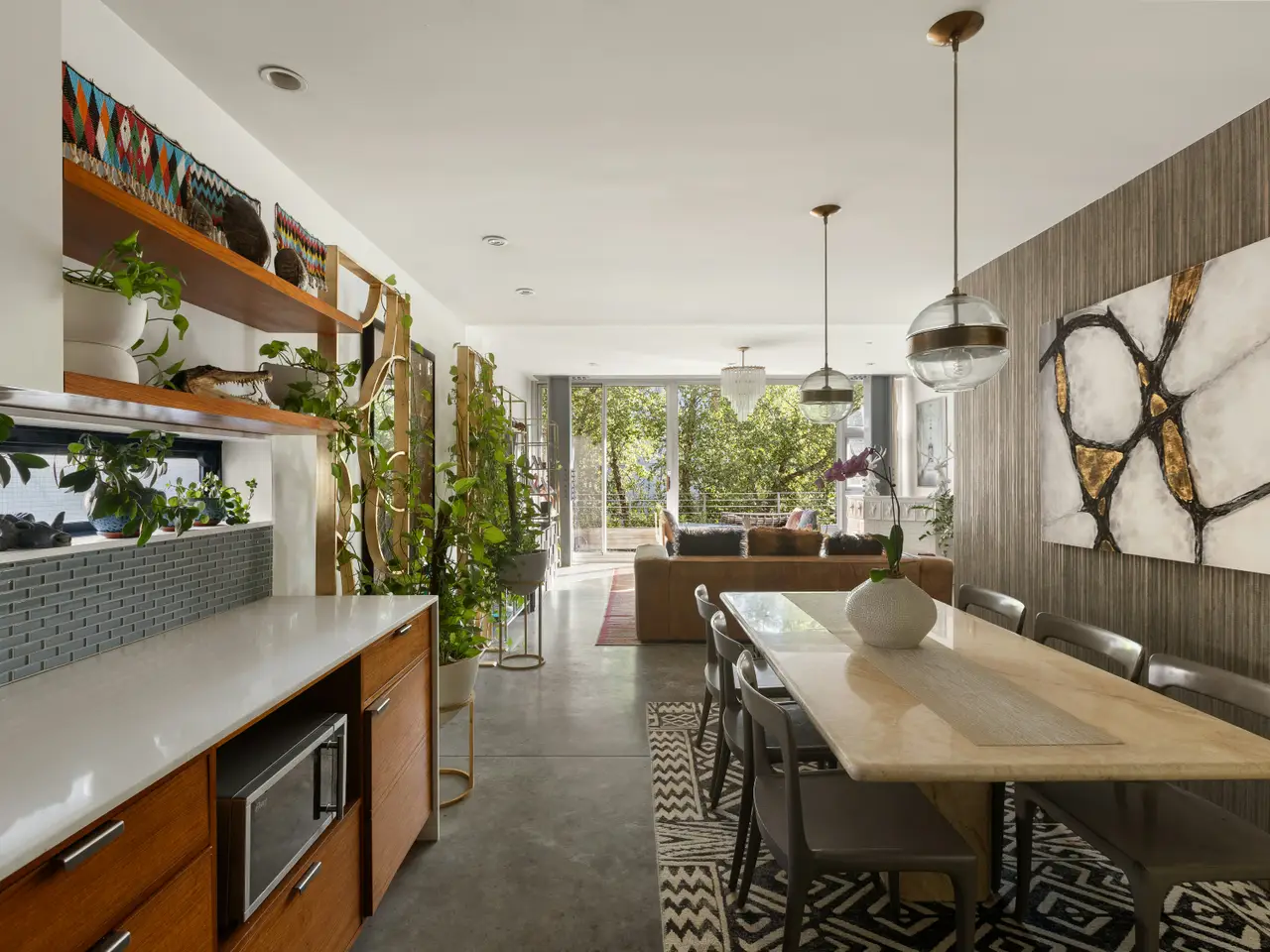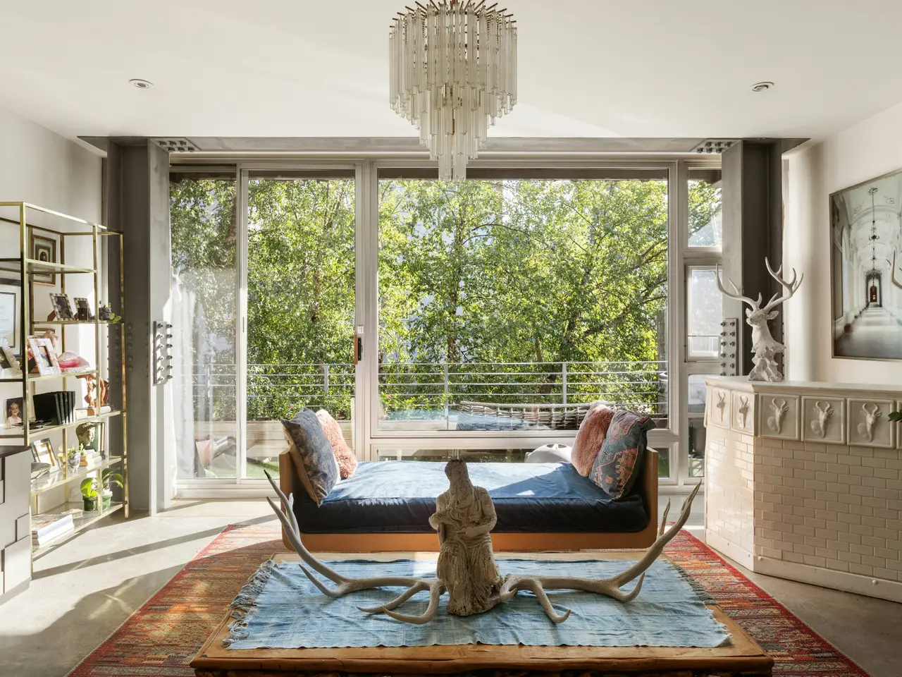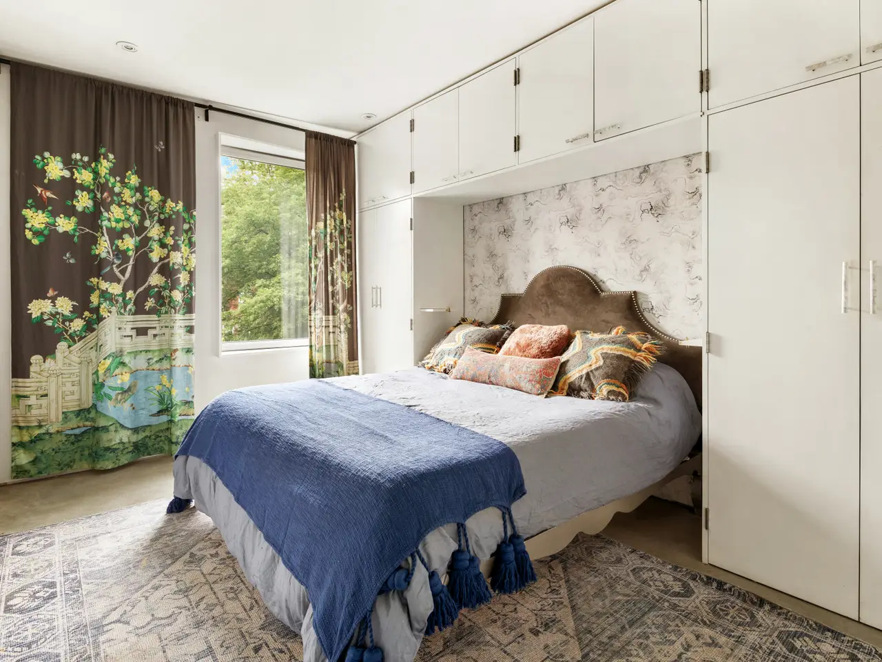 Welcome to 114 4th Place, Unit 2 - a serene and sophisticated two-bedroom, one-bath home located on one of Carroll Gardens' most picturesque, tree-lined blocks. This floor-through residence sits in an intimate four-unit boutique condominium and seamlessly blends modern design with warm, natural finishes. Step into the expansive living room and immediately be captivated by the wall of soaring floor-to-ceiling windows that flood the space with natural light. A private balcony offers the perfect perch for morning coffee, evening wine, or simply enjoying the feeling of being in nature with the trees and gardens below. The open-concept living space flows beautifully into the dining area, ideal for dinner parties or casual meals alike. Beneath your feet, poured concrete radiant heat flooring adds a touch of industrial chic while keeping the home cozy year-round. Central air ensures effortless comfort no matter the season. At the heart of the home, the thoughtfully designed kitchen is a masterclass in form and function. Custom teak cabinetry provides ample storage, while Caesarstone countertops and a full suite of high-end stainless steel appliances-including a Wolfe gas range and integrated dishwasher-make for an elevated cooking experience. At the opposite end of the apartment are two generous bedrooms, each offering Northeastern exposures, oversized windows, and tranquil privacy-perfect for restful nights or light-filled mornings. Located in the vibrant heart of Carroll Gardens, 114 4th Place is surrounded by a wealth of local favorites. Just around the corner, savor the beloved pastries at Court Street Grocers or the authentic Italian charm of Frankies 457. Carroll Park is only a short stroll away, offering green space, a playground, and a community hub that's long been a neighborhood staple. Please note: the 421a 15-year tax abatement expires in 2027.