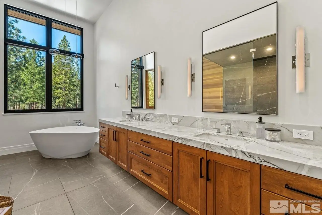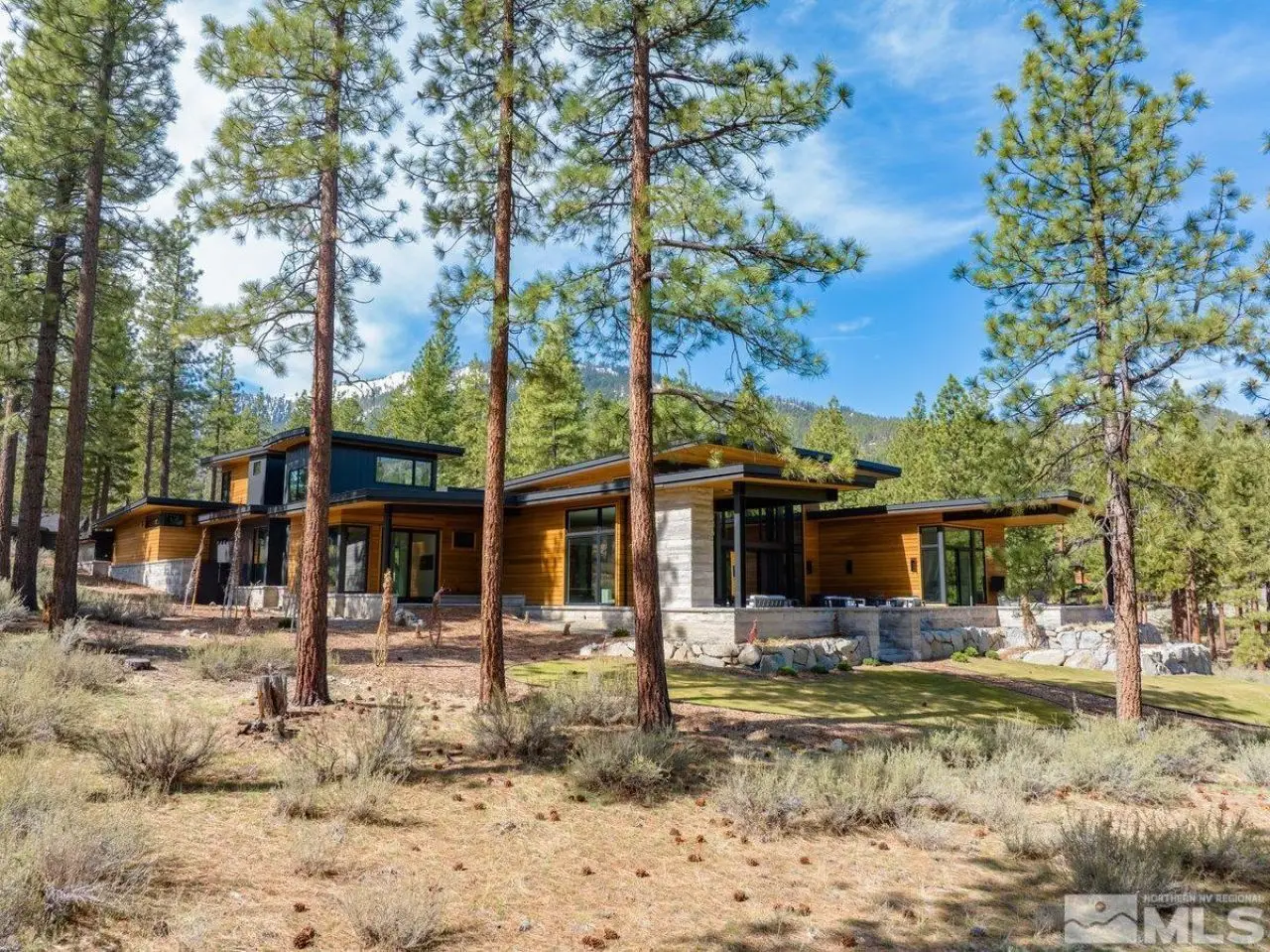 Modern luxury, nestled in mountain serenity. Imagine waking up to crisp mountain air, with the Sierra Mountain range stretching across the horizon and the Clear Creek Tahoe Golf Course just outside your windows. This isn't just a home; it's a lifestyle. Nestled in the private gated community of Clear Creek Tahoe, this Mountain Modern estate invites you to embrace nature's serenity and beauty. Set on over 1.5 acres of land, the home is surrounded by towering pines, offering seclusion and immersion in the outdoors. Inside, the spacious, open-plan design blends modern sophistication with mountain charm. Large, towering windows flood the rooms with light, creating an airy space perfect for relaxing or entertaining. Whether you're unwinding in the living room, preparing a meal in the gourmet kitchen, or hosting a dinner party, sweeping views of the lush greenery and Clear Creek Tahoe Golf Course's 7th fairway surround you. For outdoor enthusiasts, the private gym and sauna provide the perfect spot to recharge after hiking, skiing, or biking. The expansive backyard offers a fire pit, outdoor fireplace, and spa?ideal for enjoying the mountains under the stars or reflecting in peaceful solitude. The home's thoughtful design includes a cozy den and office, ideal for remote work or quiet moments. Every detail reflects a perfect balance of luxury and nature, offering the ideal backdrop for an active, elegant life. Here, each day invites you to explore, unwind, and live in harmony with the mountains. Clear Creek Tahoe is more than a community?it's a lifestyle. Anchored by Nevada's #1 ranked residential golf course, it offers an unparalleled blend of mountain and lake amenities. The private Lake & Ski House provides 180 feet of sandy beach, water sports, and shuttle service to Heavenly Ski Resort. Summit Camp is a hub for recreation with a pool, water slide, hot tub, tennis, pickleball, and bocce. At the heart of it all, the spacious Clubhouse features a year-round wellness and fitness center, ensuring adventure and relaxation in every season.
