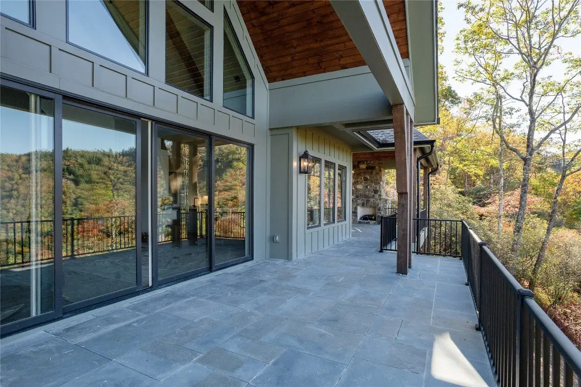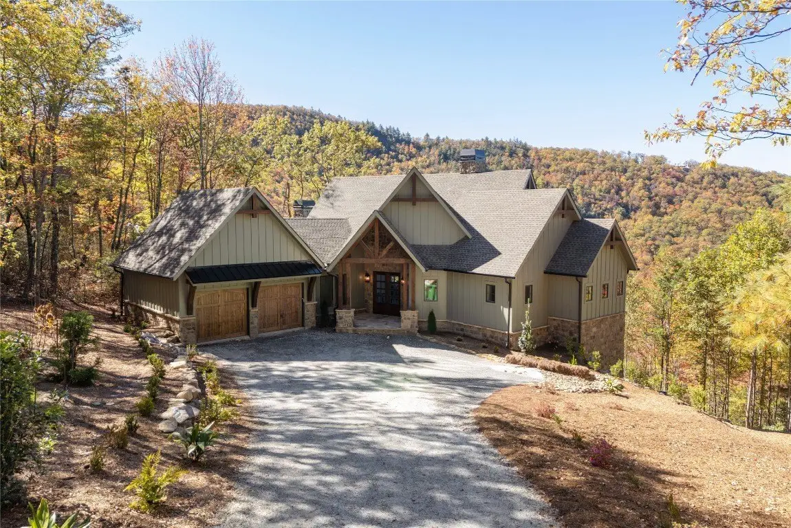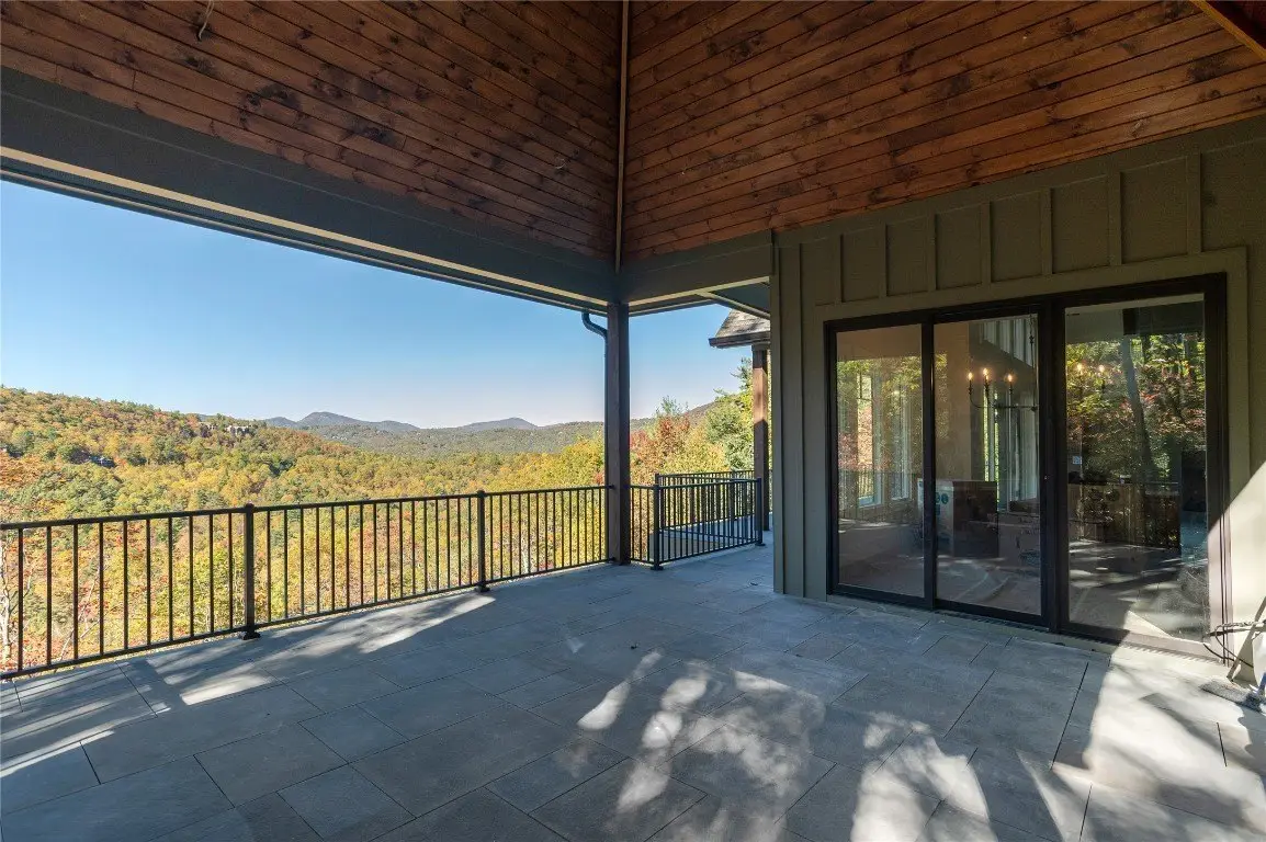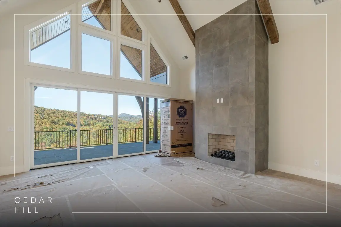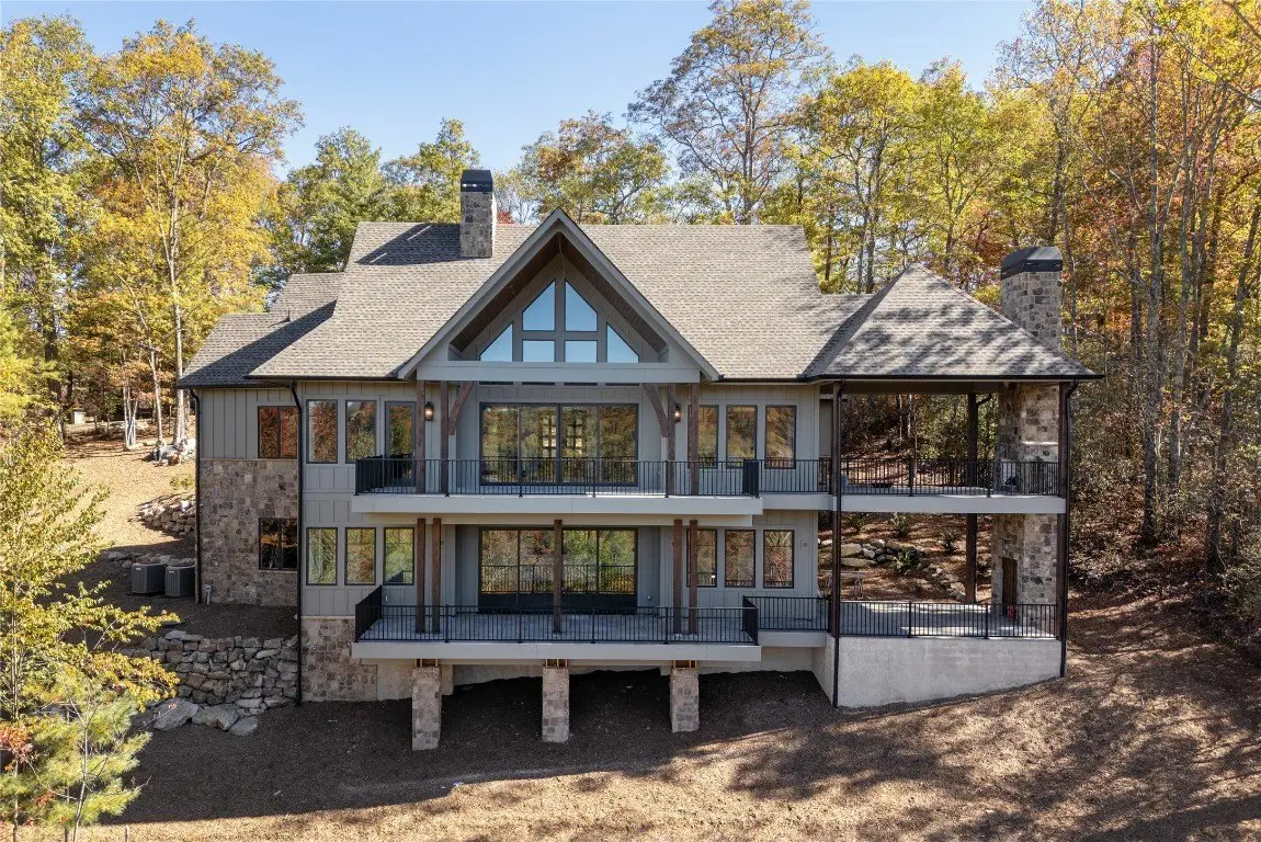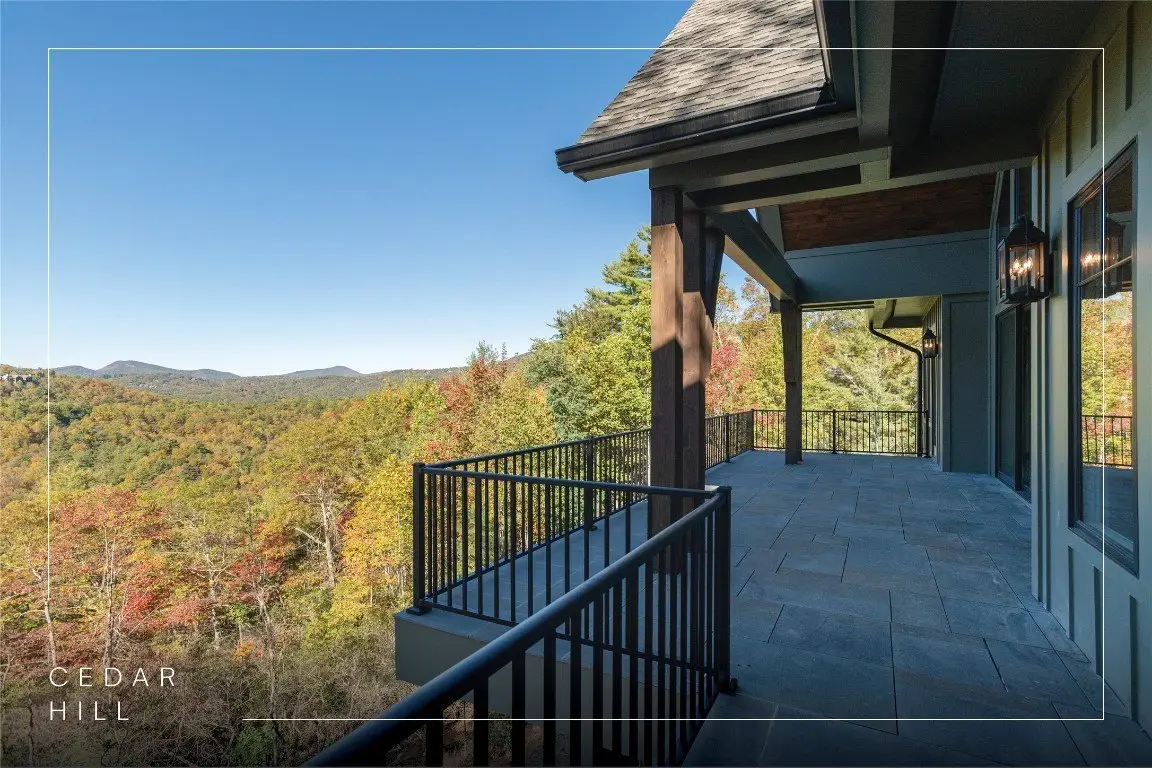 This newly constructed, custom designed residence is nearing completion in Cedar Hill, one of the Highlands Cashiers Plateau’s most desirable gated communities. Perfectly situated just minutes from both Cashiers and Sapphire, this thoughtfully crafted home offers a fresh architectural approach and a seamless floor plan designed for luxurious yet comfortable mountain living. As you arrive, curated landscaping, clean architectural lines, and a welcoming presence set the tone. Expansive windows and glass doors fill the interior with natural light and frame sweeping views across the valley, with Big Sheepcliff mountain rising as a dramatic backdrop. The main level features an open living area with soaring vaulted ceilings and a striking stone fireplace, seamlessly connected to the chef’s kitchen and adjacent gathering spaces—ideal for both entertaining and everyday living. Two distinct outdoor living areas extend the main level. A screened covered porch with a wood burning fireplace allows for year round enjoyment, while a separate covered veranda deck offers a serene space to relax and take in the cool mountain breeze. The primary suite on the main level is spacious and elegantly appointed, offering privacy, comfort, and convenience. On the lower level, a generous family room with a wet bar opens to two additional covered decks—one featuring another wood burning fireplace—creating the perfect setting for guests to gather and unwind. This level also includes three guest bedrooms and a dedicated bunk room, providing ample accommodations for extended family and friends. A two car garage adds architectural character and everyday functionality. For those seeking a brand new mountain retreat in a well established and private community, this home offers timeless design, panoramic views, and the best of life on the Highlands Cashiers Plateau.