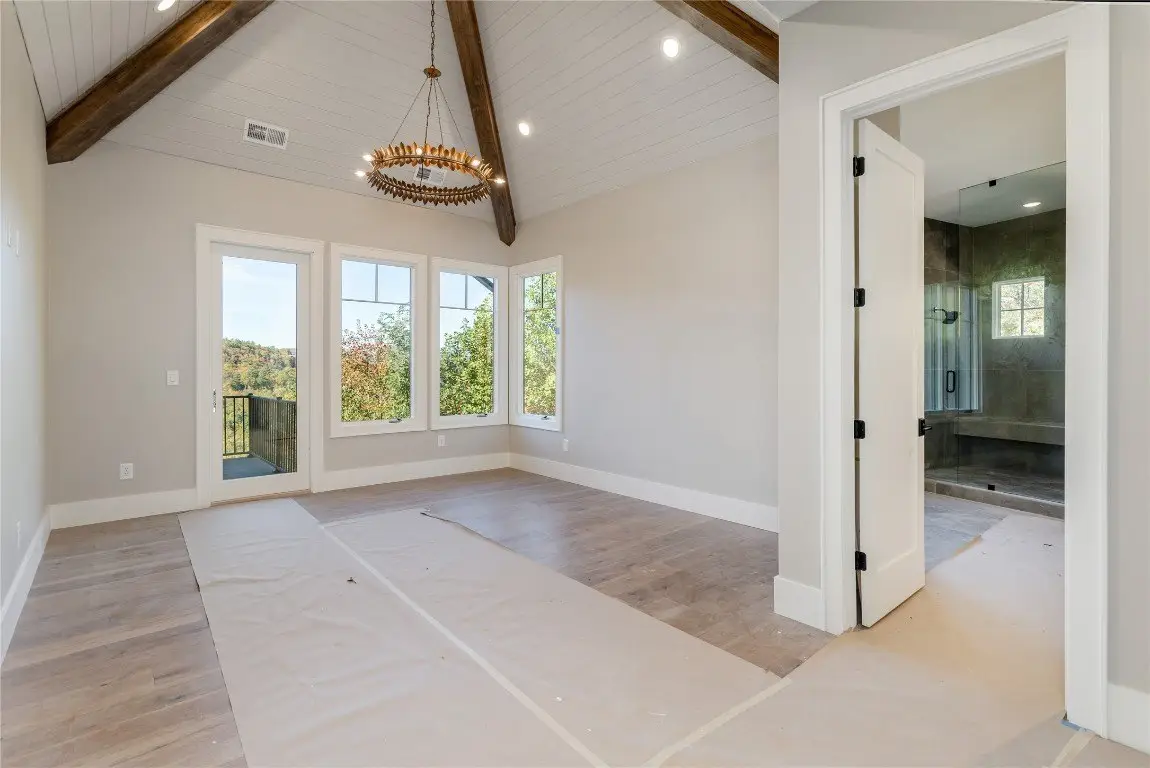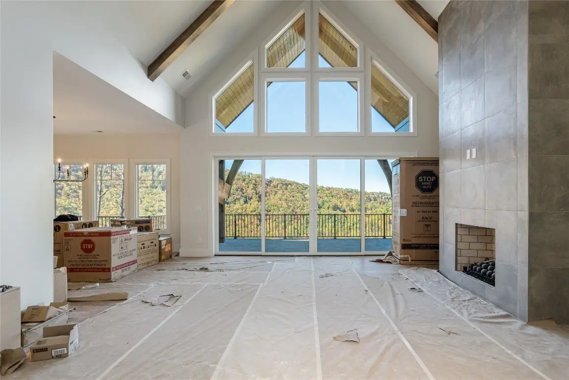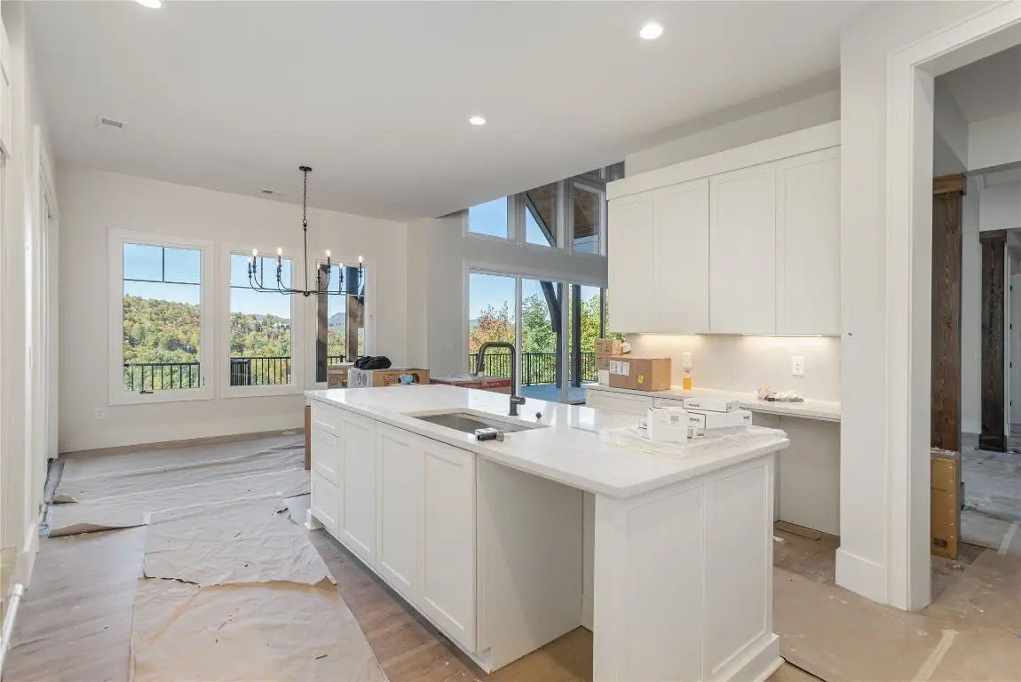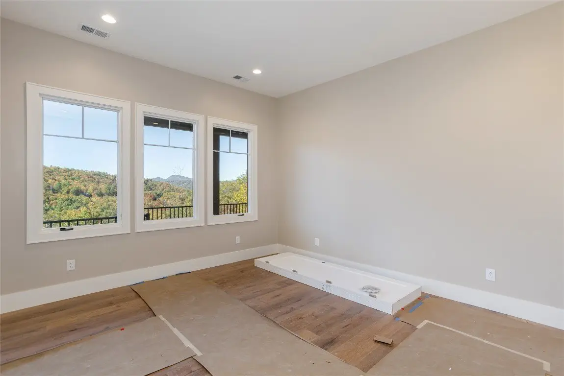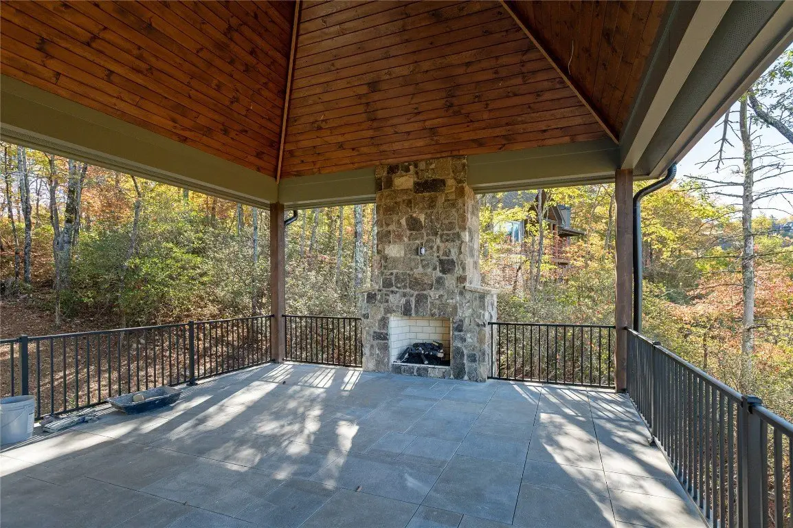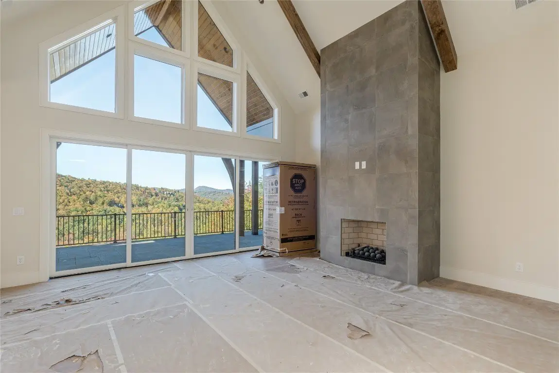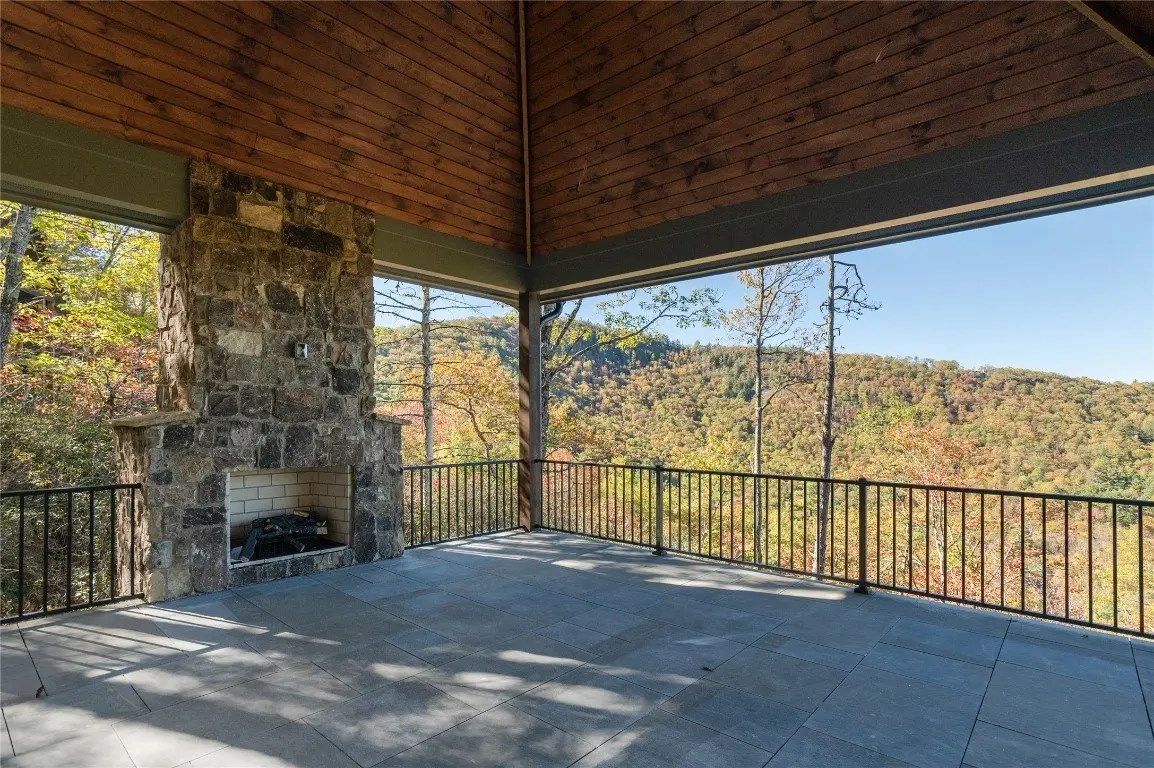 This newly constructed, custom designed residence is nearing completion in Cedar Hill, one of the Highlands Cashiers Plateau’s most desirable gated communities. Perfectly situated just minutes from both Cashiers and Sapphire, this thoughtfully crafted home offers a fresh architectural approach and a seamless floor plan designed for luxurious yet comfortable mountain living. As you arrive, curated landscaping, clean architectural lines, and a welcoming presence set the tone. Expansive windows and glass doors fill the interior with natural light and frame sweeping views across the valley, with Big Sheepcliff mountain rising as a dramatic backdrop. The main level features an open living area with soaring vaulted ceilings and a striking stone fireplace, seamlessly connected to the chef’s kitchen and adjacent gathering spaces—ideal for both entertaining and everyday living. Two distinct outdoor living areas extend the main level. A screened covered porch with a wood burning fireplace allows for year round enjoyment, while a separate covered veranda deck offers a serene space to relax and take in the cool mountain breeze. The primary suite on the main level is spacious and elegantly appointed, offering privacy, comfort, and convenience. On the lower level, a generous family room with a wet bar opens to two additional covered decks—one featuring another wood burning fireplace—creating the perfect setting for guests to gather and unwind. This level also includes three guest bedrooms and a dedicated bunk room, providing ample accommodations for extended family and friends. A two car garage adds architectural character and everyday functionality. For those seeking a brand new mountain retreat in a well established and private community, this home offers timeless design, panoramic views, and the best of life on the Highlands Cashiers Plateau.