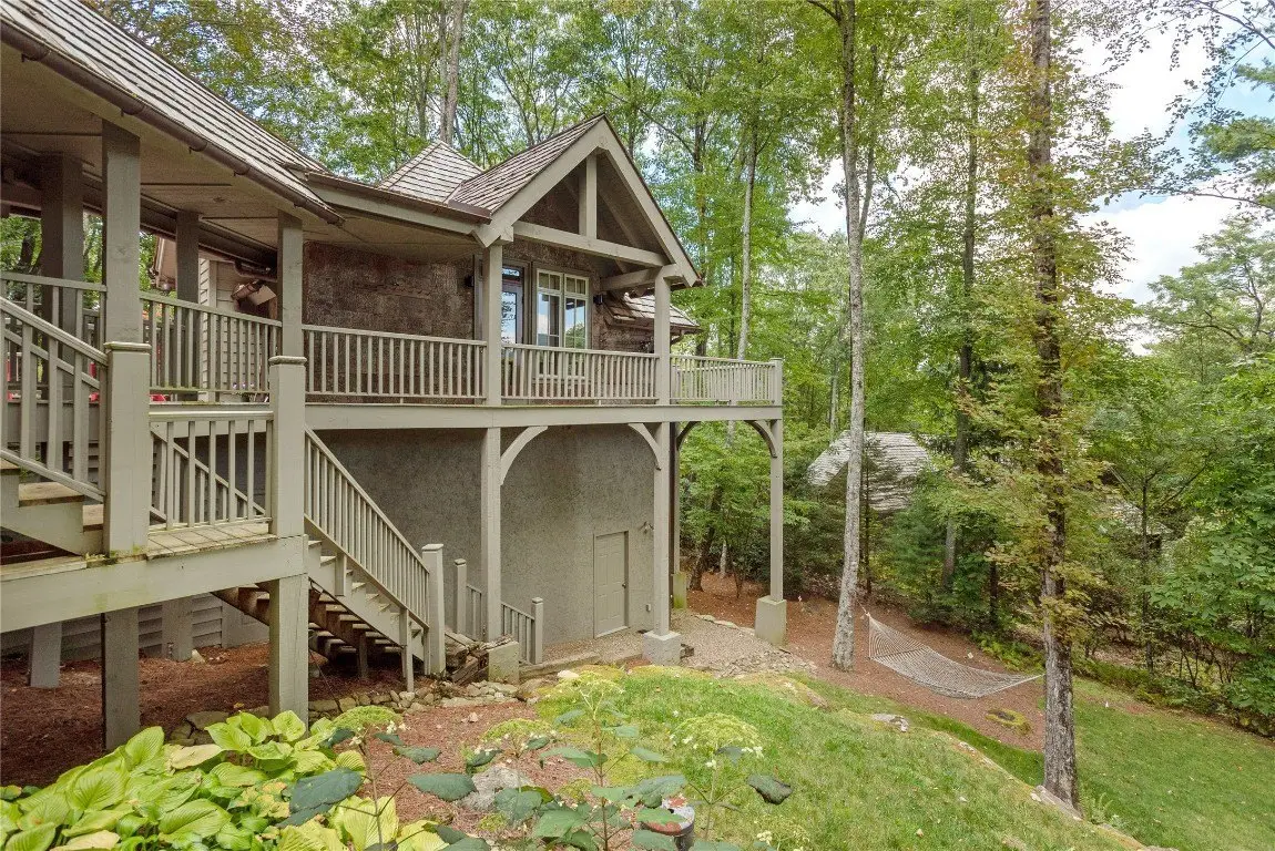 Enjoy peace and privacy on 1.87 acres of secluded forest in the gated Chattooga Club neighborhood. This property boasts a stunning stone entryway and immaculately manicured paths that lead to the most comfortable living on the Plateau. The great room offers a space to relax with a stacked stone fireplace and long-range views of Chimney Top and Rock Mountains, while the expansive screened-in deck is an ideal spot to enjoy the sights and sounds of nature with family and friends. The spacious kitchen features an island that’s perfect for entertaining with top-of-the-line appliances and modern cabinetry. On the main level, the luxurious primary suite features a fireplace, an attached sunroom, and a generous ensuite bathroom with a walk-in shower, a walk-in closet, and its own laundry space. Upstairs, there are two guest bedrooms with ensuite bathrooms, a cozy sitting room, and a bonus room. The lower level features a bedroom with an ensuite bathroom and an additional living space with a wet bar that connects to the wine cellar. There is also a detached guesthouse over the garage with a cozy sitting room, a kitchenette, and a private bedroom with bathroom, providing privacy for family members or guests and connecting to the main house via a short covered walkway. Along with its breathtaking views, the property comes with a vacant lot that backs up to the house, a waterfall, picturesque grounds, a screened-in standalone pavilion with a fireplace, a grill, and ample space to relax and enjoy the sounds of the running water. Located just two miles — a 5-8-minute drive — from the crossroads and all the shopping and dining amenities, this exquisite home offers everything that’s needed to enjoy a refined mountain lifestyle.