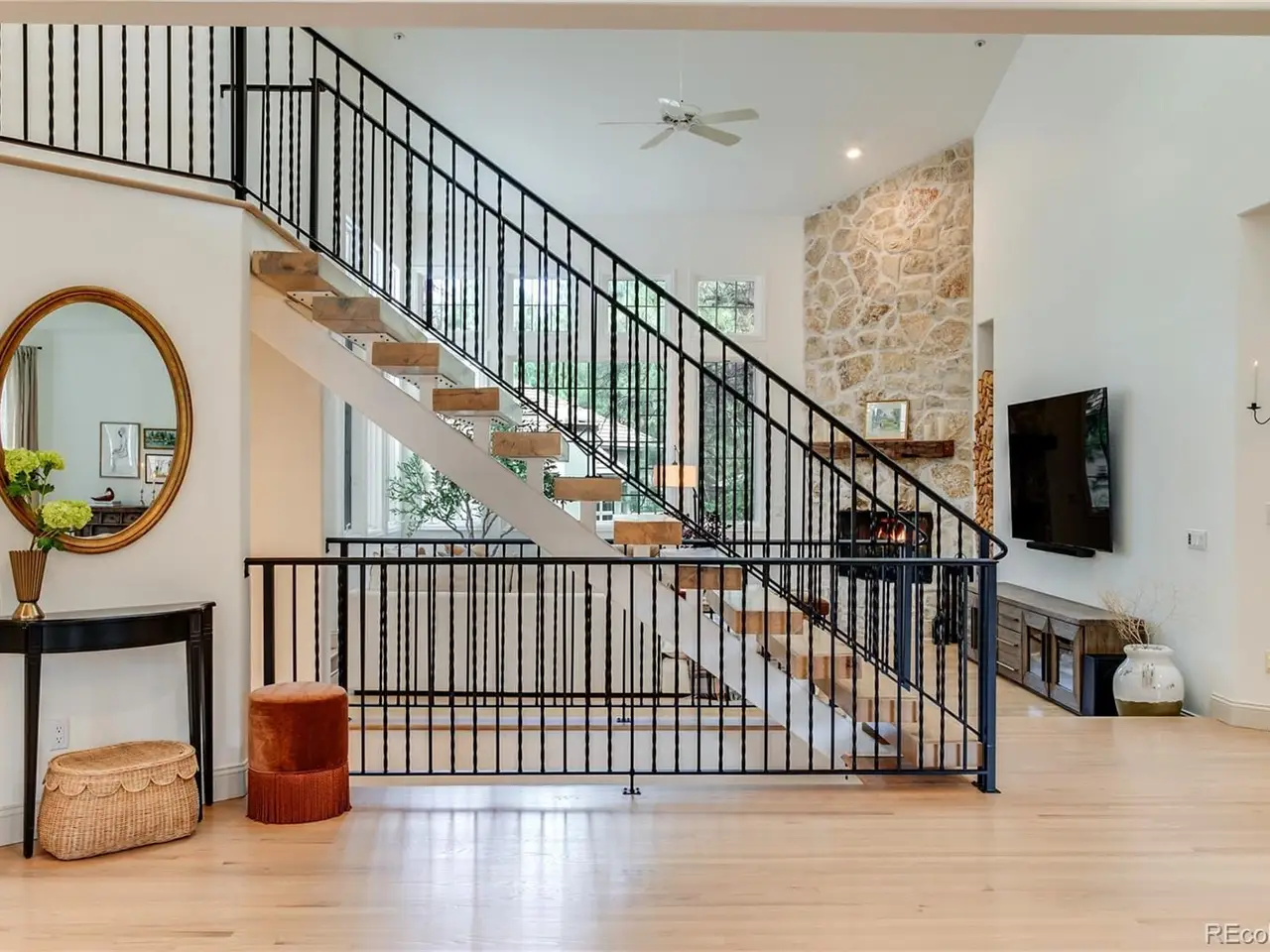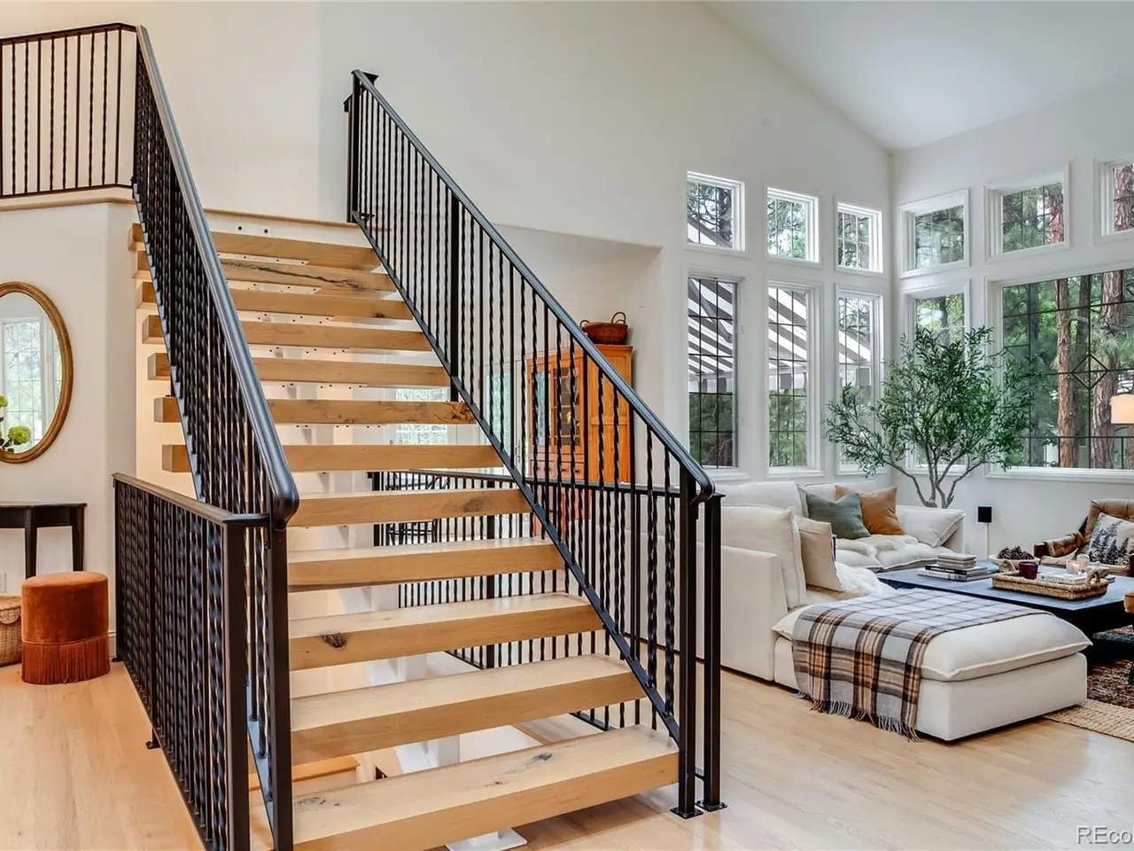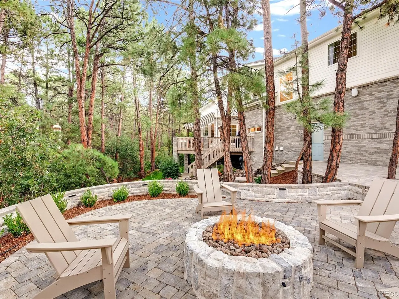 Welcome to 475 Silbrico Way in Castle Pines Village - a fully renovated, custom home built by Golden Design and reimagined top-to-bottom by Halcyon Haus Designs. Nestled on a private half-acre cul-de-sac lot surrounded by towering pines, this two-story residence combines modern sophistication with timeless craftsmanship. Step inside the soaring vaulted entry where natural white oak hardwoods, a rich designer paint palette, and a dramatic row of skylights create a bright, inviting space. The great room features a striking floor-to-ceiling stone fireplace and a showstopping floating staircase with powder-coated iron rails and reclaimed treads - an architectural statement in the heart of the home. The gourmet kitchen has been fully remodeled with top-of-the-line appliances, a cozy eat-in nook, and private access to the deck with a new retractable awning. The main floor also offers a private office, dual staircases, with new hardwoods extending across the main and upper levels. Designed for both comfort and convenience, the home includes a reverse osmosis system, integrated smart-home technology, and Sonos throughout. The lower level offers full in-law living with its own kitchen, radiant floors, and a theater featuring a 120-inch projection screen. Outdoor living is just as refined, with fresh exterior paint, water feature, new circular brick patio with fire pit and multiple private decks. Upstairs, four spacious bedrooms include the serene primary suite - a true retreat with marble-surround fireplace, mood lighting, and a spa-inspired ensuite bath. Living in Castle Pines Village means enjoying more than just a home- it’s a lifestyle. Residents have access to multiple pools, private walking trails, exercise and fitness facilities, playgrounds, and championship golf, along with social memberships and community events-all within the security of a 24-hour manned and gated community. Just minutes away, you’ll find local favorites like Tonys Market, dining, & boutique shopping.