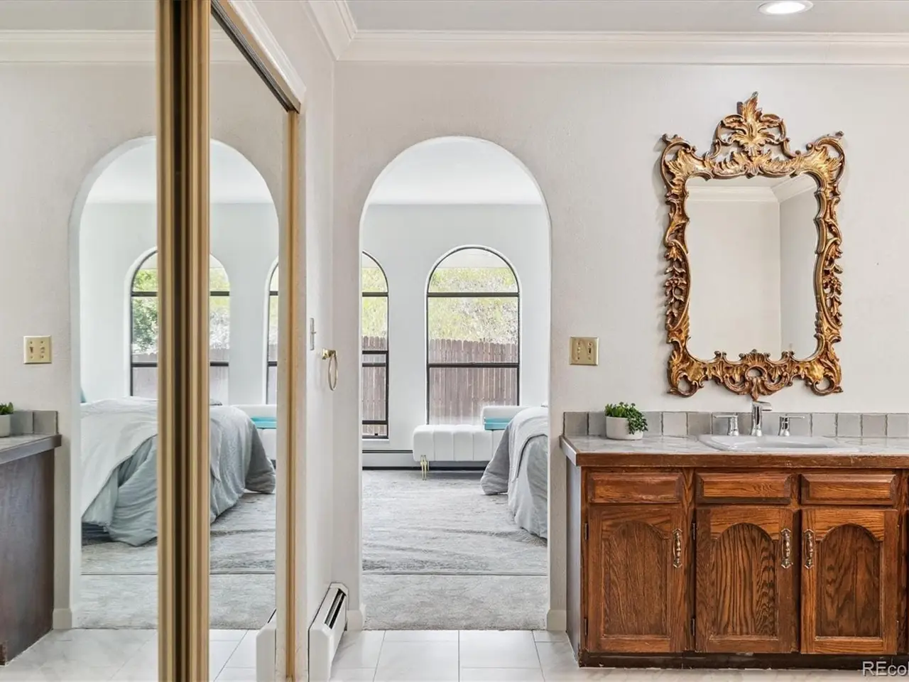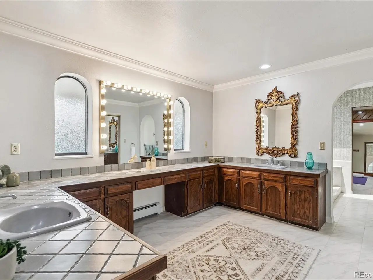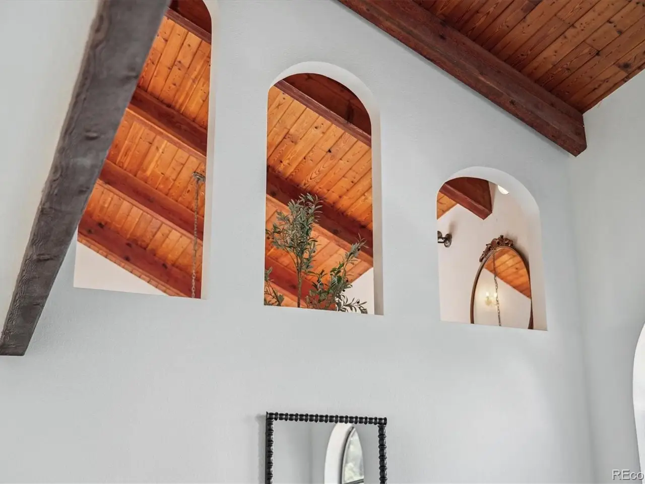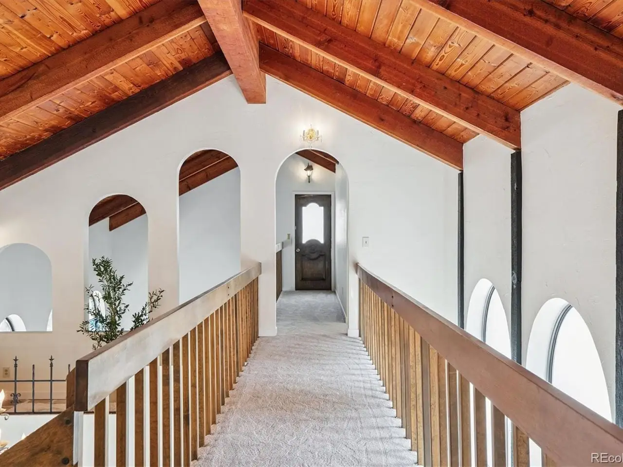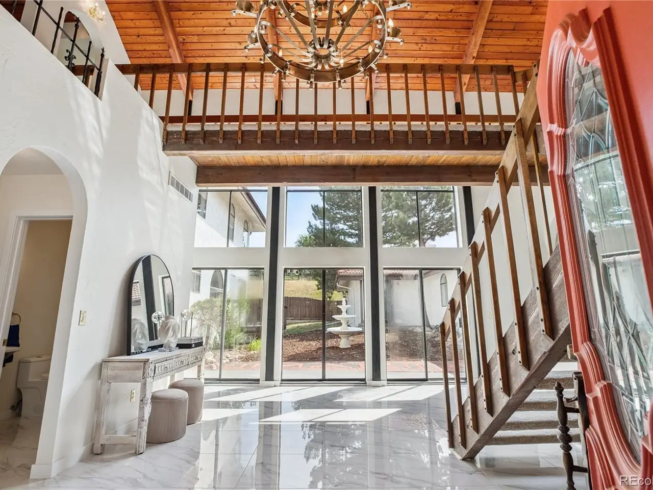 Mediterranean Masterpiece on 5 Acres of Forested Beauty in Castle Rock's Premier Oak Hills Neighborhood. Spanish Revival architecture; stucco walls, Spanish tiles, wood beams, wrought iron, arches & bell tower. Private lot, stable, sports court, sun deck, BBQ pavilion & center courtyard. Gated entry, dramatic circular drive, attached & detached garage or workshop. Grand 2 story foyer; arched windows frame the inner garden, tiled floor, floating staircase & old world chandelier. Thoughtful updates w/ over $250,000 in enhancements are blended w/ classic design features. New Spanish Modern inspired kitchen; arched hall entry, island w/ eating space for 6, luxury LG appliance package, farm sink, quartz counters, brushed gold hardware, walk-in pantry, eating space & deck. Spectacular formal dining room; soaring two-story ceiling & hand-painted Tiffany-style windows. New carpet or new floors throughout. Above; 2 Private upstairs bedrooms each w/ new luxurious en-suite baths w/ marble floors. Access to balcony overlooking the property, surrounding hills & open skies. Great Room; 2 story stacked stone fireplace, stone hearth, wood clad ceiling, arched windows, tiki bar & projection tv wall. Ground floor primary suite; fireplace, coffee bar, sliding doors w/ private patios. Spa like 6 piece en-suite bath; steam shower, soaking tub, heat lamps, large walk-in closet. Finished walkout basement w/ tiled bar, brick clad fireplace. Walkout to the central courtyard or backyard outdoor living room. Al fresco dining overlooking your private resort; covered pavilion w/ wood grill-fireplace for. Set in northern Castle Rock next to Lone Tree. Privacy; 50 mature Ponderosa Pines & native Oak. Step out of the city and into a world of timeless elegance through this enchanting Mediterranean estate. Located only 5 minuets from the Ridgegate Light Rail Station, easy access to I-25, nearby Park Meadows, DTC, Centennial Airport, Skyridge Hospital, Open Space, entertainment and restaurants.
