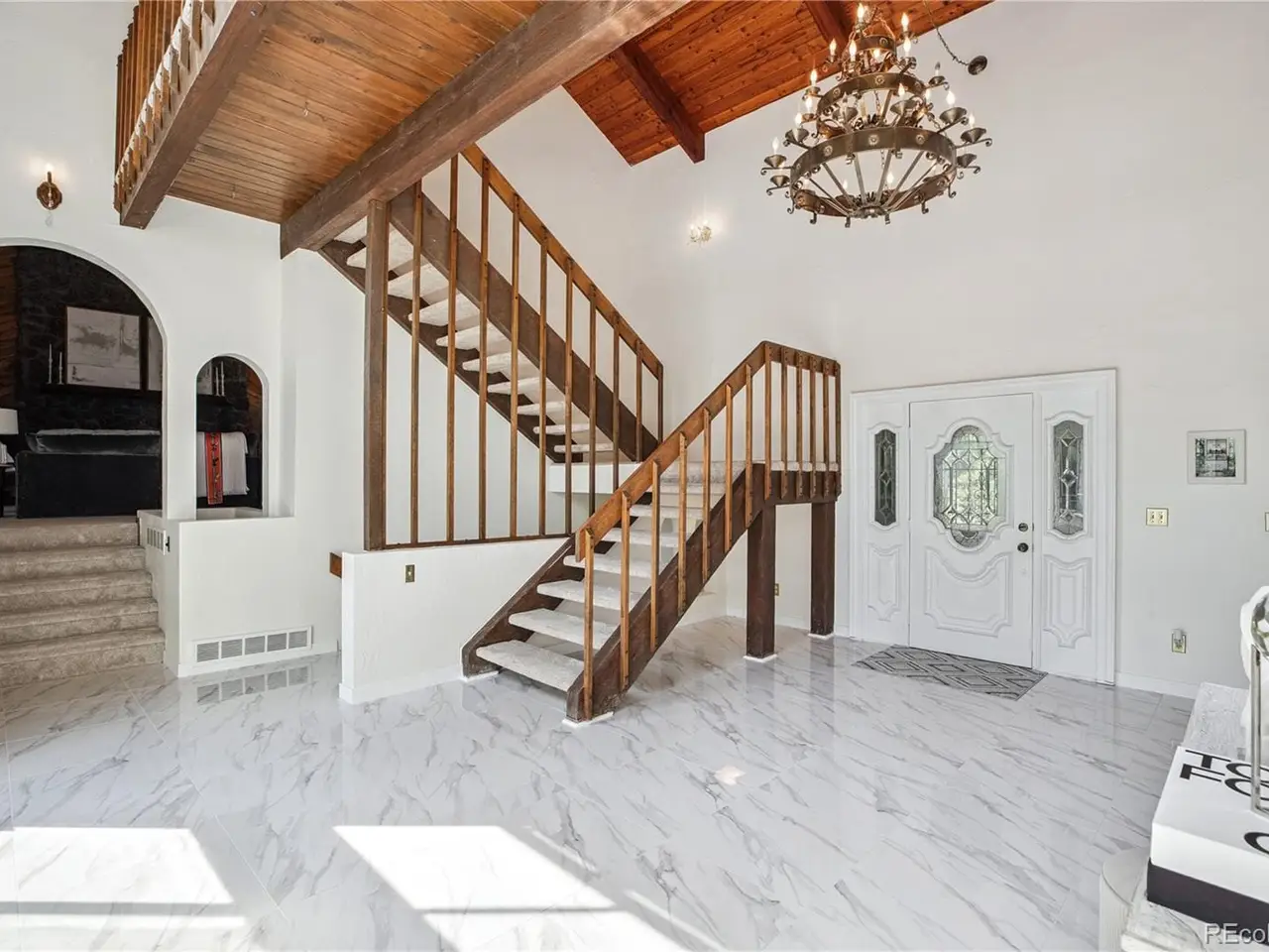 Grand 2 story foyer with floating staircase