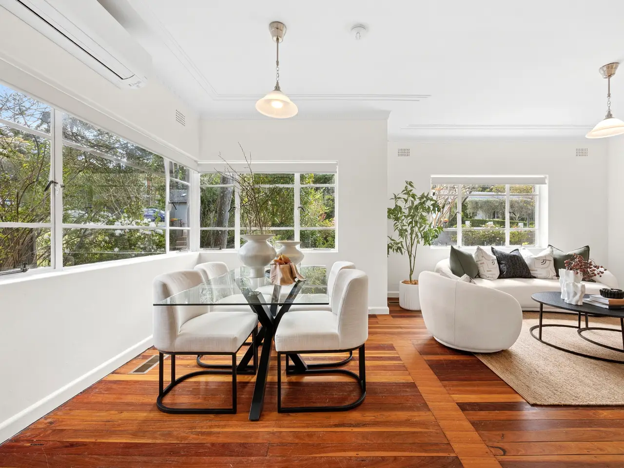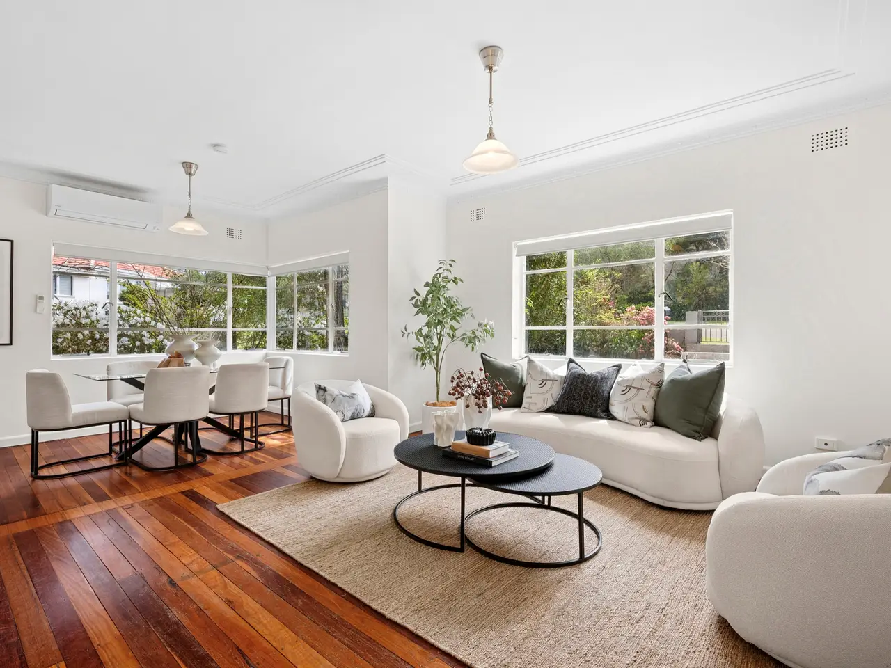 North-facing living and dining zone