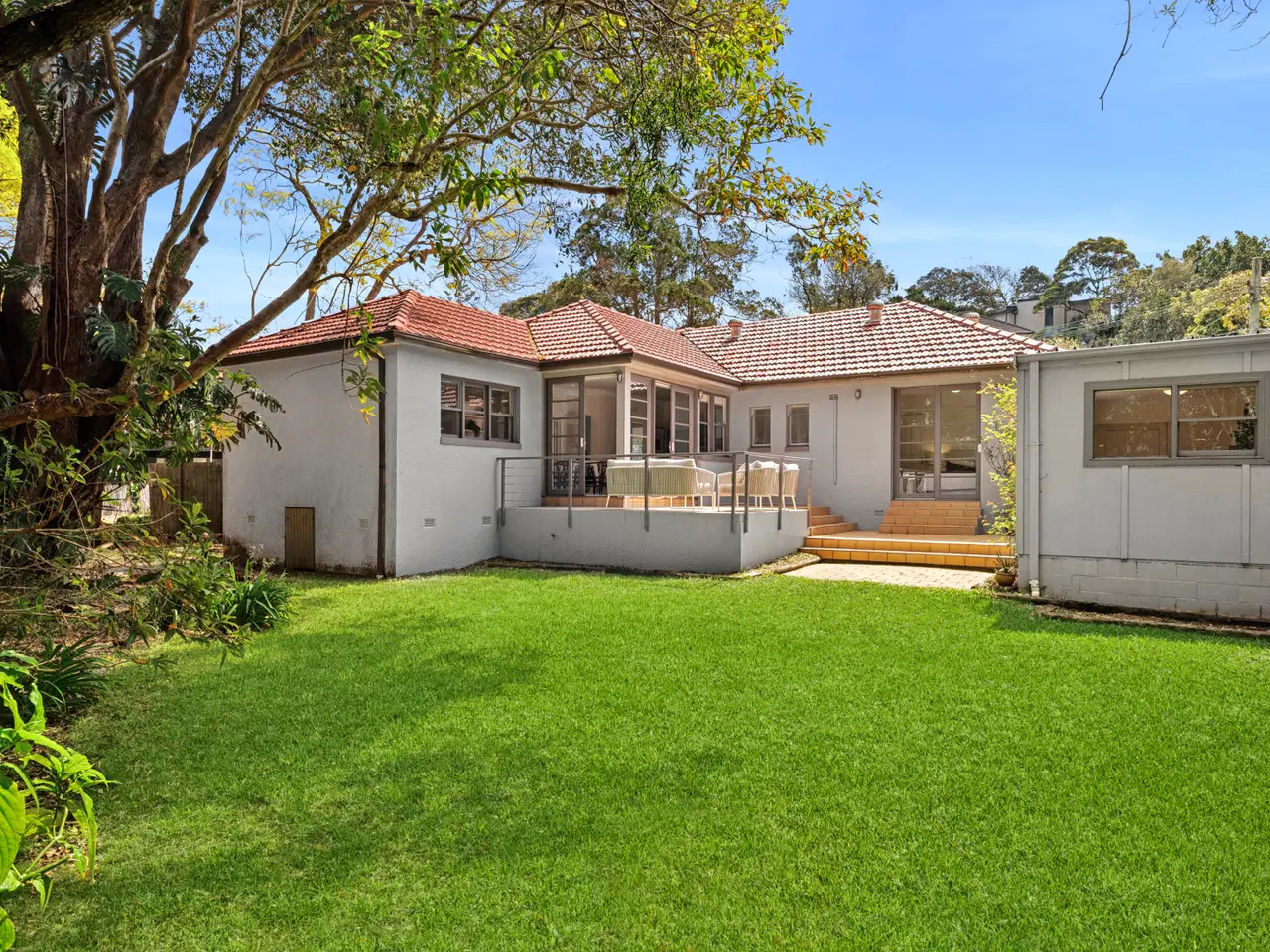 Positioned in one of Castlecrag's quiet, tree-lined pockets, this solid double brick home offers both immediate comfort and exciting future potential. Whether you're ready to move straight in or looking to create your dream home, this is a rare opportunity in a sought after family setting. Surrounded by nature and just moments from Harold Reid Reserve and the foreshore walking track, the home encourages a lifestyle of peace, privacy and outdoor connection. It is perfect for those who value space, serenity and convenience. The interiors extend across a single level, revealing two generous living zones, including one that opens to a lush, private backyard. Three spacious bedrooms offer flexibility for family life, while a separate studio and single garage provide added versatility and functionality. Neatly maintained and immediately liveable, the home also offers excellent potential for a stylish update, full renovation or an upper level extension (STCA), taking full advantage of its solid construction and generous block. Set within a welcoming, family friendly neighbourhood just moments from Castlecrag cafes, Willoughby village, and the soon to be built Queensbridge and direct bus links to the CBD, Roseville, St Ives and East Lindfield, this is a rare offering that delivers lifestyle, location and long term value. - Single-level double brick residence with timeless period character - Spacious north-facing living and dining zone with air-conditioning - Hardwood floors, high ceilings with cornices, leafy outlooks - Dedicated study with custom built-in desk and integrated storage - Kitchen with adjoining casual dining flows to alfresco terrace - Private backyard oasis with lush lawns and an open terrace - Three generous bedrooms with built-ins, main with shower ensuite - Original main bathroom appointed with bathtub and separate shower - Single lock-up garage adjoins versatile studio or breakout retreat - Peaceful setting close to Harold Reid and numerous bush tracks Disclaimer: All information contained herewith, including but not limited to the general property description, price and the address, is provided to Belle Property by third parties. We have obtained this information from sources we believe to be reliable; however, we cannot guarantee its accuracy. The information contained herewith should not be relied upon and you should make your own enquiries and seek advice in respect of this property or any property on this website.
